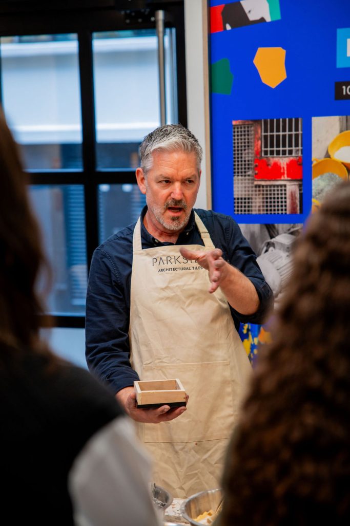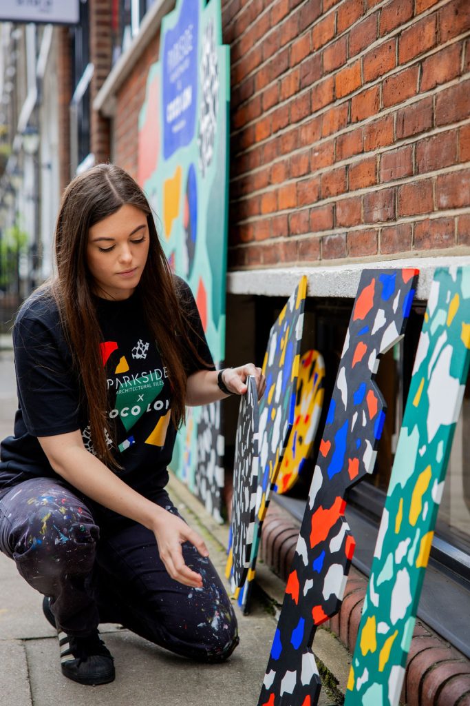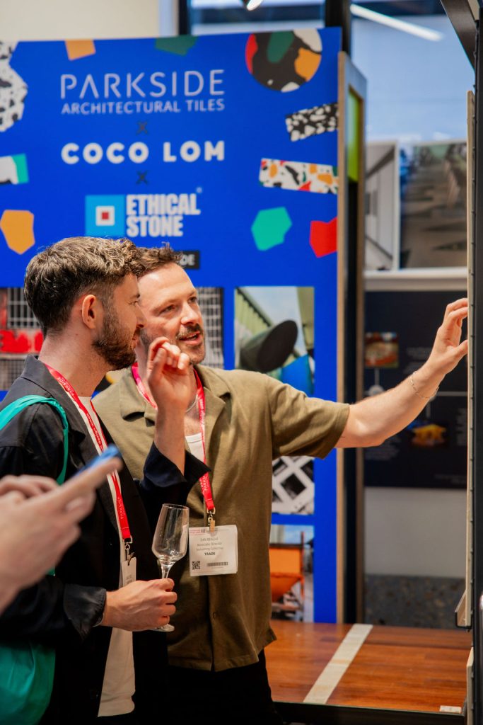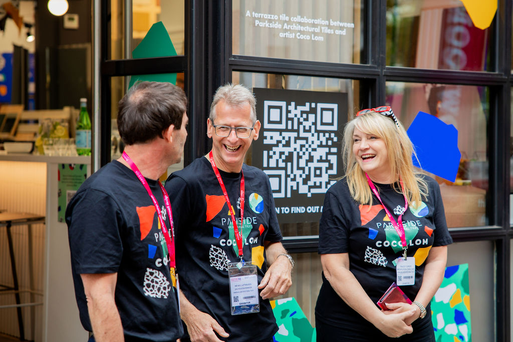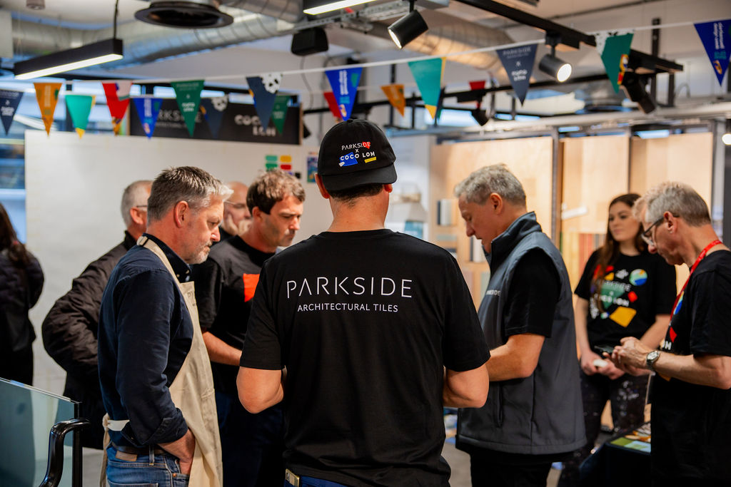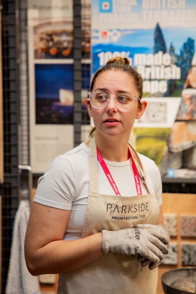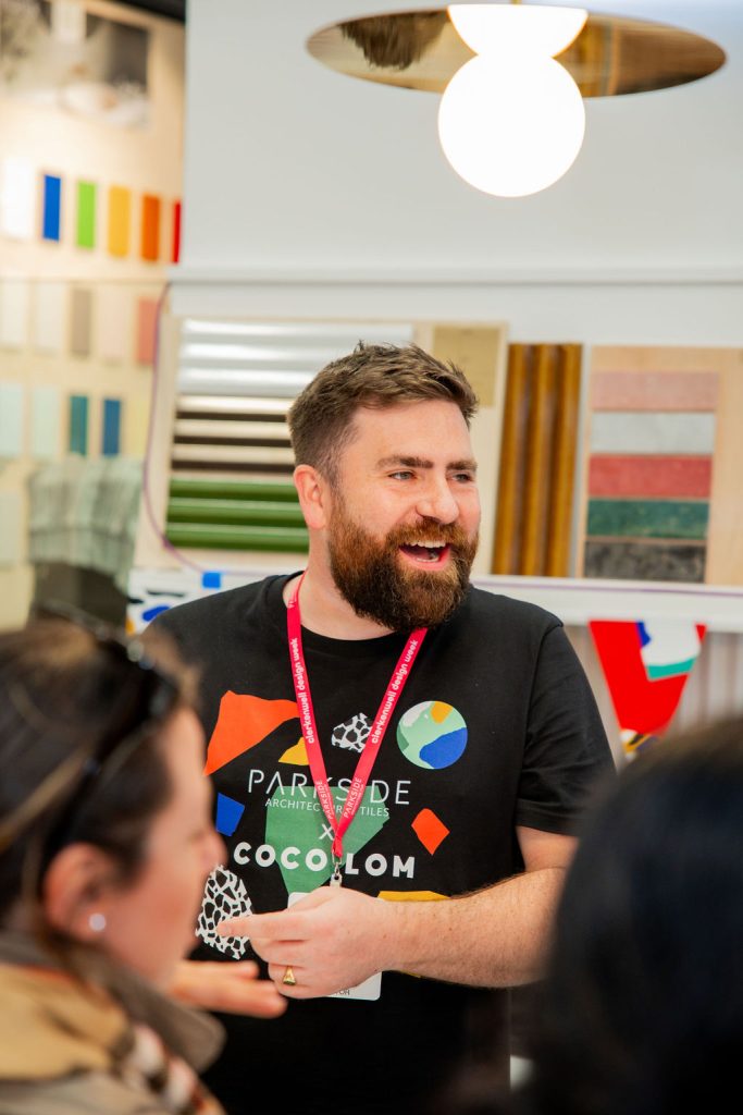 Coco Lom was at the studio throughout CDW for the launch of Parkside x Coco Lom. This collection of 100% British terrazzo tiles in the Hackney-based artist’s signature abstract patterns will bring a unique look to any commercial interior and is made in Manchester.