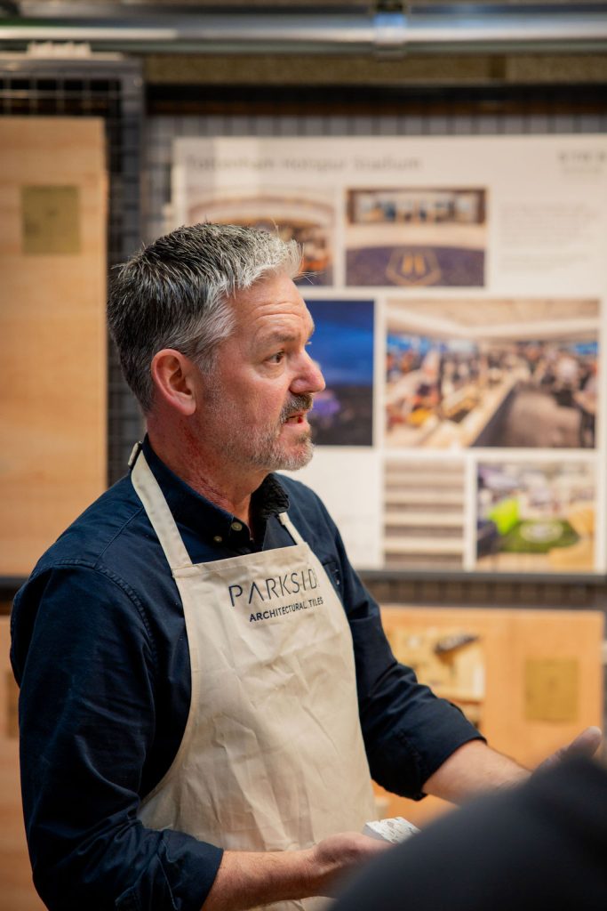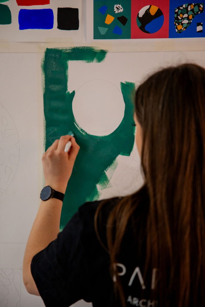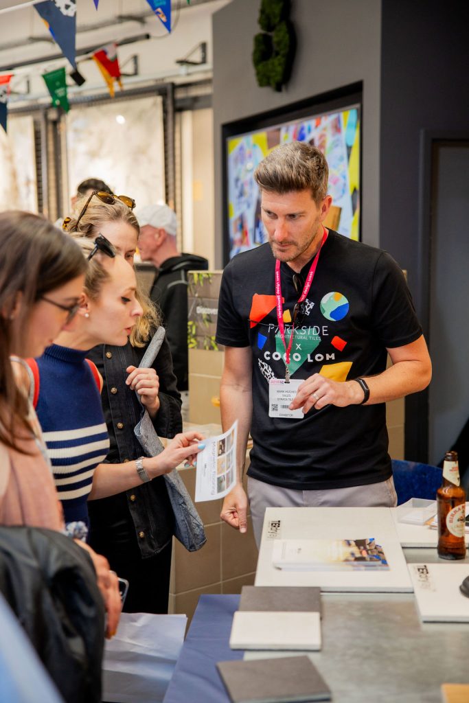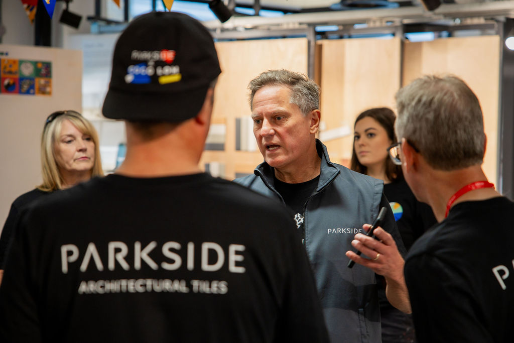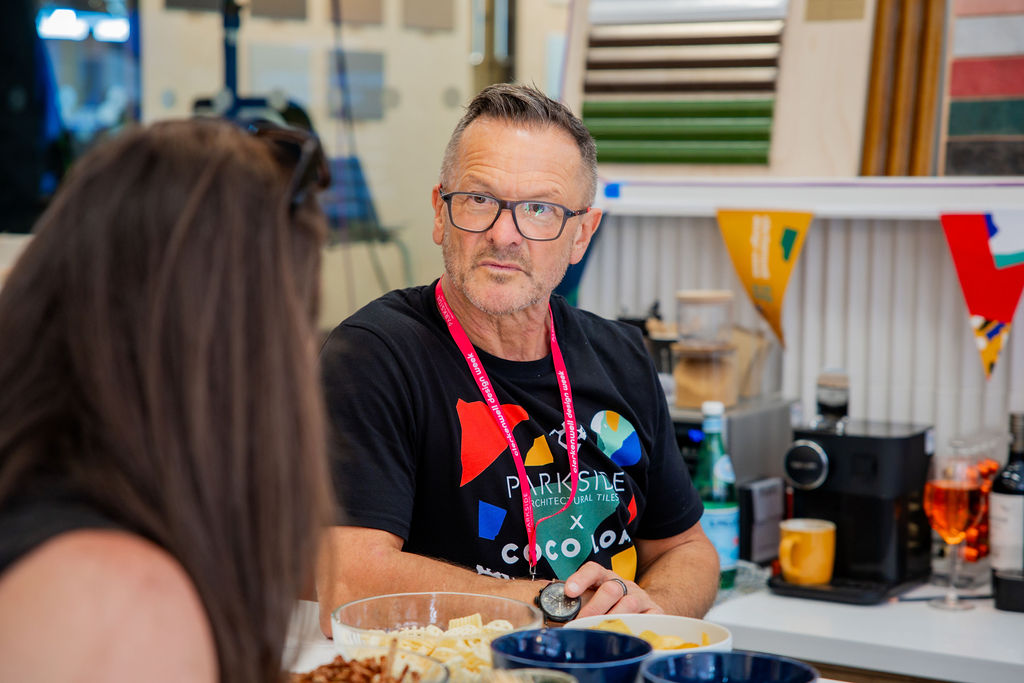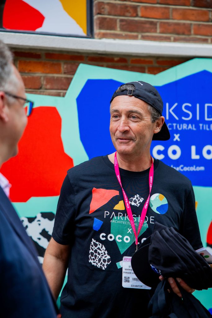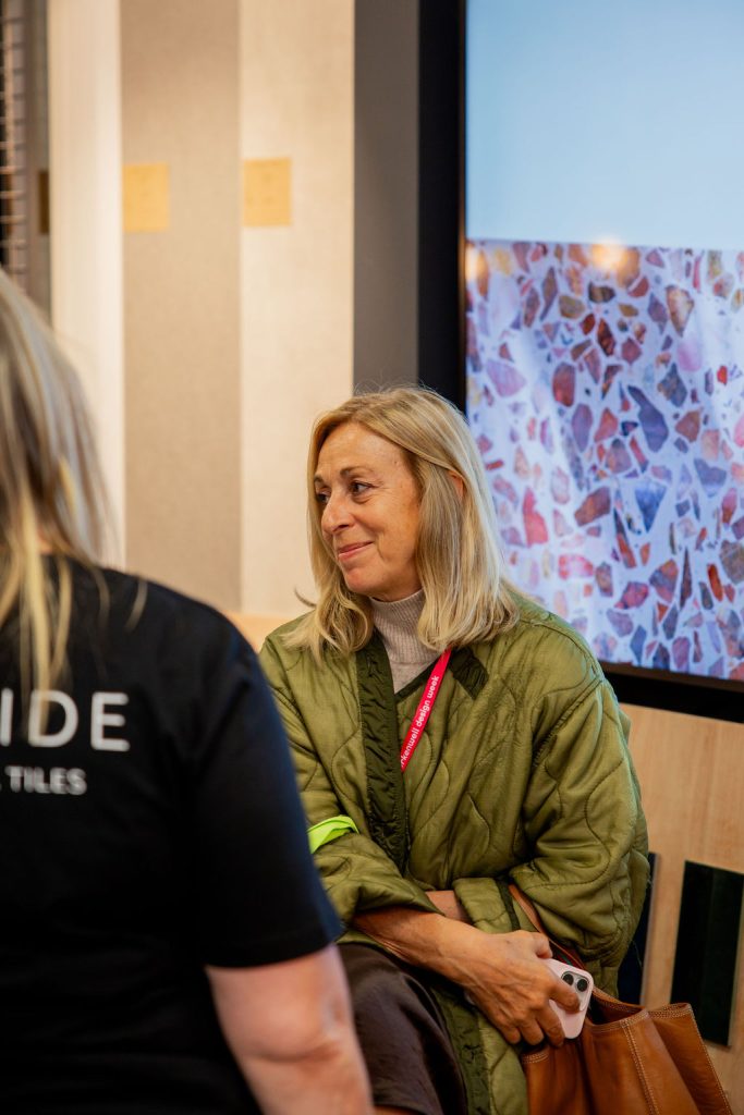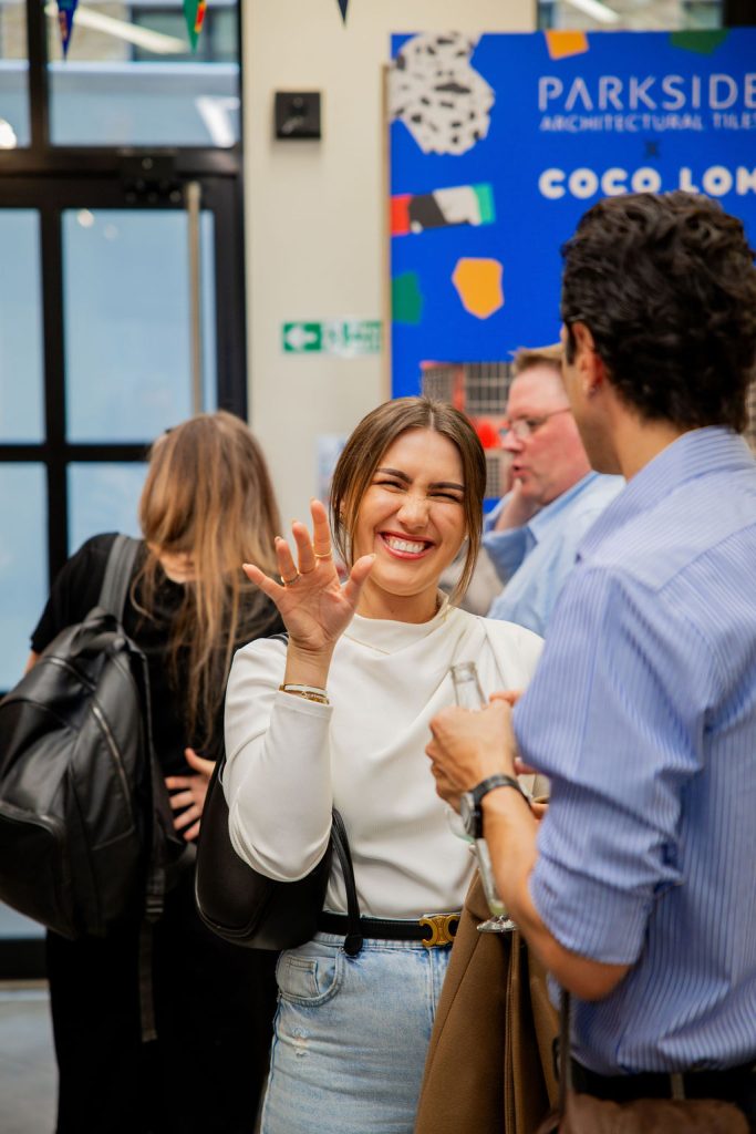Coco Lom was at the studio throughout CDW for the launch of Parkside x Coco Lom. This collection of 100% British terrazzo tiles in the Hackney-based artist’s signature abstract patterns will bring a unique look to any commercial interior and is made in Manchester.