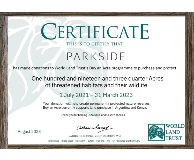 Parkside’s 40 for 40 program has enabled the World Land Trust to protect nearly 120 acres, (that’s 484,611 metres squared) of biodiverse habitat saving them from the risk of deforestation and crucially protecting wildlife whilst tackling climate change.