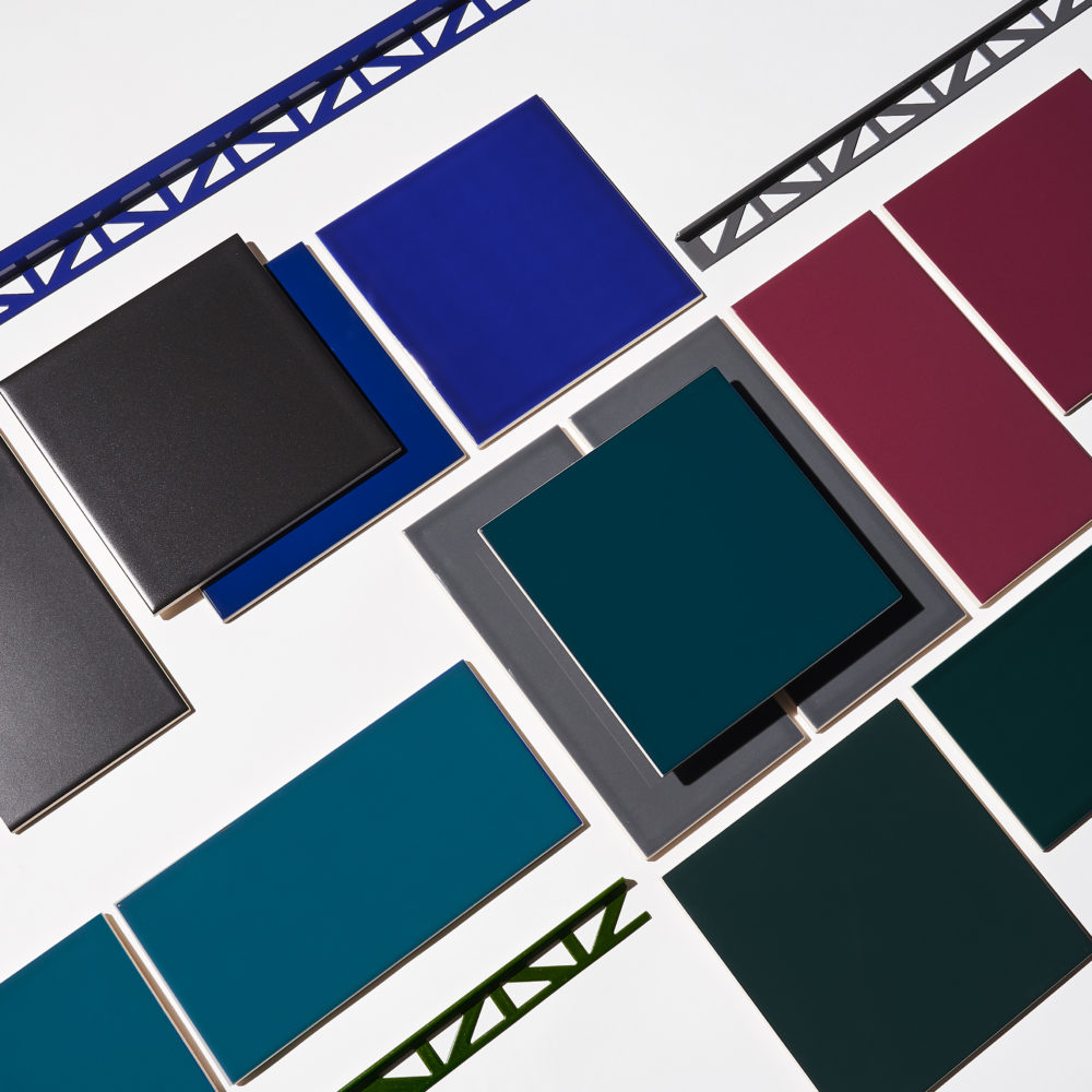 Available in 148 x 148mm and 98 x 198mm, every Matrix colour is accompanied by matching straight edge and box trims, as well as grout, allowing the creation of a beautifully coordinated end result in solid colour, or to experiment with striking designs combining contrasting tiles, grouts and trims. Sample boxes are available that include all 23 tile colours, grouts and a selection of trims.