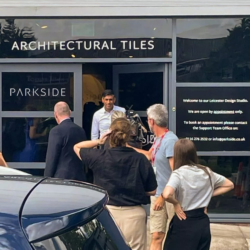 Surrounded by a backdrop of our latest tile ranges, Rishi Sunak was impressed by the innovative designs that Parkside offers.