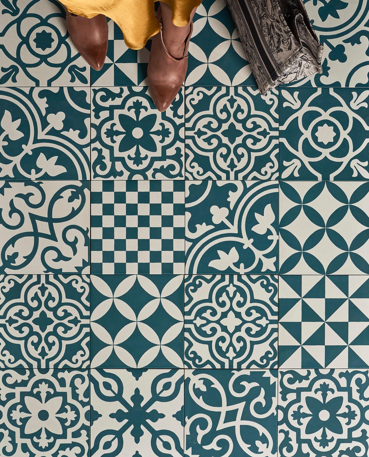 Past and present meet in a collection that recalls the typical “hand-made” look of traditional products, where colours and decorations make up an extremely contemporary graphic mood. Natural shades, alongside bright, innovative colours, generate a collection of 6 slightly mottled plain tiles, which contrast with the original clear, bright two-tone decors, all available in the single 200x200mm size.