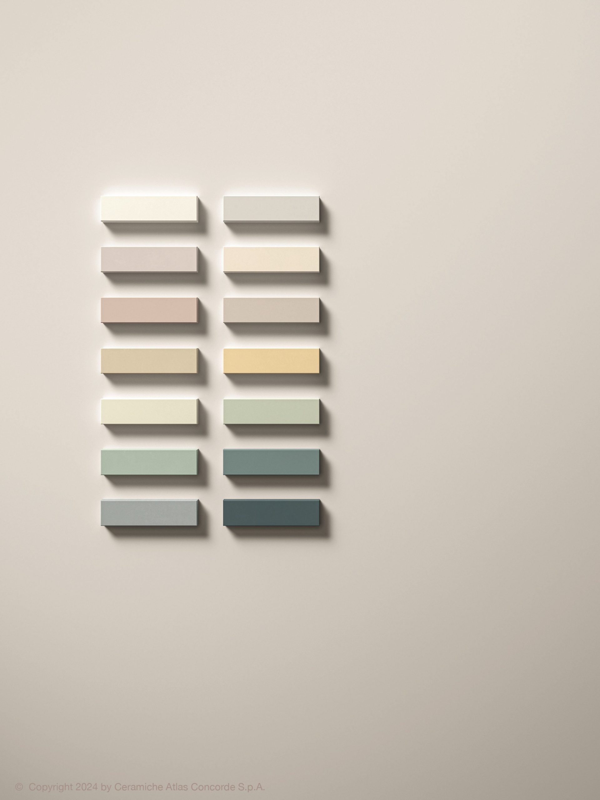A precious palette of 14 shades selected by architect Piero Lissoni. A wide decorative range and a calibrated, harmonious colour palette to mix and match.
