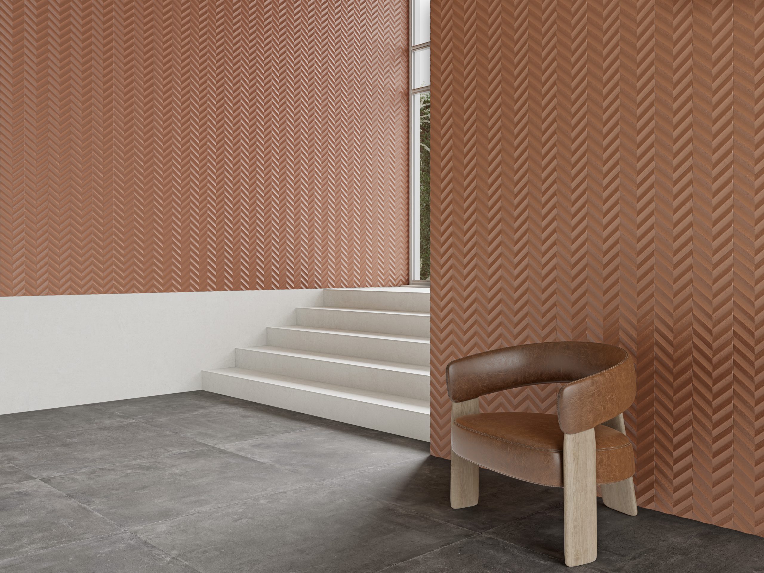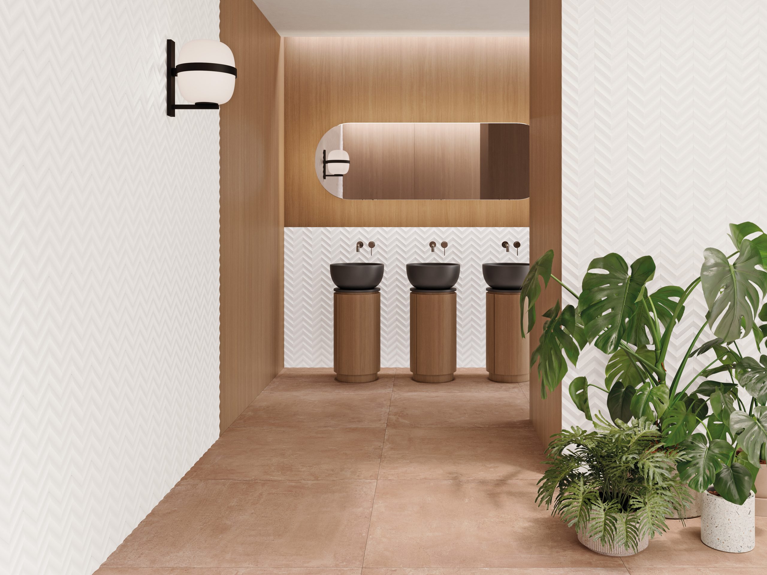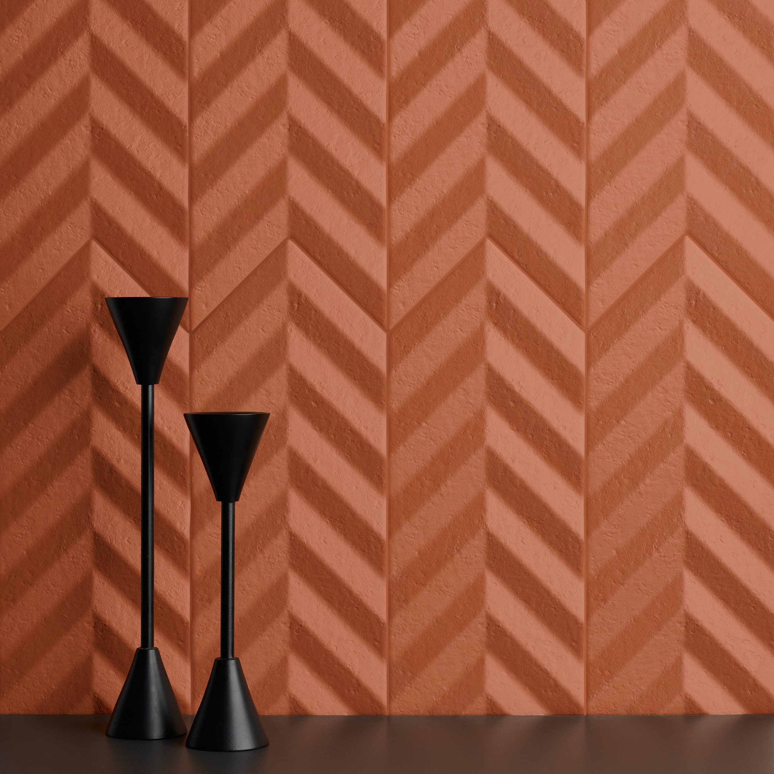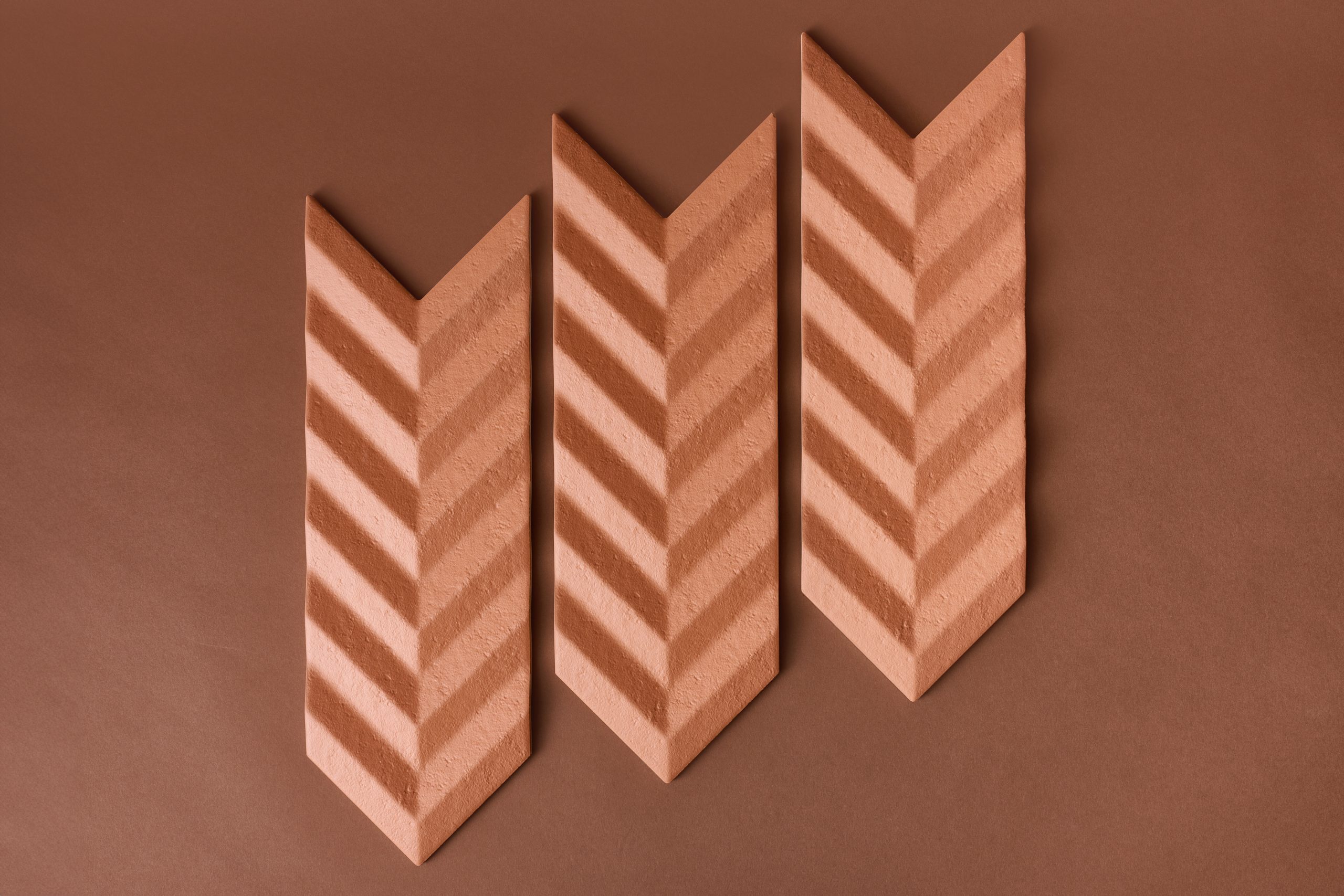 This collection is inspired by pleats and the accordion-like movement of pleated fabric. This 150x380mm collection, in a choice of three colours (white, clay and green) features a stone-like texture on its surface.
