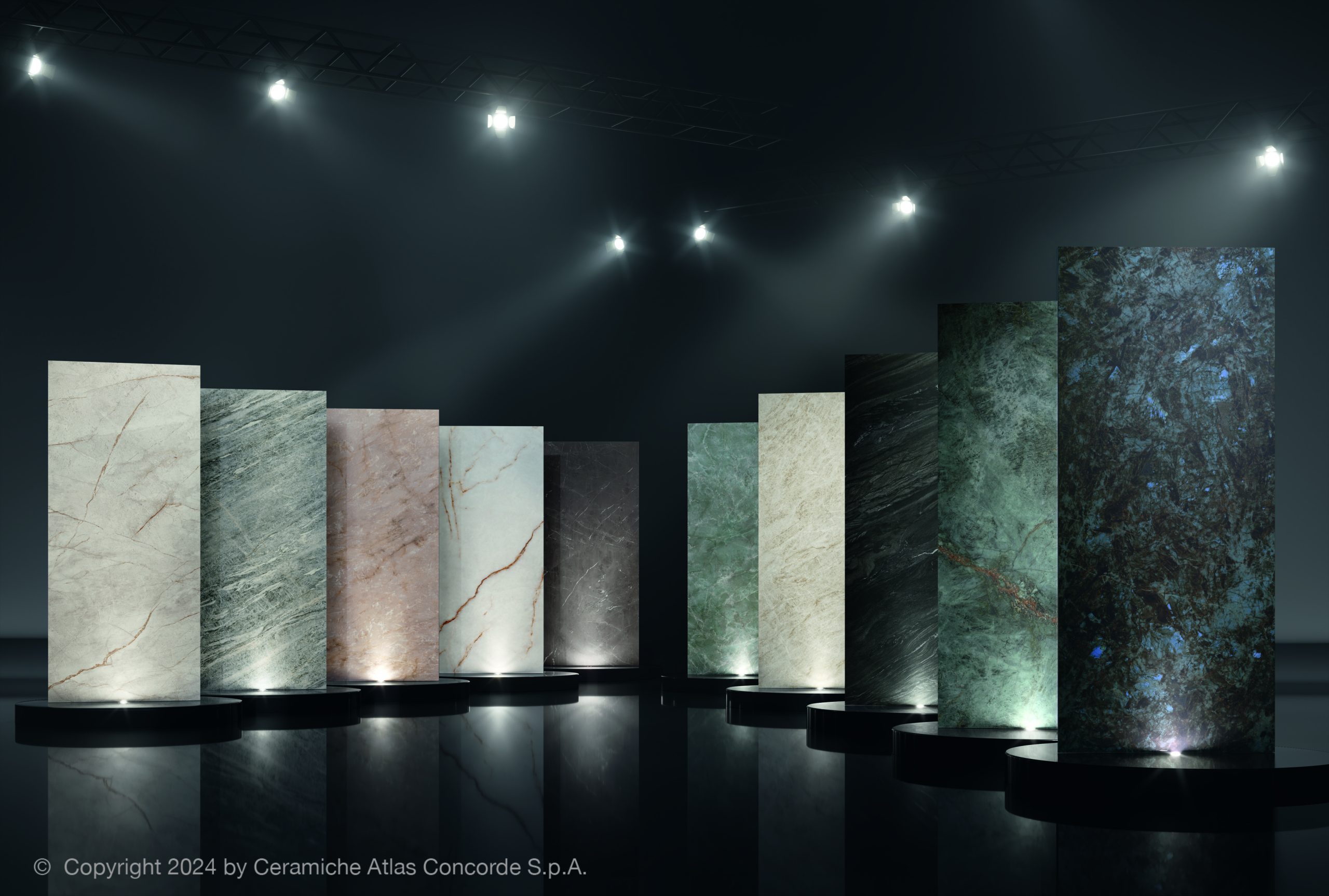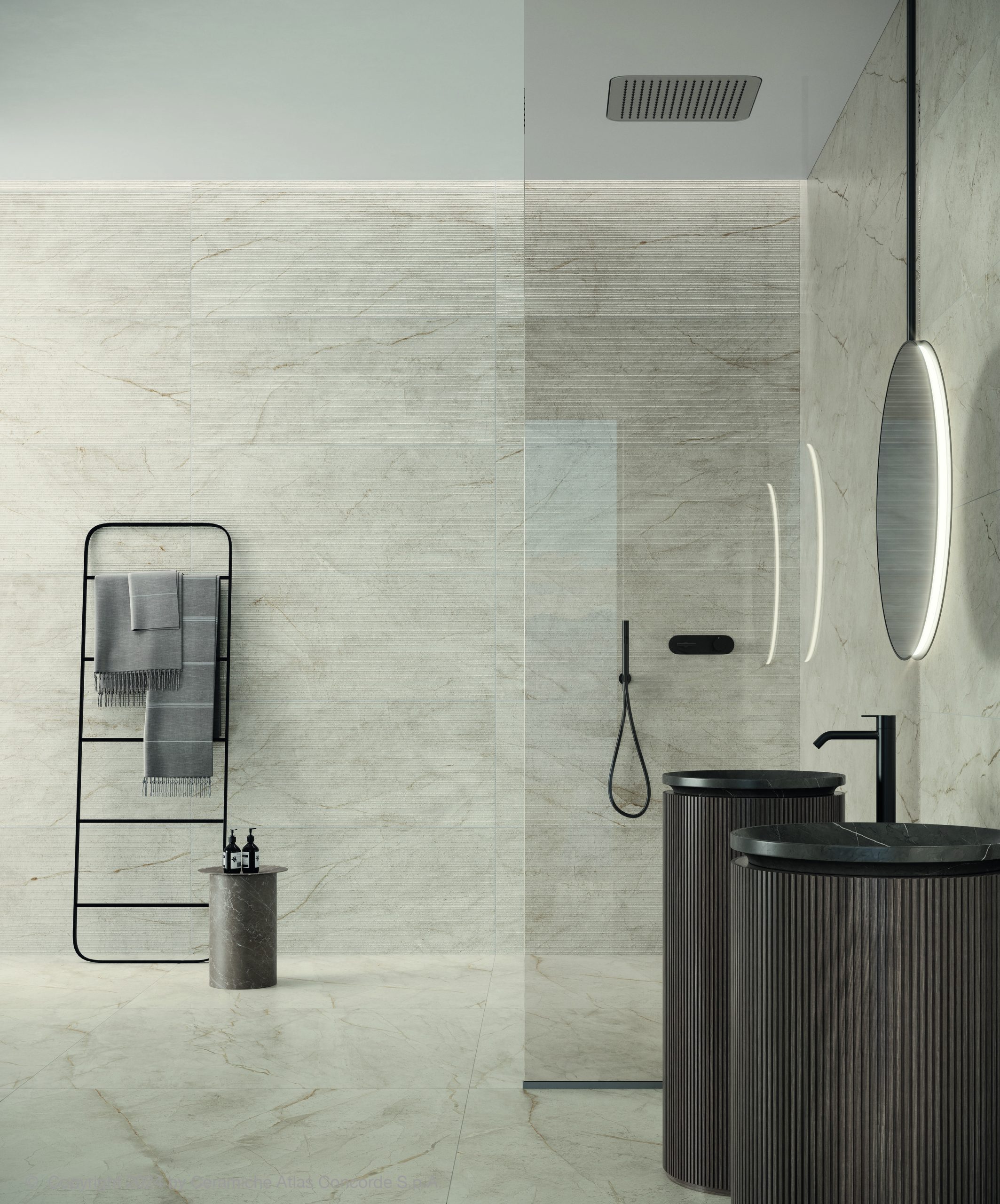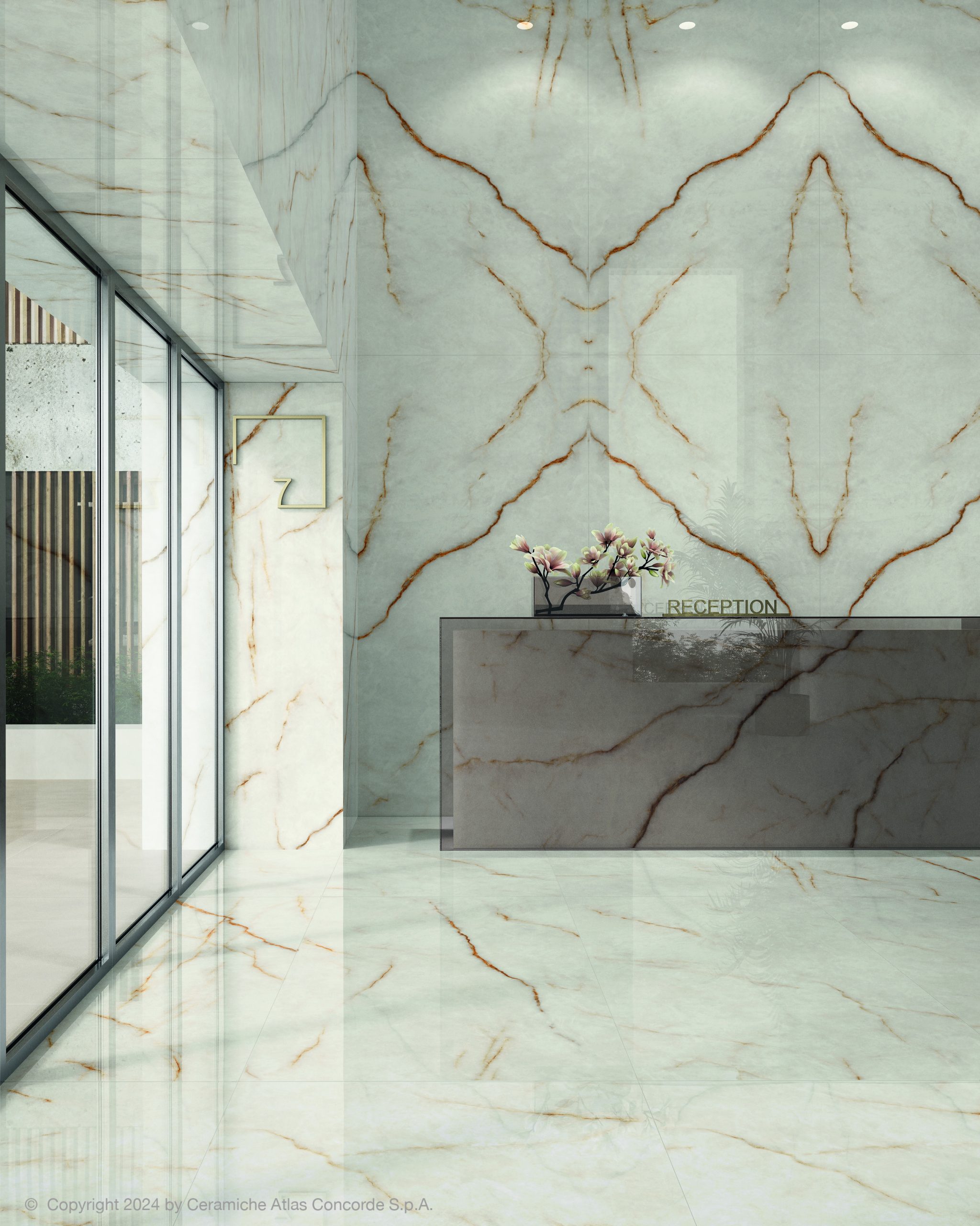 Diva is simply iconic. An explosion of beauty and character with 10 marble effect porcelain tiles offering their best look on large slabs.