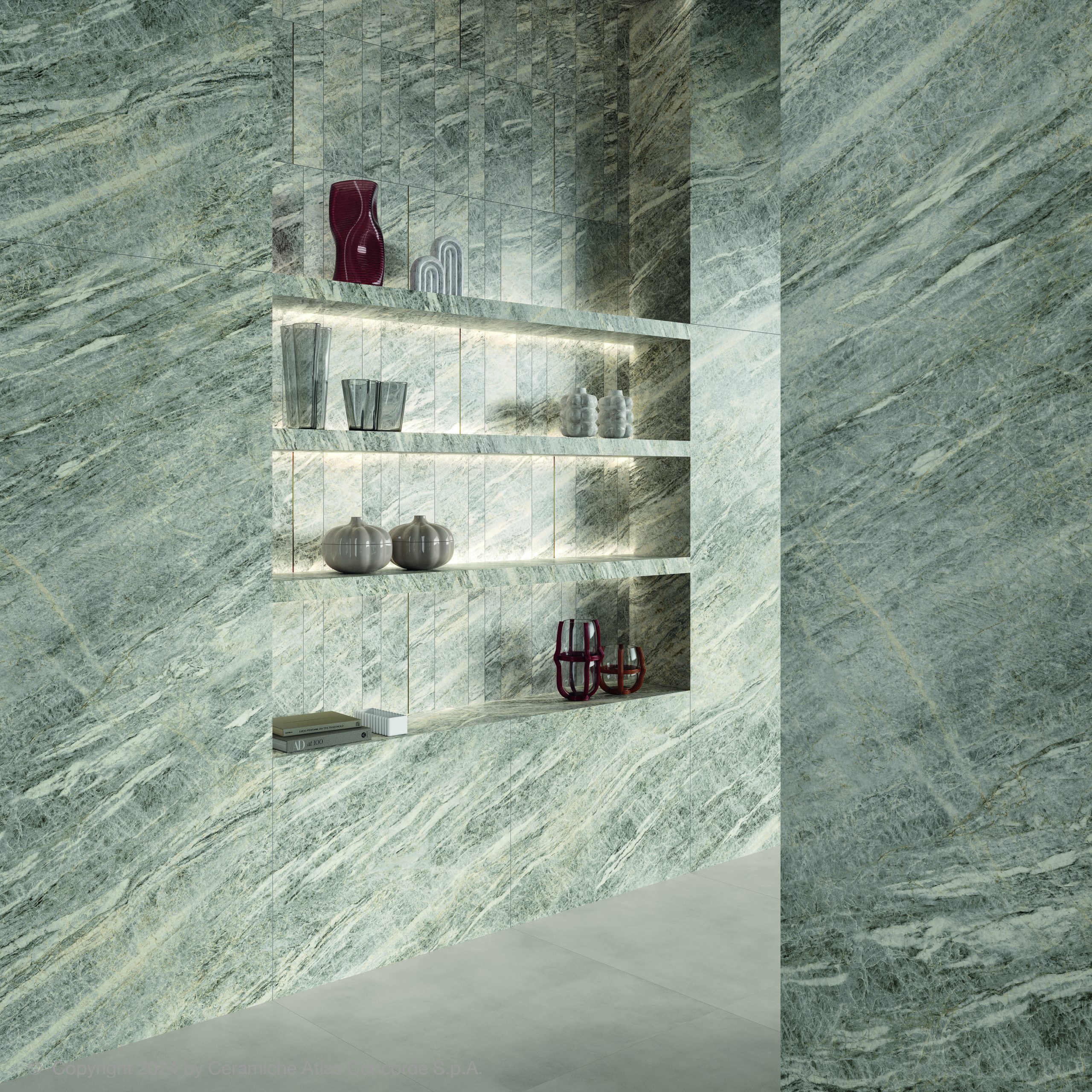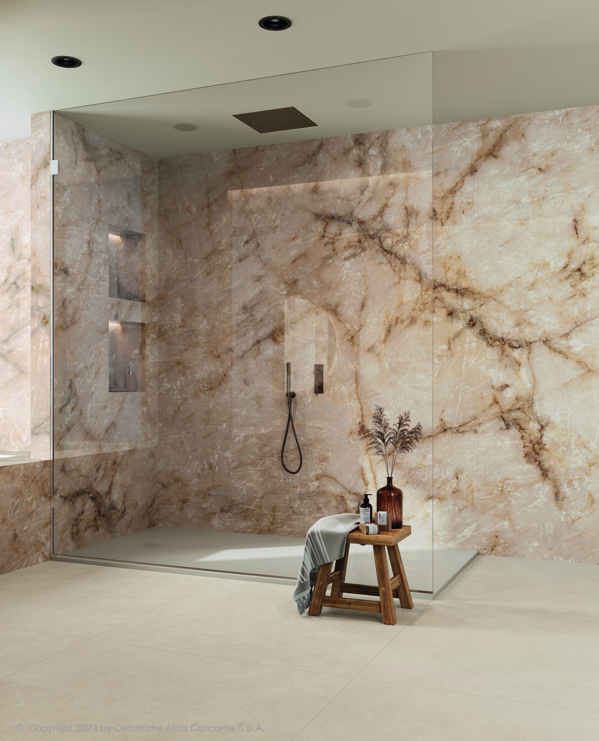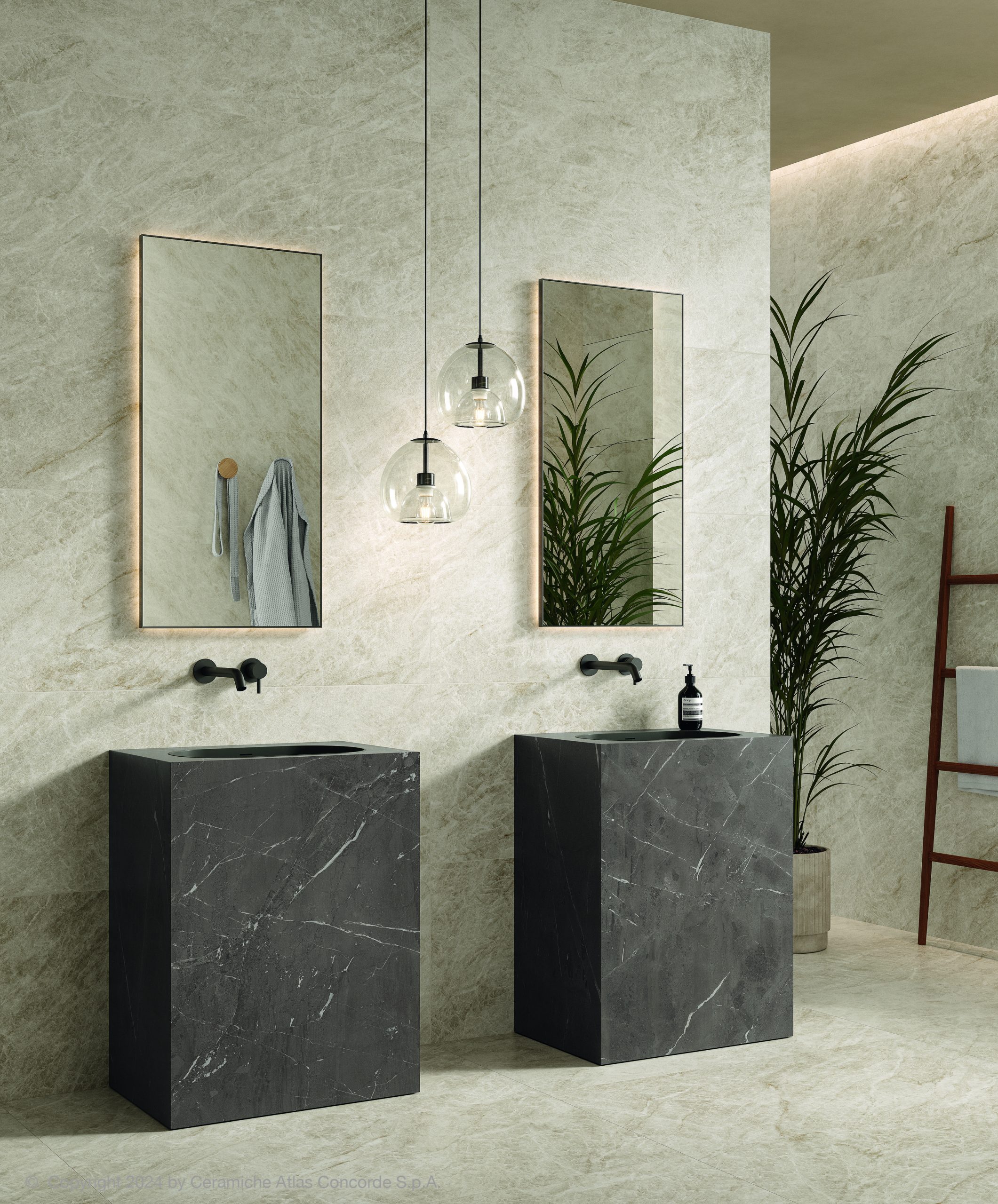 Diva is simply iconic. An explosion of beauty and character with 10 marble effect porcelain tiles offering their best look on large slabs.