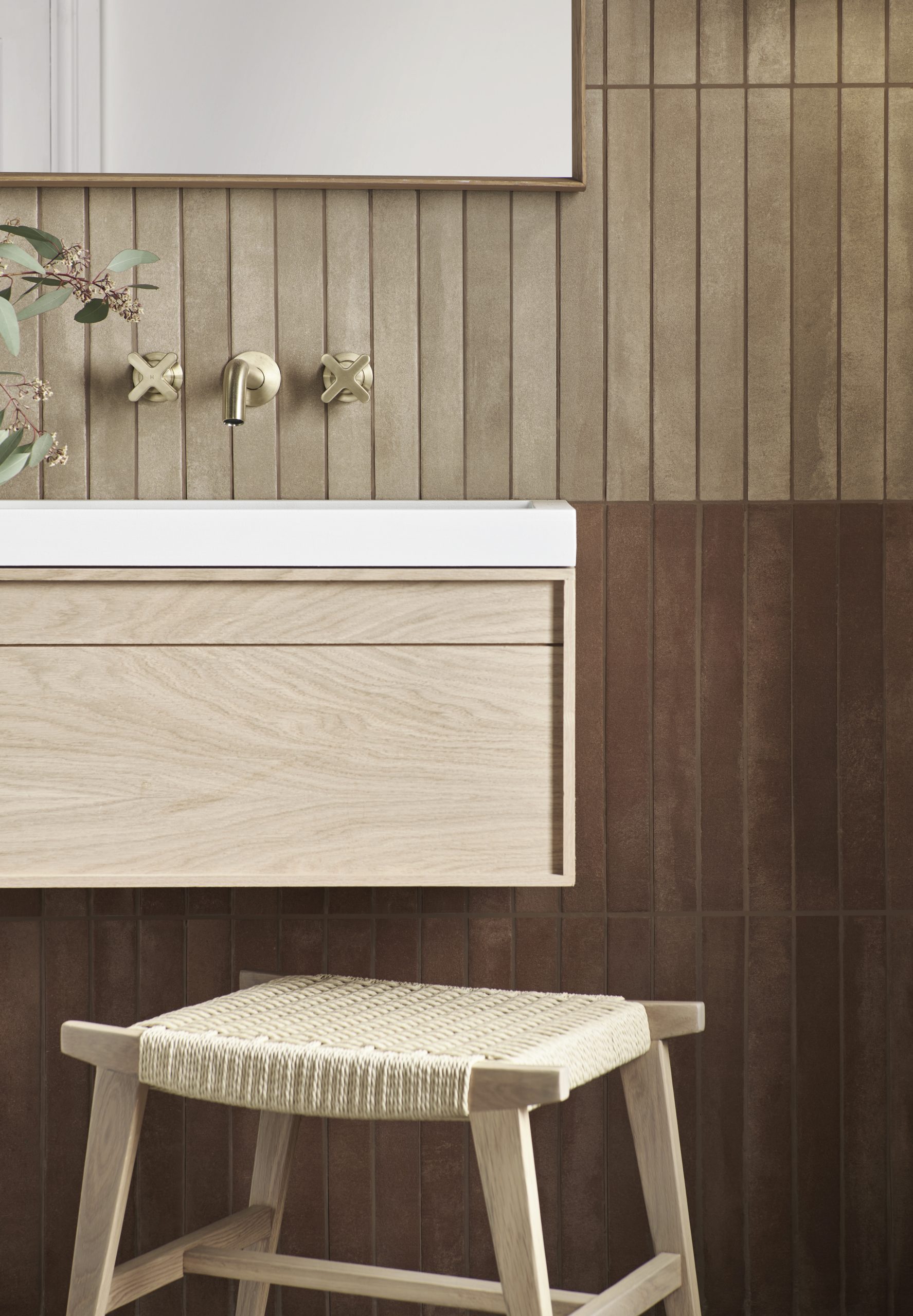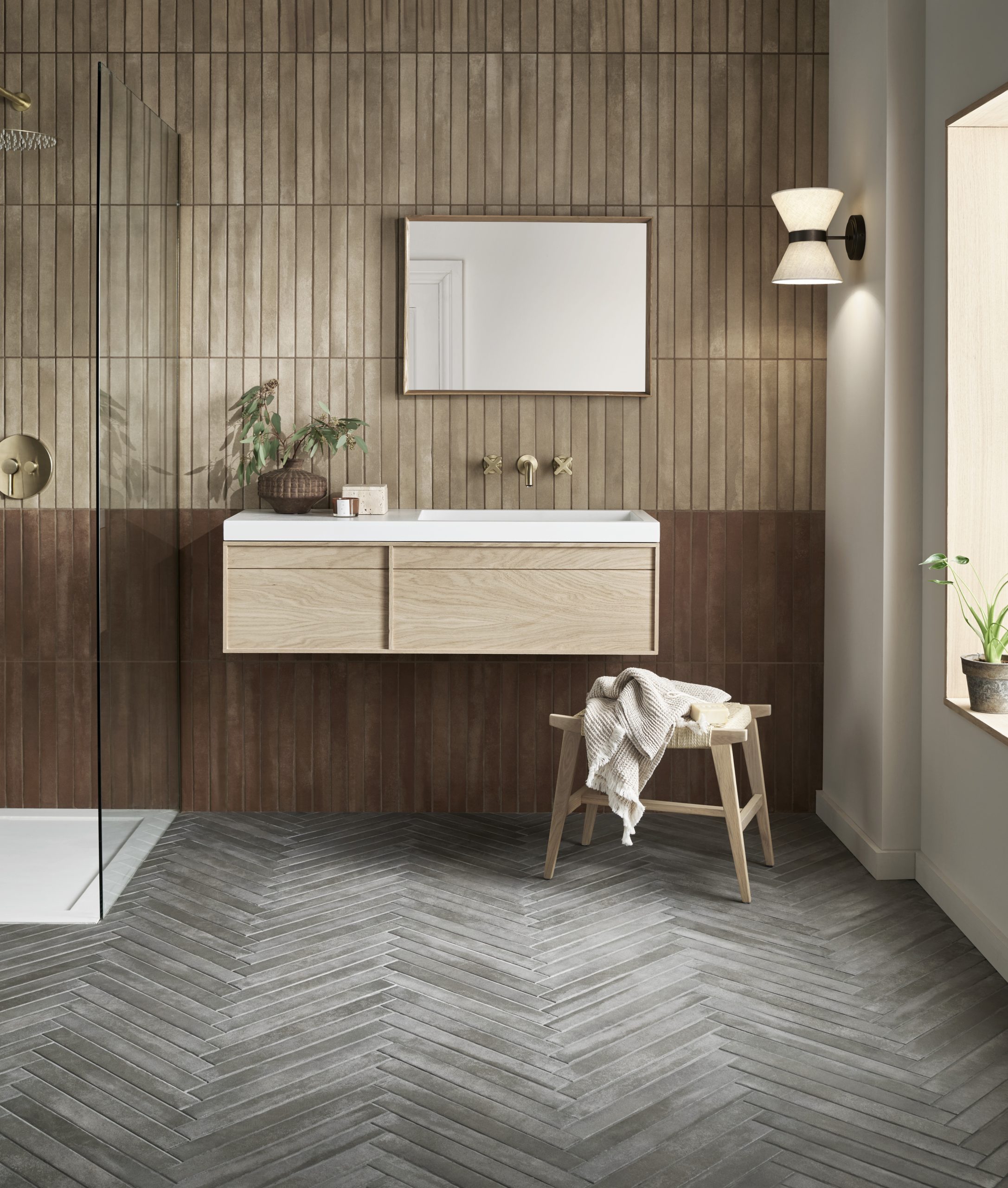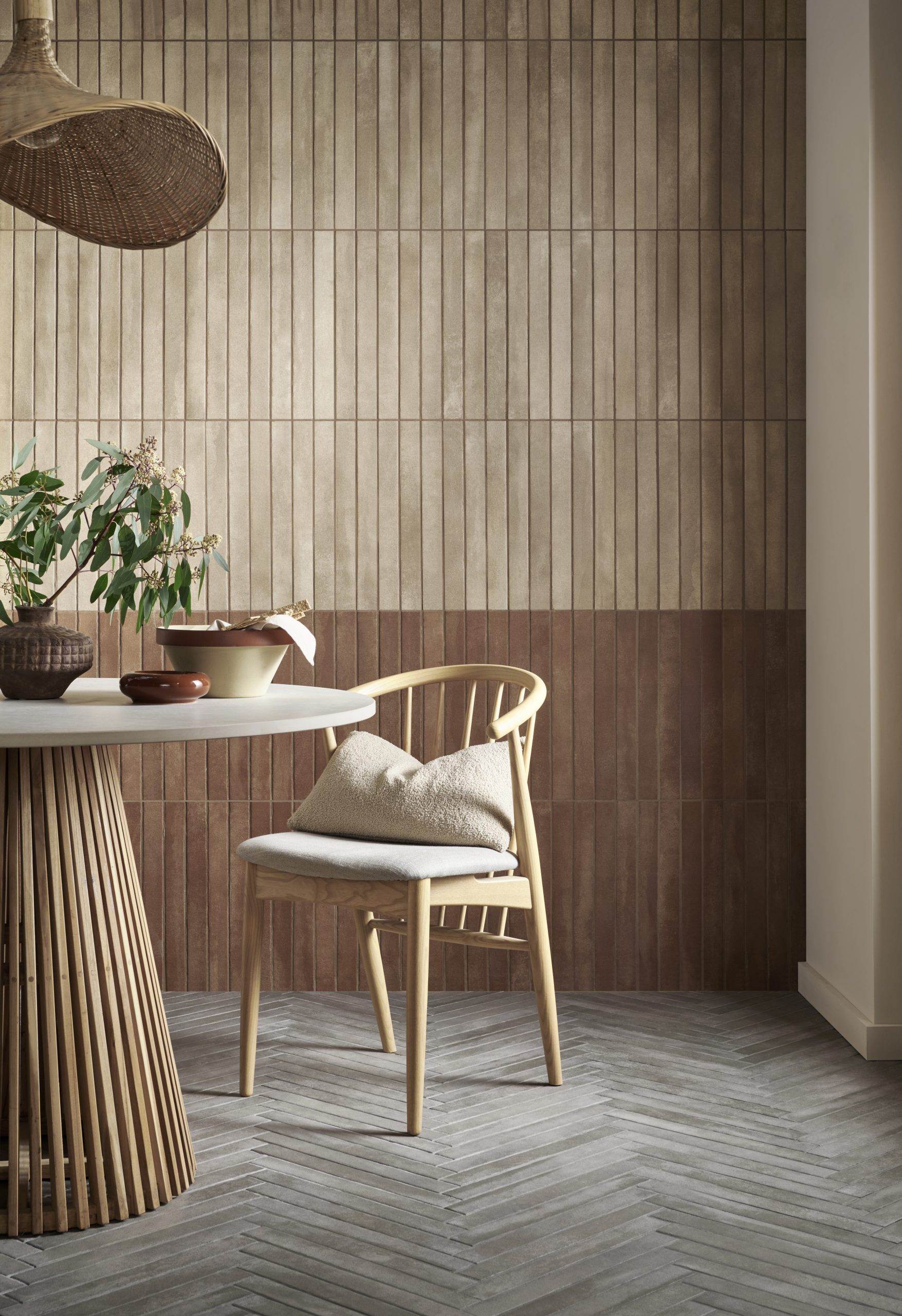 Available in five colours ranging from warm terracotta to modern sage, the 48mmx450mm format lends itself to various laying patterns with a rustic edge giving a natural brick look.
