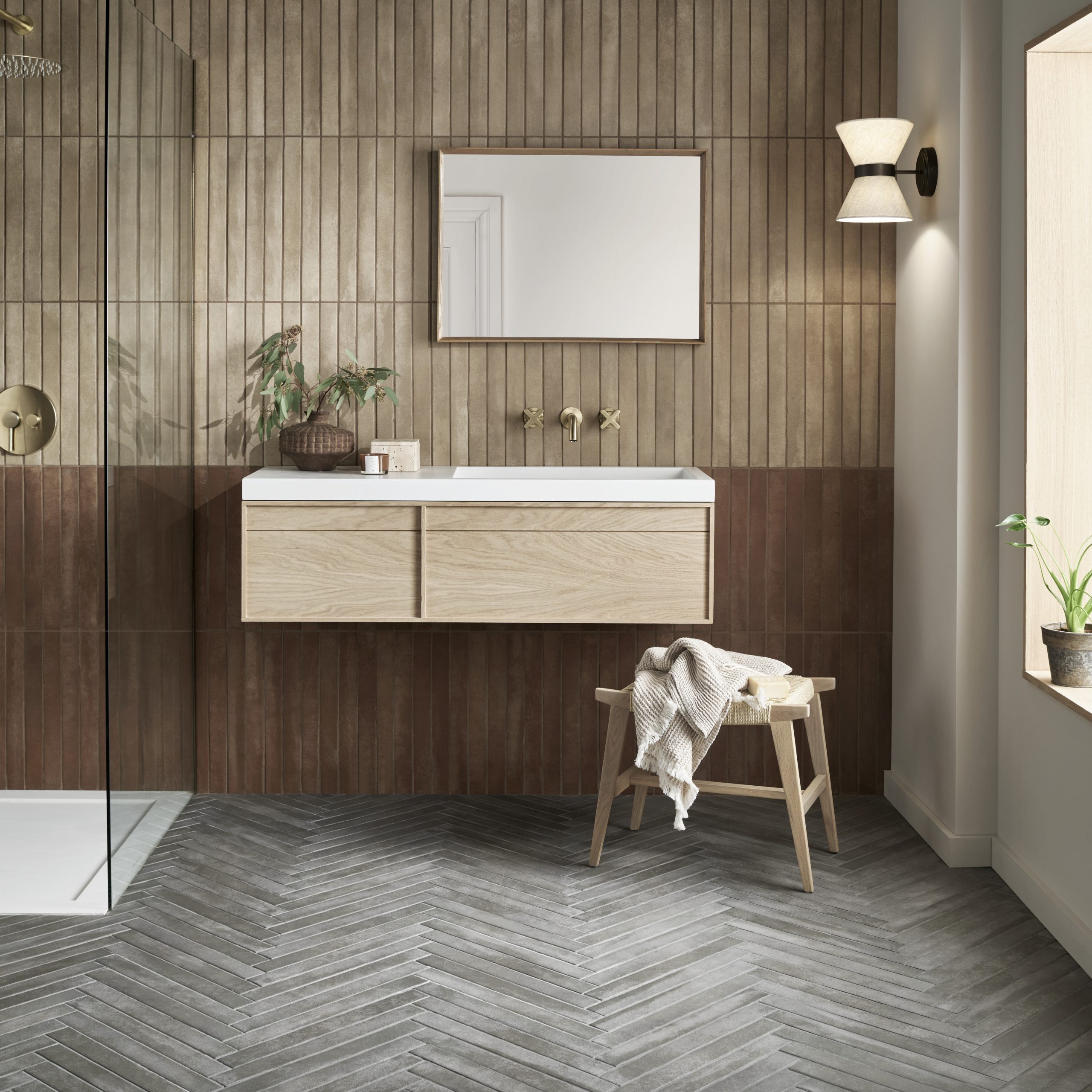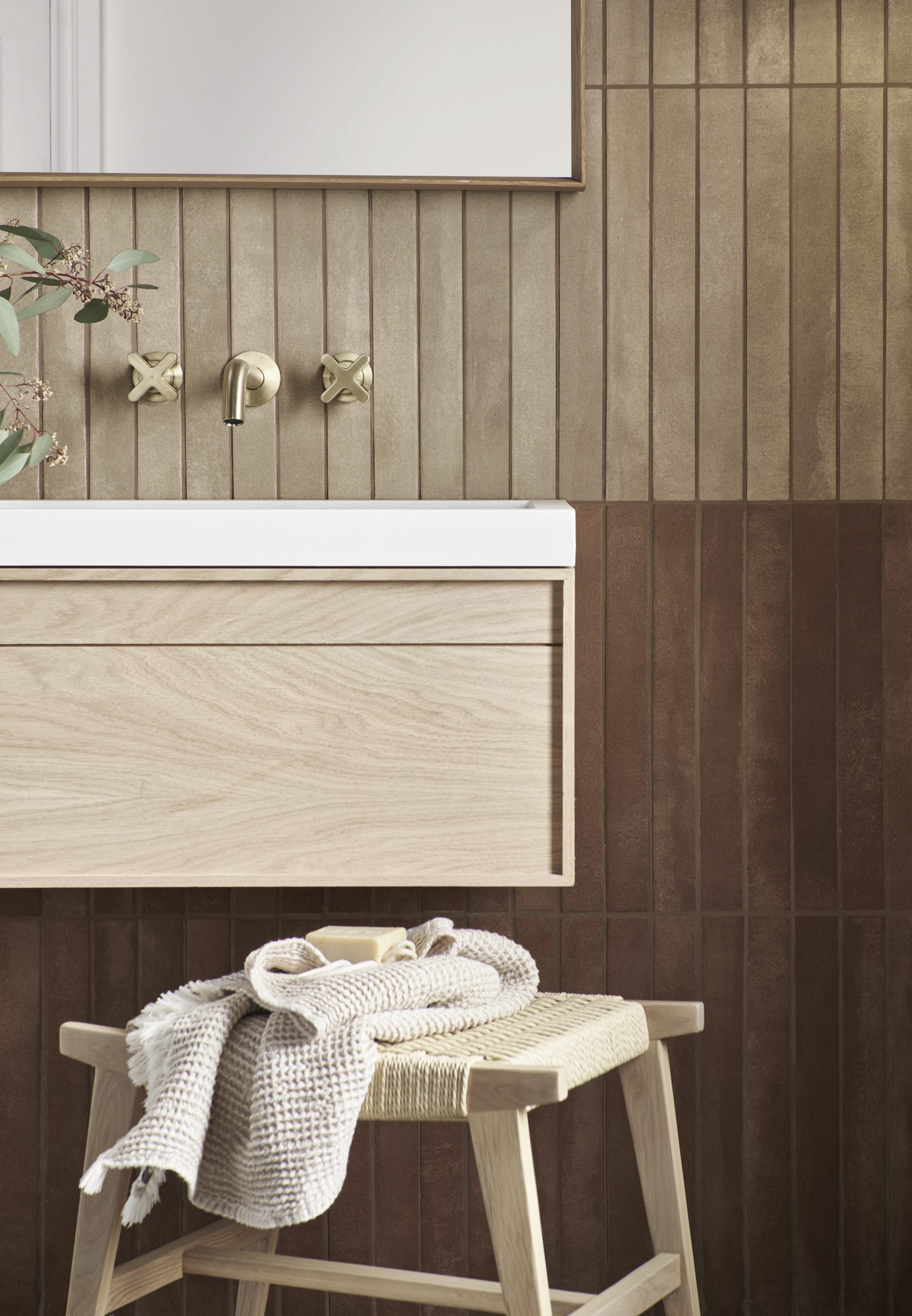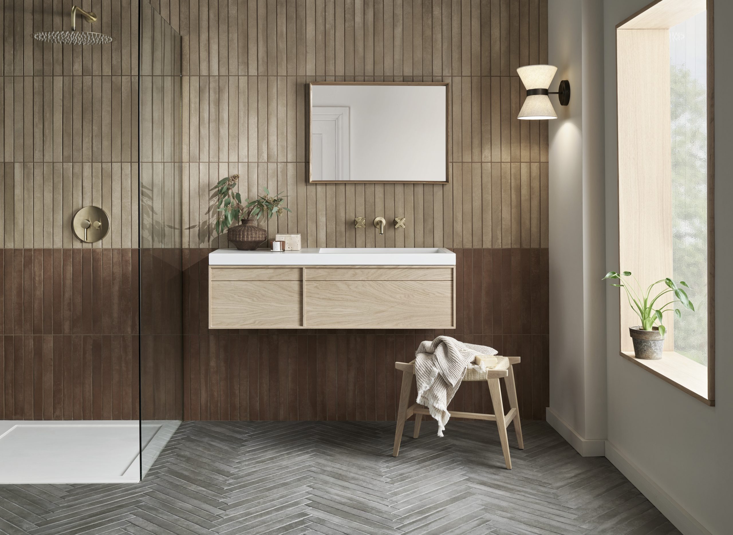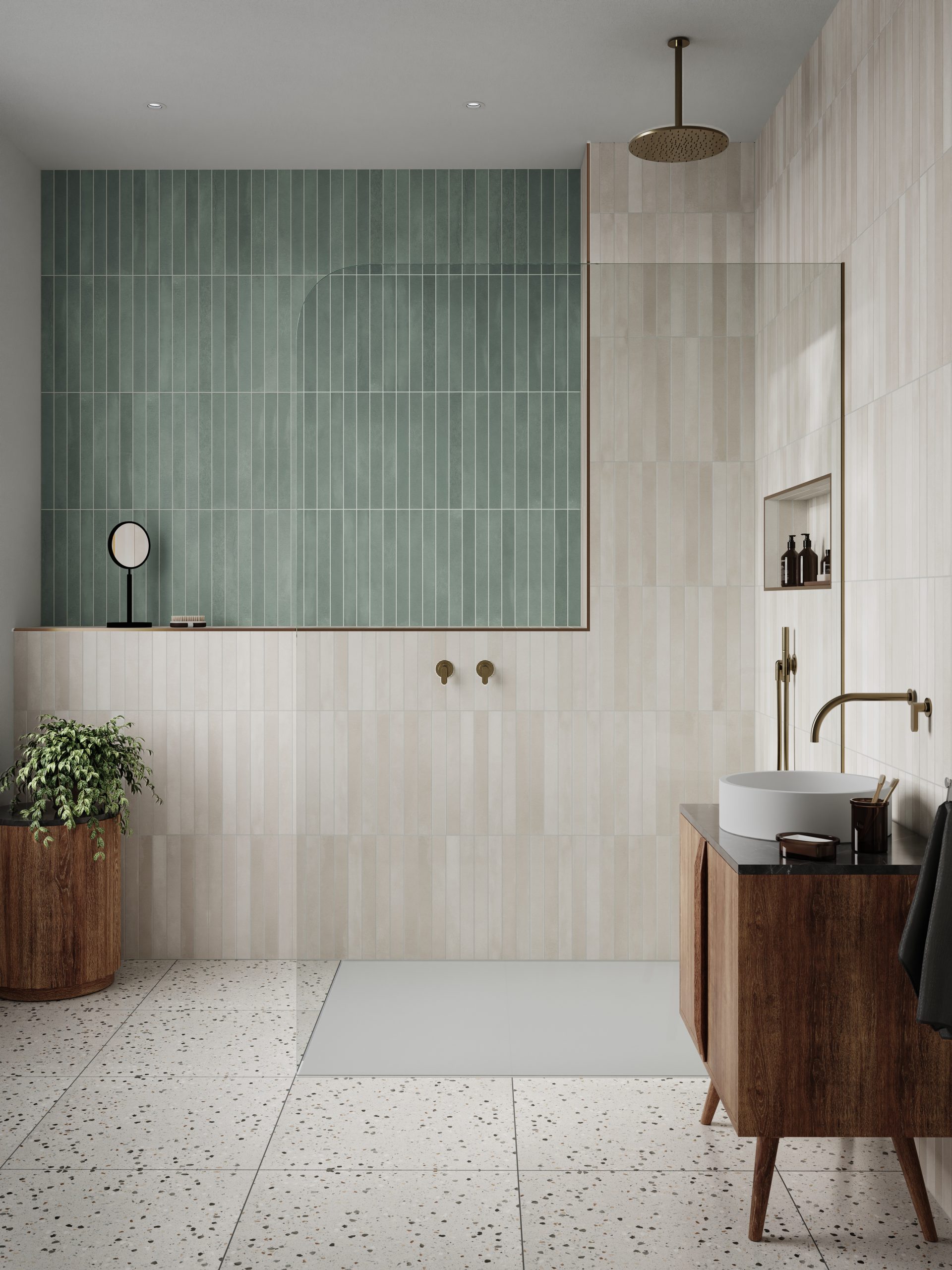 Available in five colours ranging from warm terracotta to modern sage, the 48mmx450mm format lends itself to various laying patterns with a rustic edge giving a natural brick look.