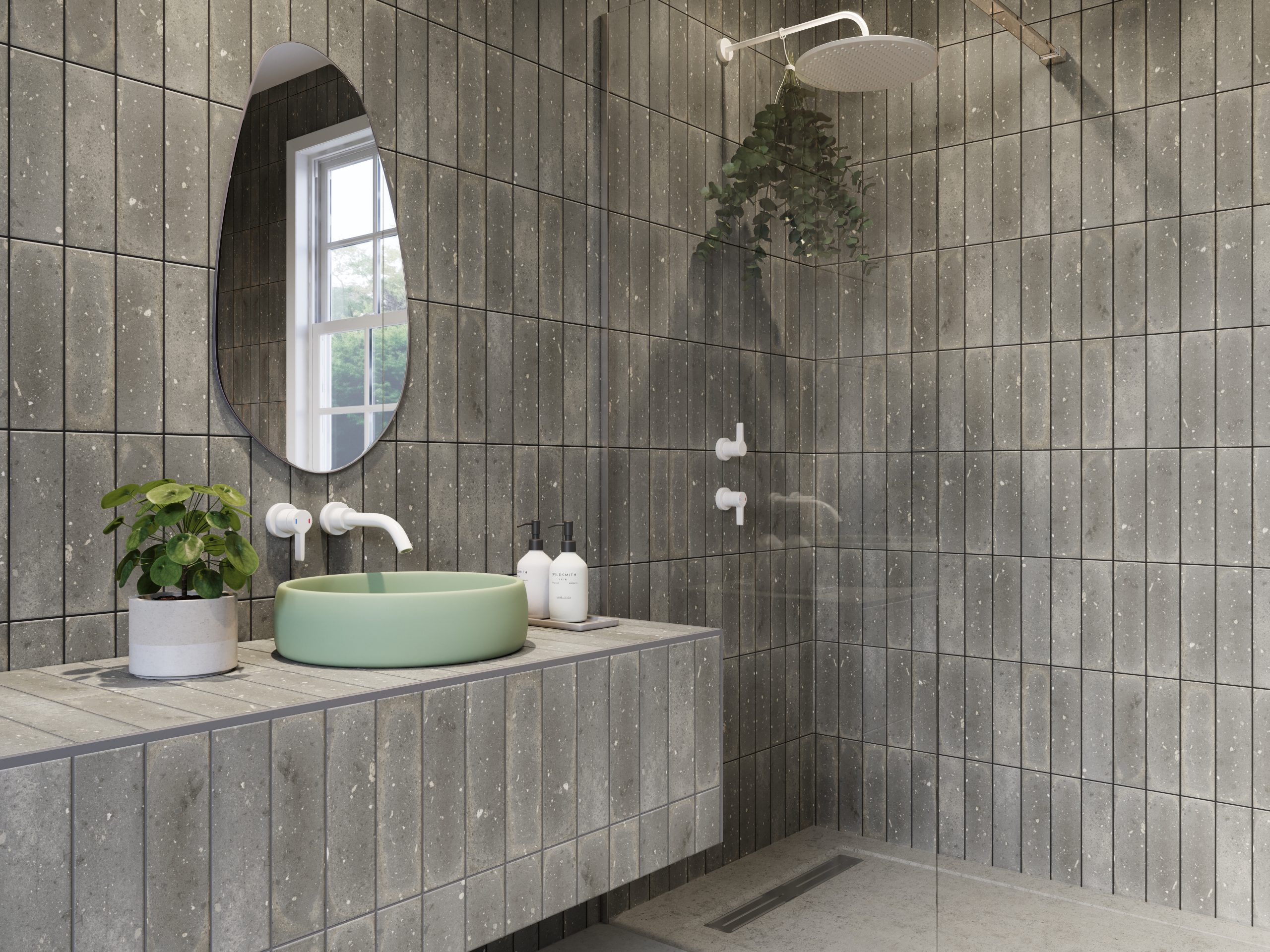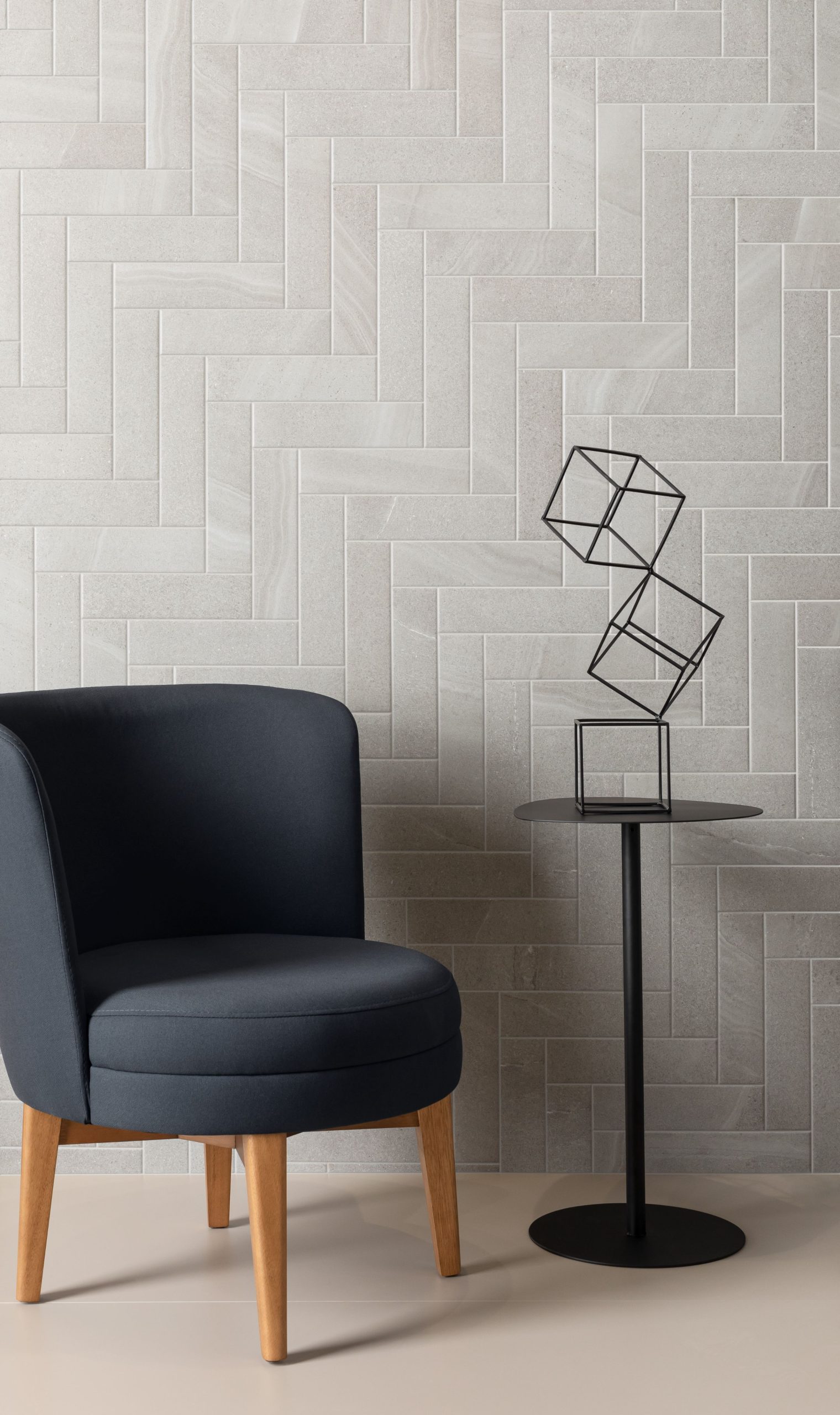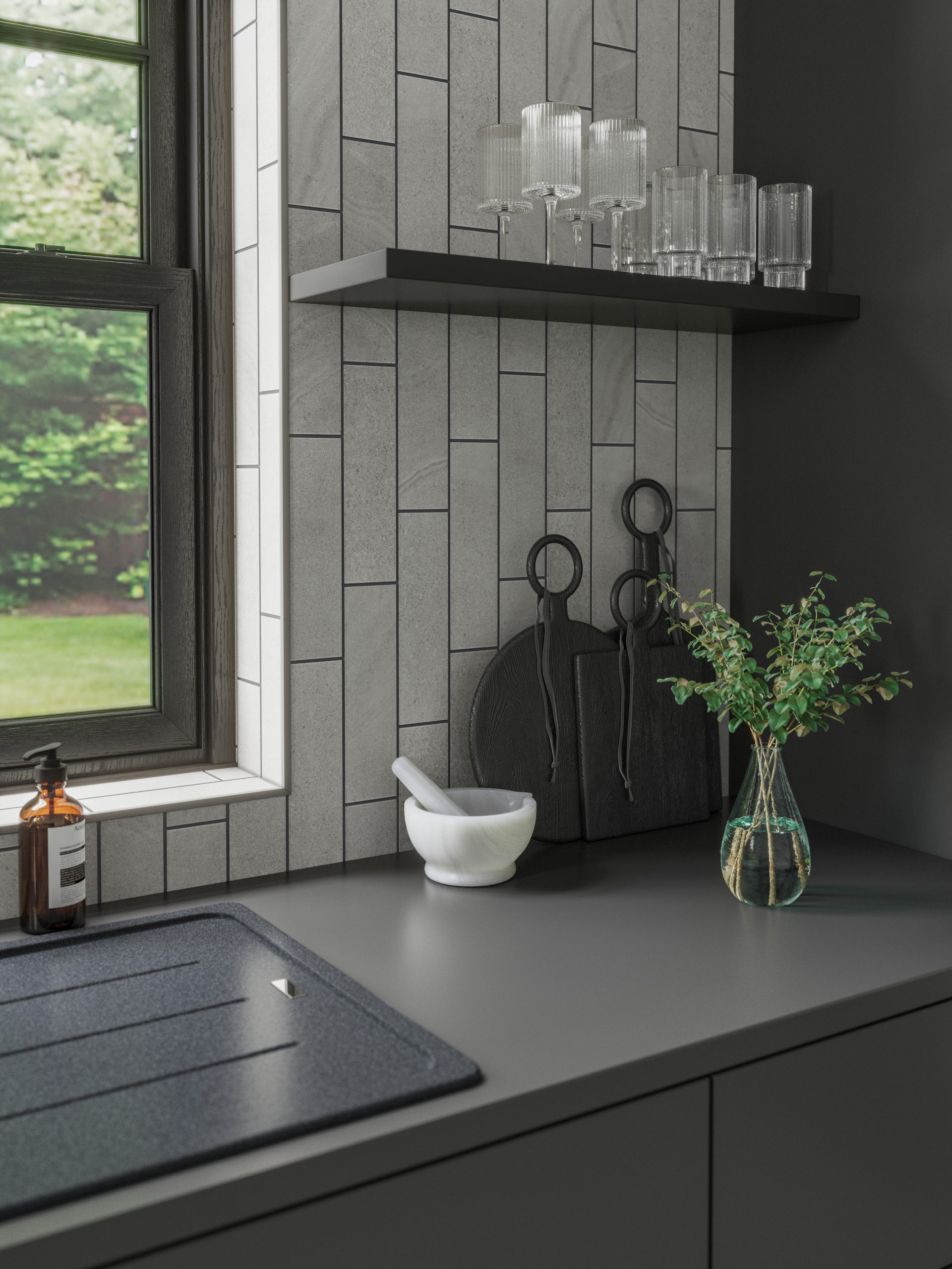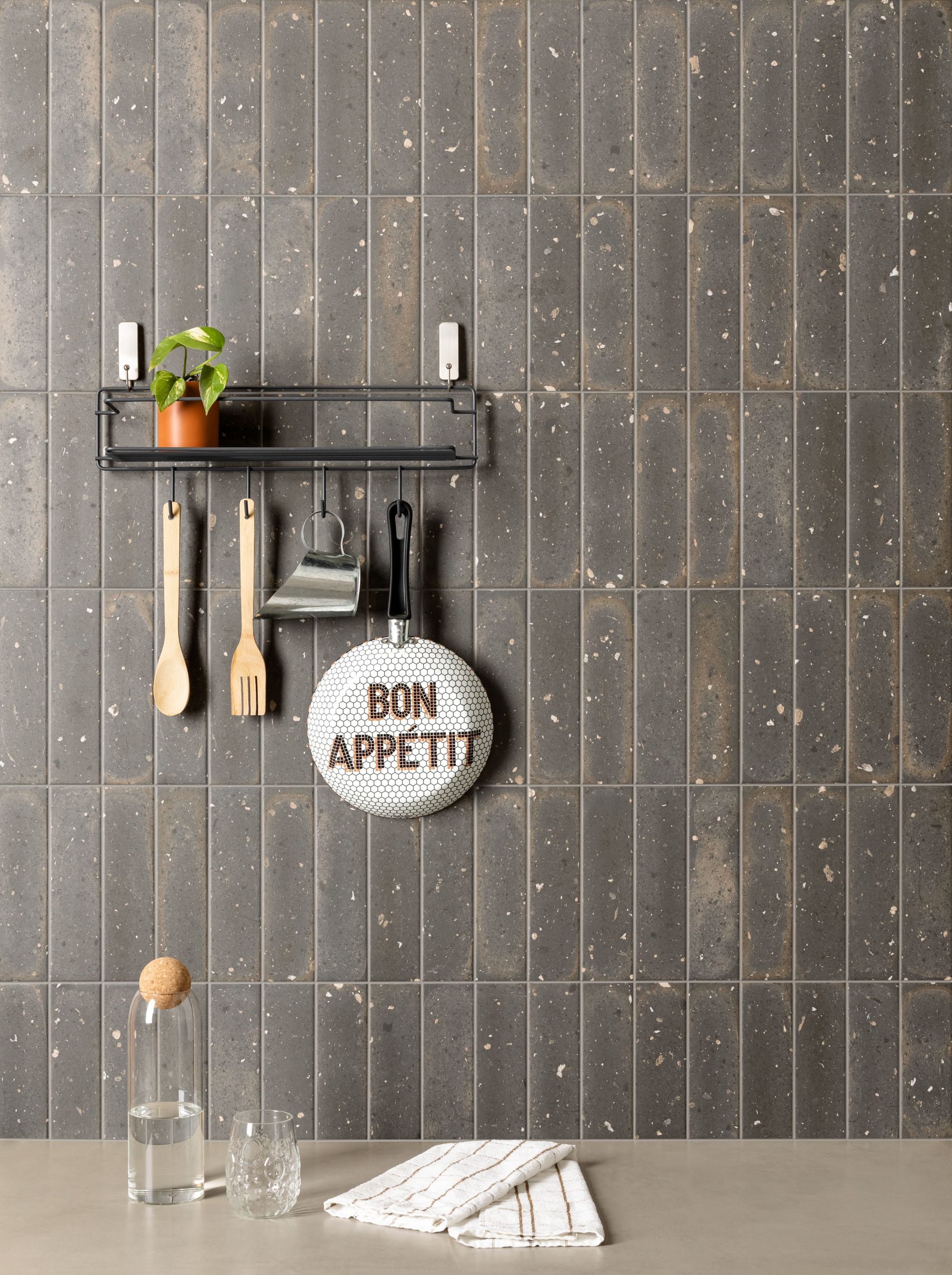Exclusive to Parkside, Kilburn is a brick style range which offers a stone effect finish in grey and ivory, and a terrazzo effect finish in black and terracotta.