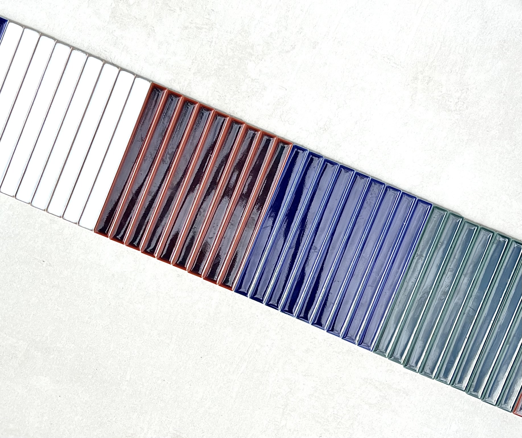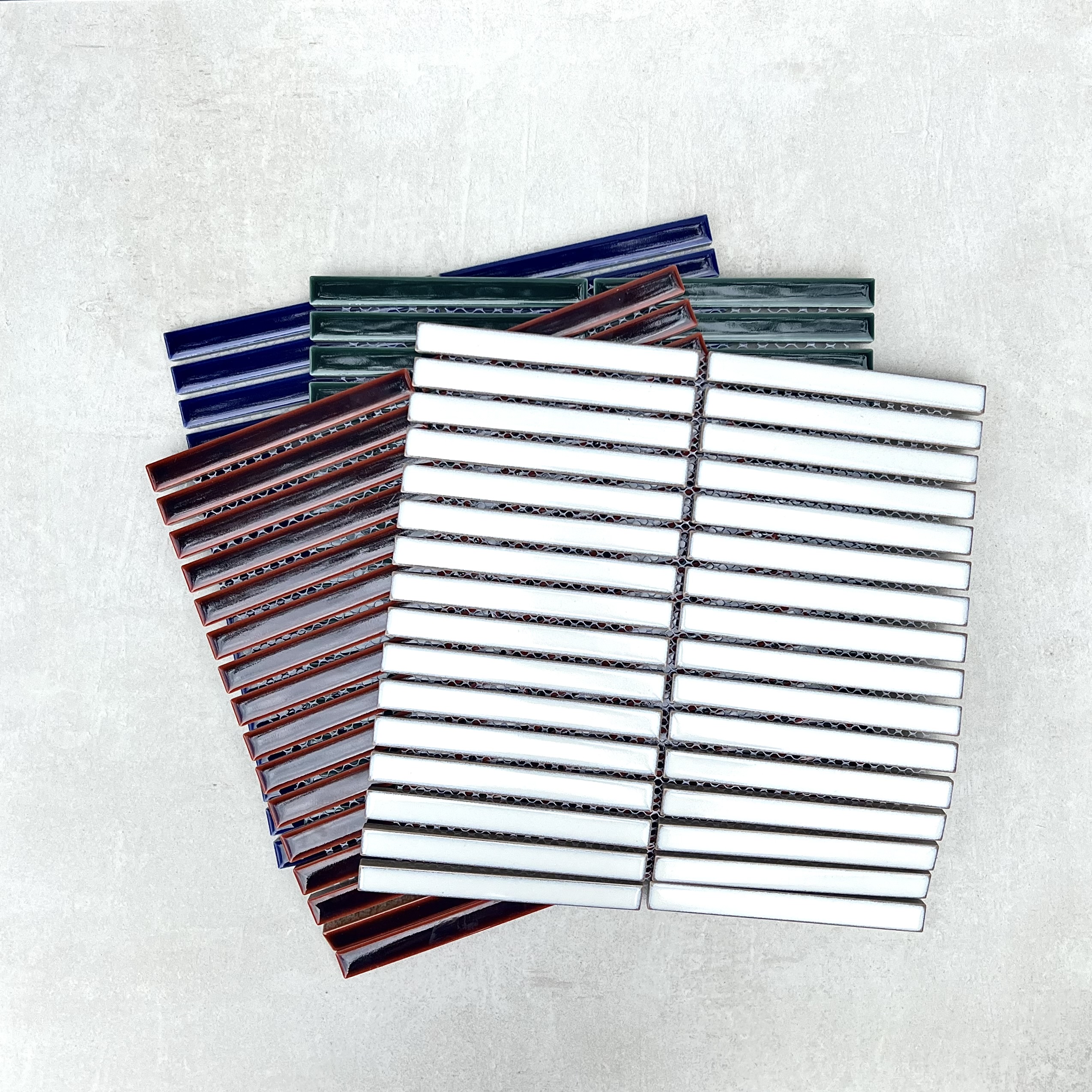 Get creative with the finger mosaic, Kit. This thin rectangular porcelain mosaic features a range of jewel like tones for a luxurious finish. Great for curved spaces, Kit is a staple in both residential and commercial spaces.