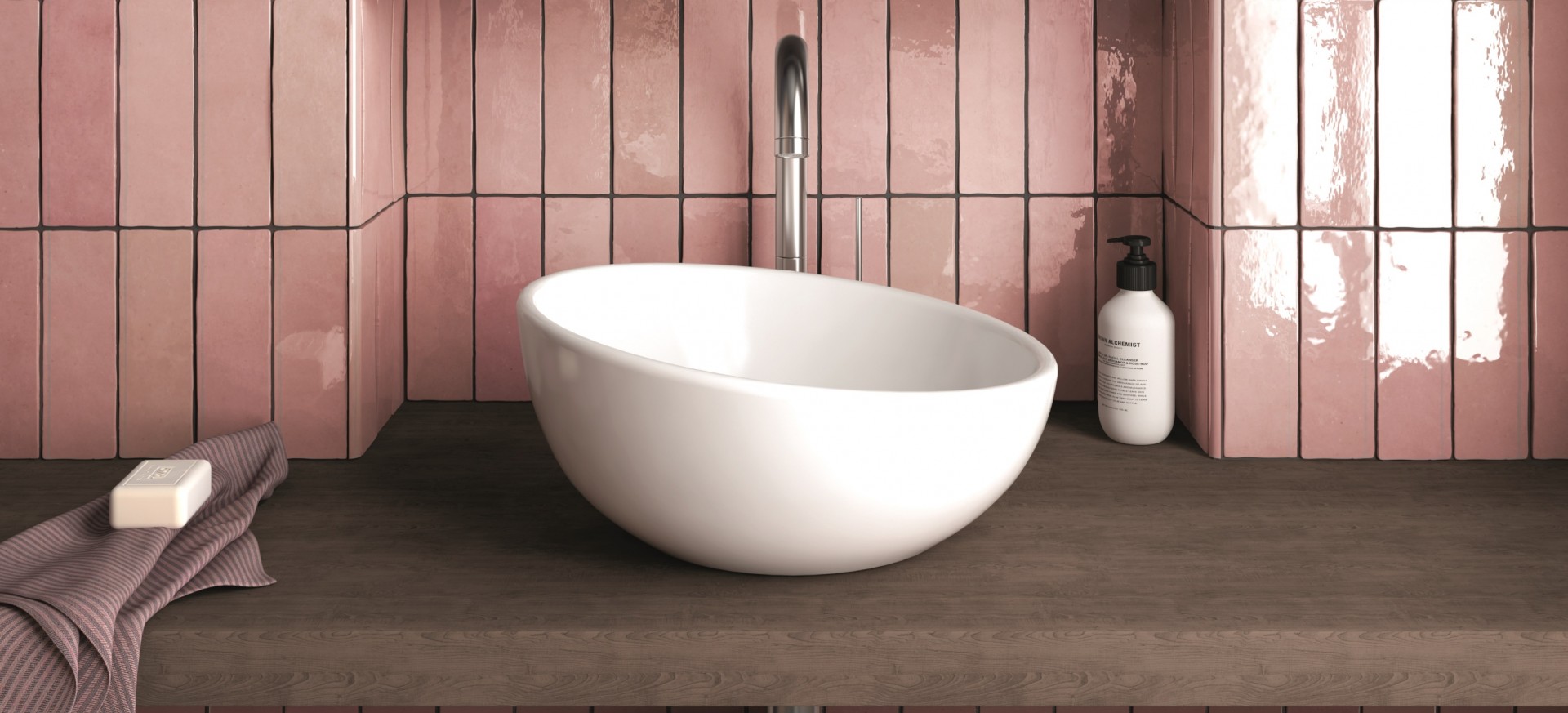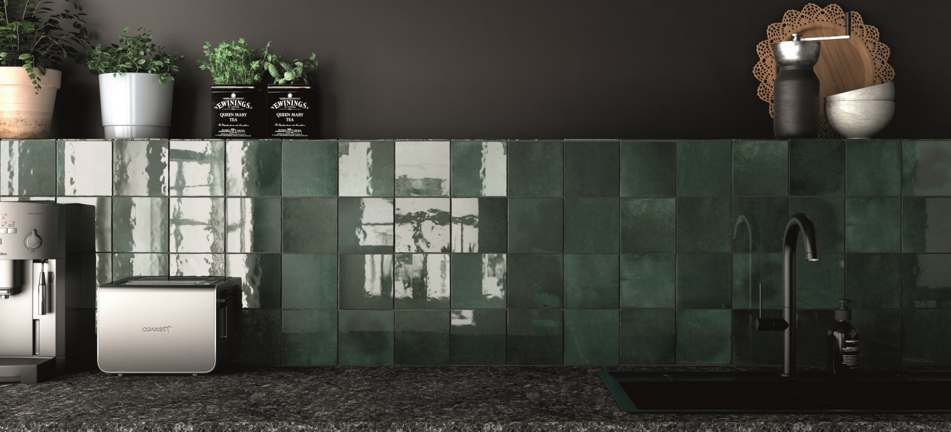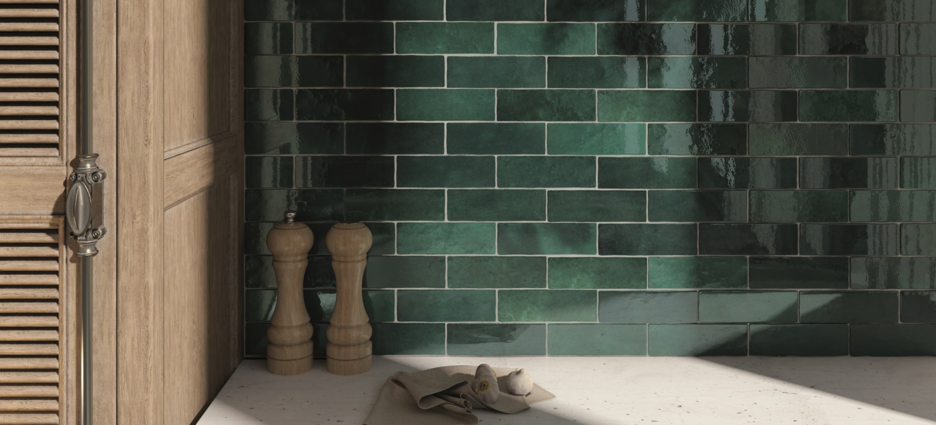 Lyrical is a striking wall tile collection inspired by traditional zellige tiles. Available in 65x200mm and 132x132mm and ten striking colours with each colour having various shades and a beautiful gloss finish.