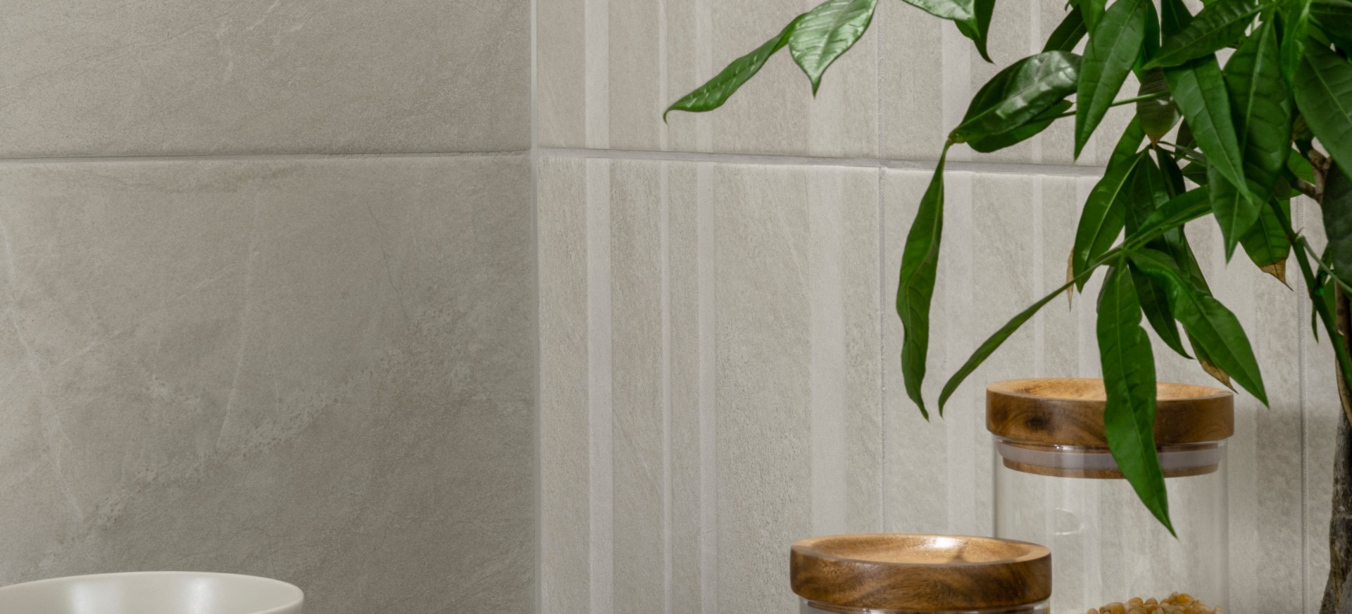 Fitting in with the neutral trend, the linear, structured surface of the decor tiles add a contemporary feel to the collection. Simply mix both the plain and decor tiles to create a sophisticated look on your next project.