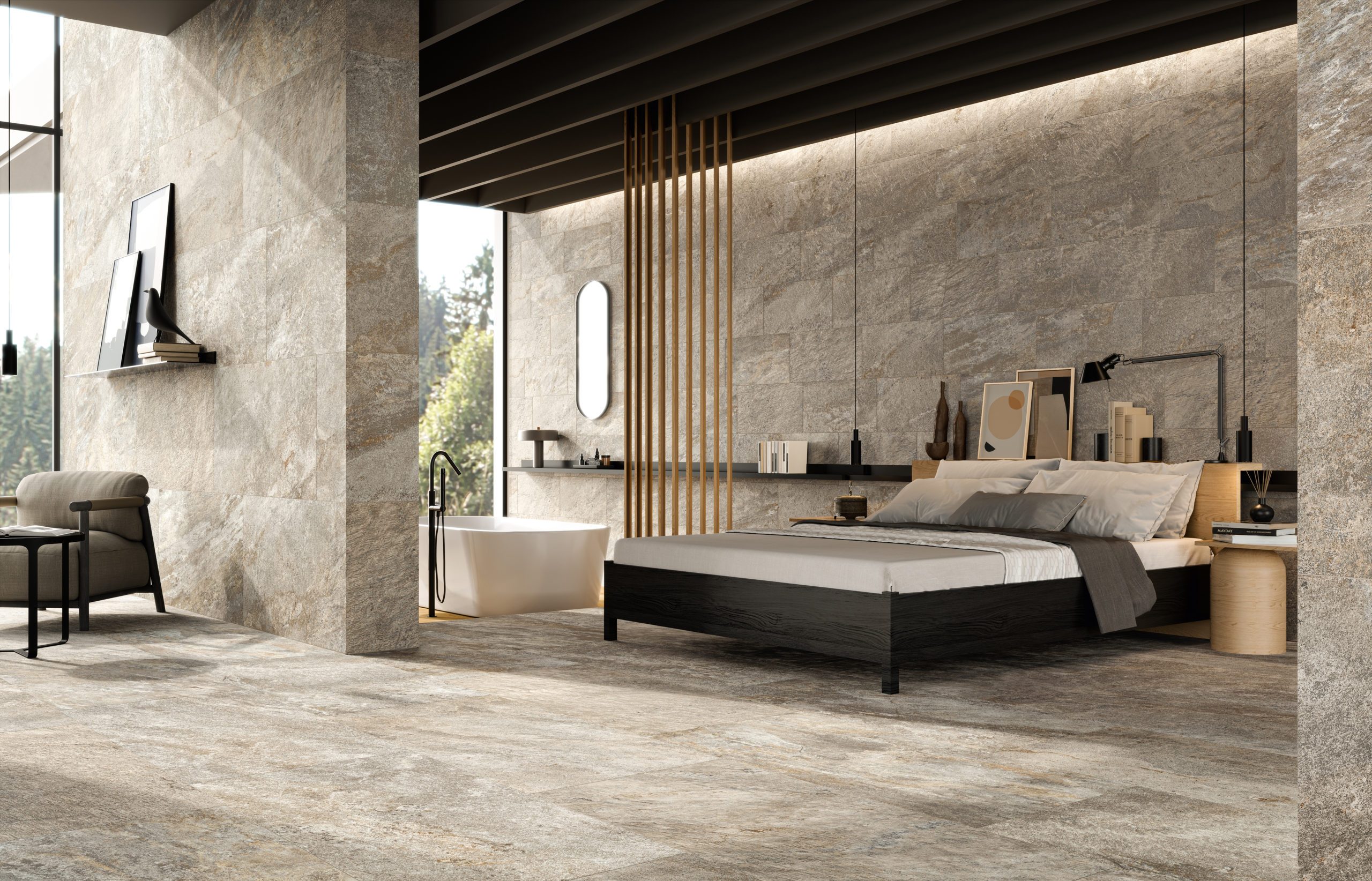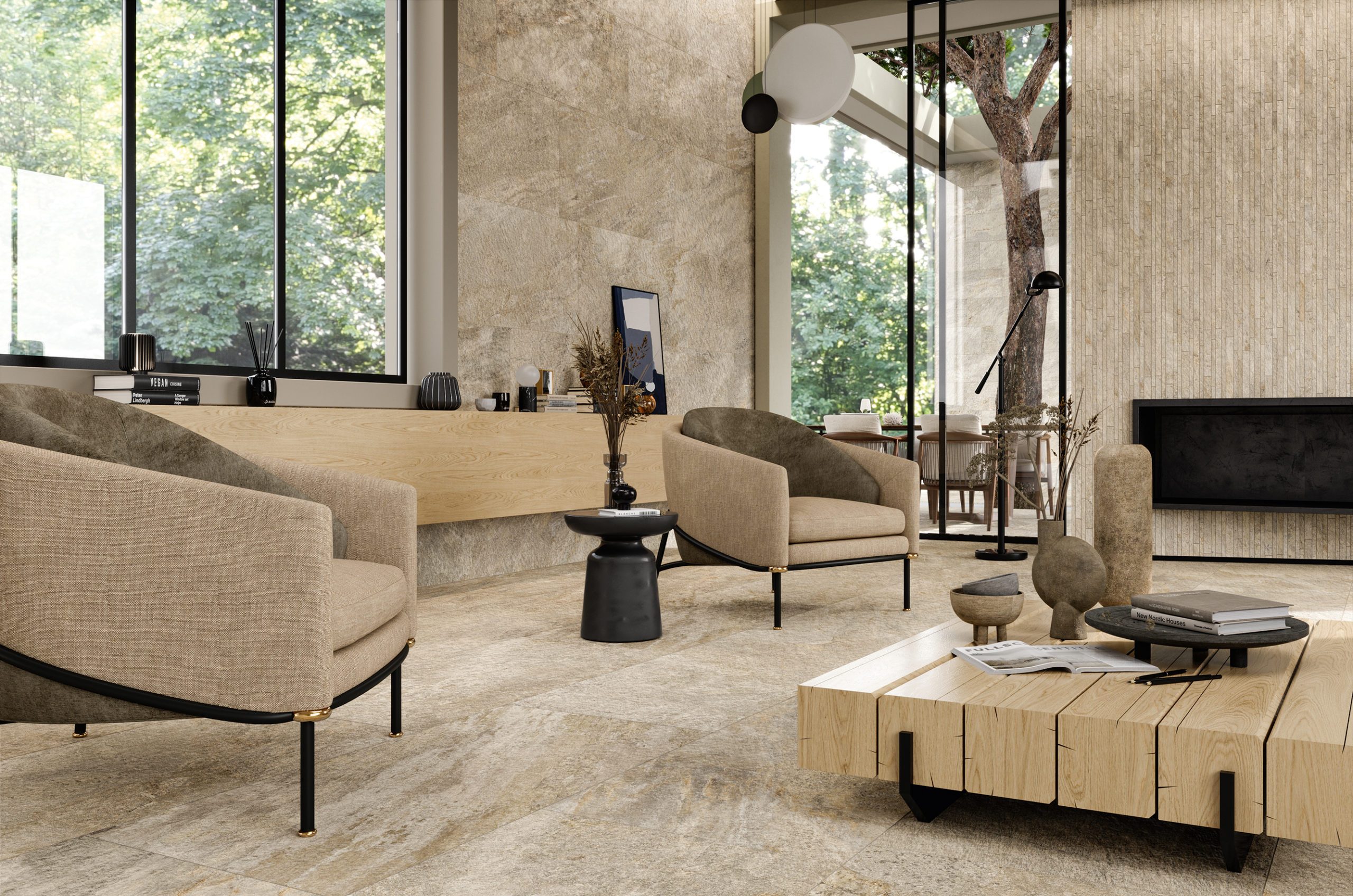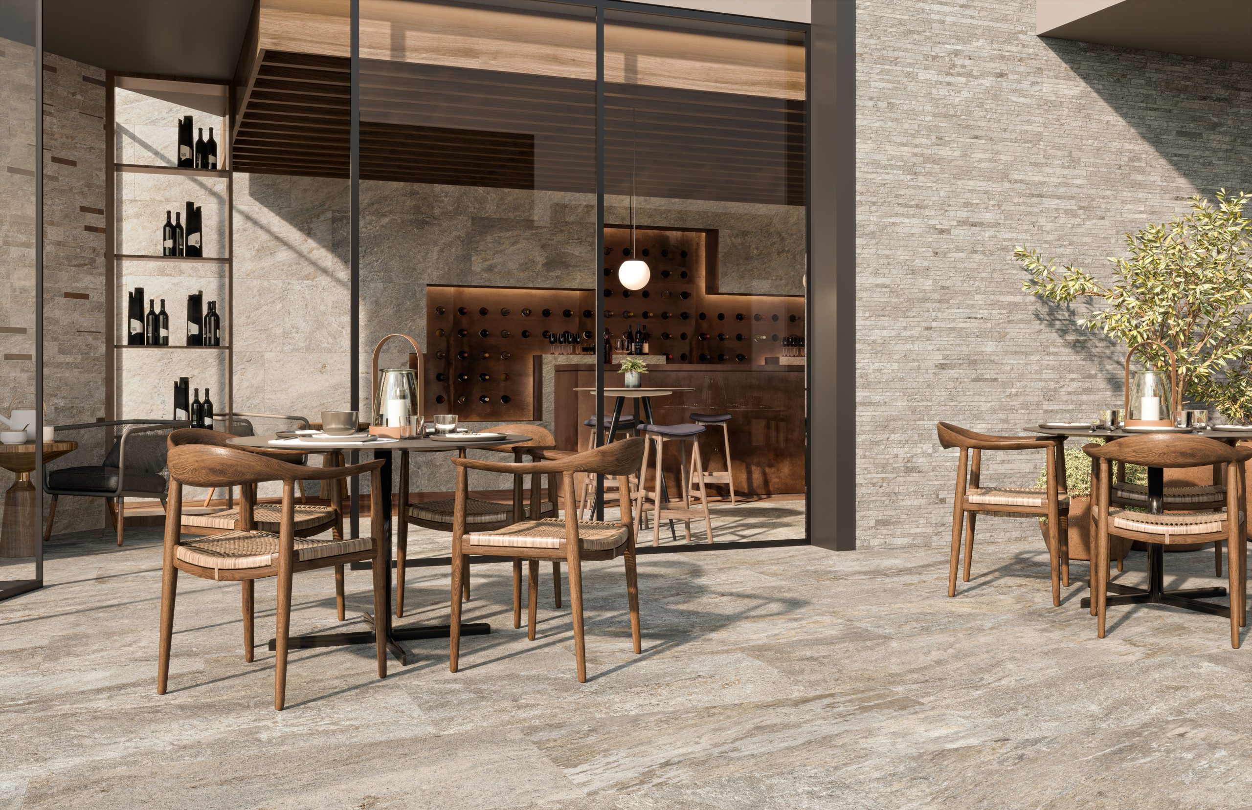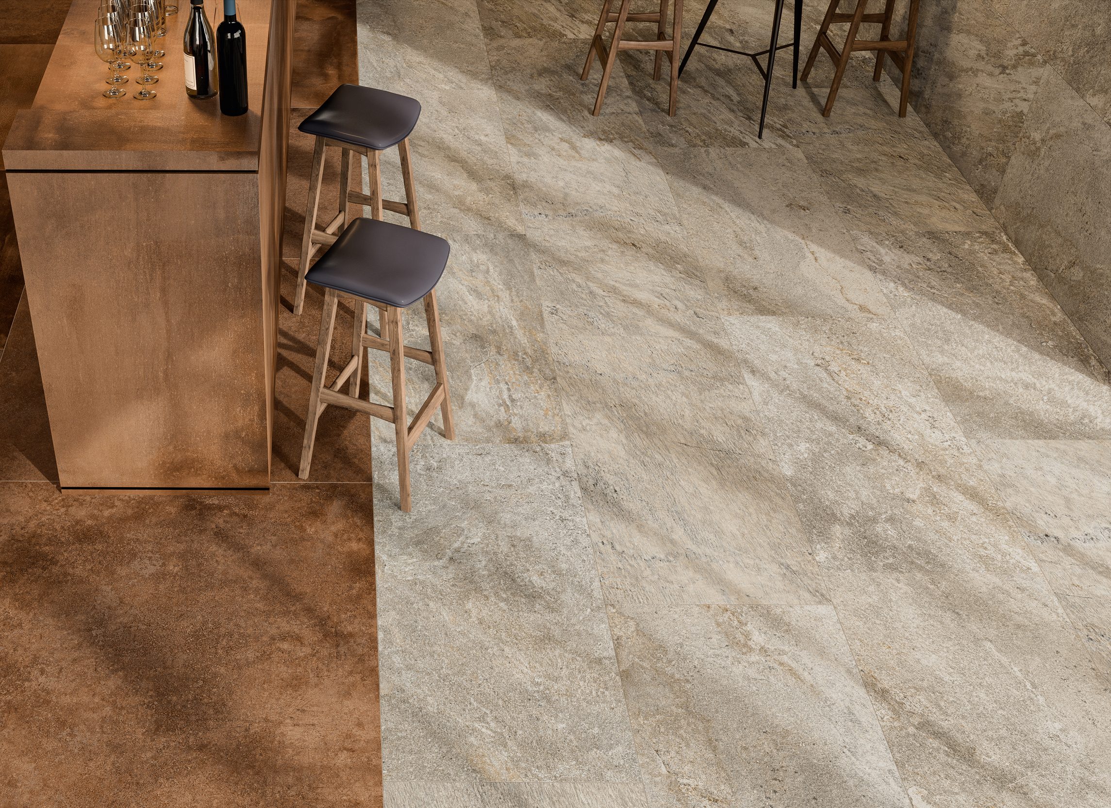The collection has a distinctive, realistic stone look featuring detailed graphics and a rich array of colours. Appealing hues with reddish and orange shades that immediately recall the look of rust. A refined finish for interior designs and contract work with a contemporary style.