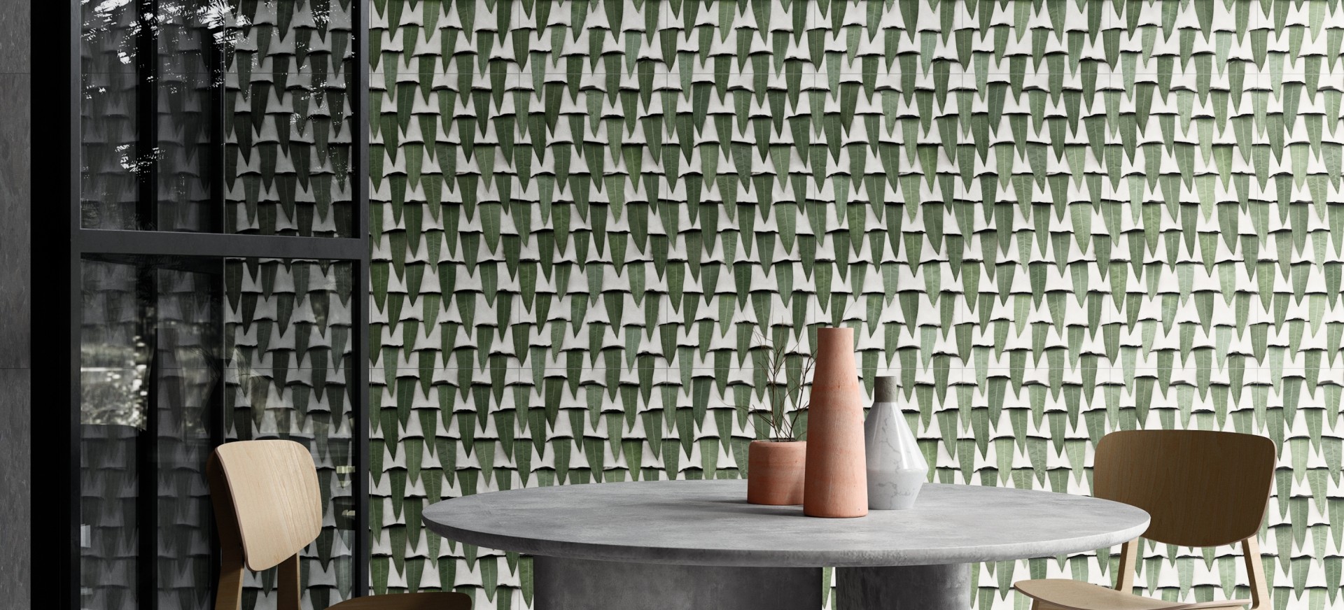 There’s a choice of different patterns, all available in 500x1000mm. At just 3.5mm thick, these tiles are reinforced with a sheet of fibreglass and are for wall application only.