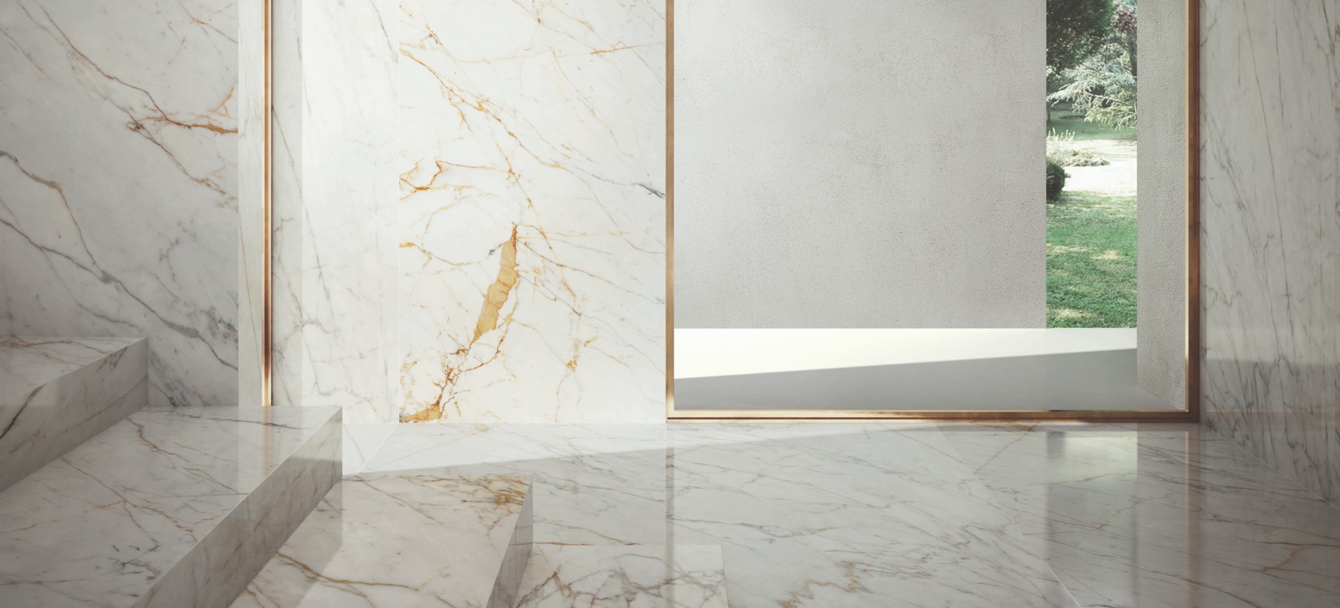 The Parlato collection combines the elegance of 7 marbles translated into stoneware: glossy and matt surfaces combined with an irresistible contemporary appeal accentuated by the size of the slabs, including the new 6mm-thick 1600x3200mm.