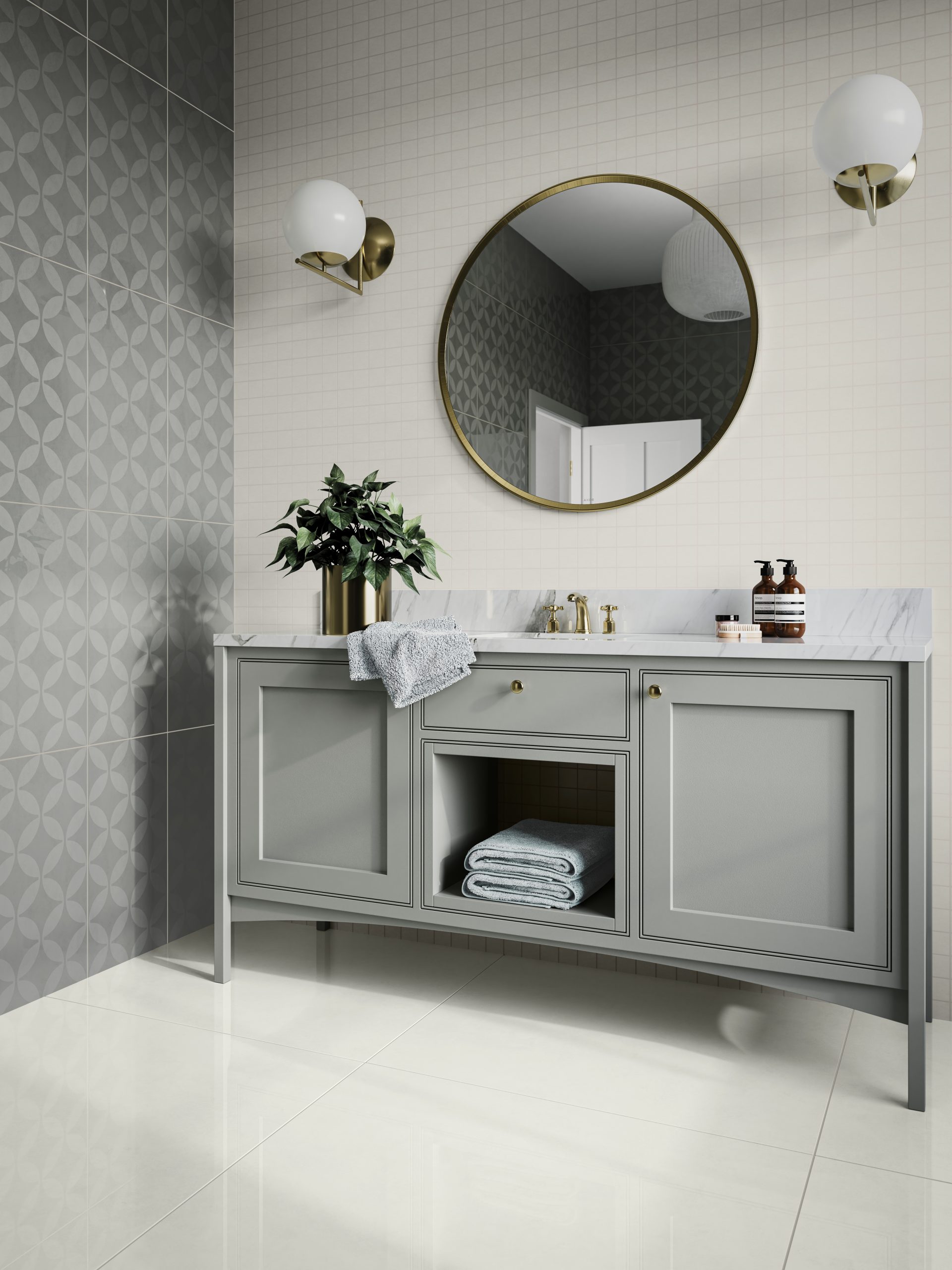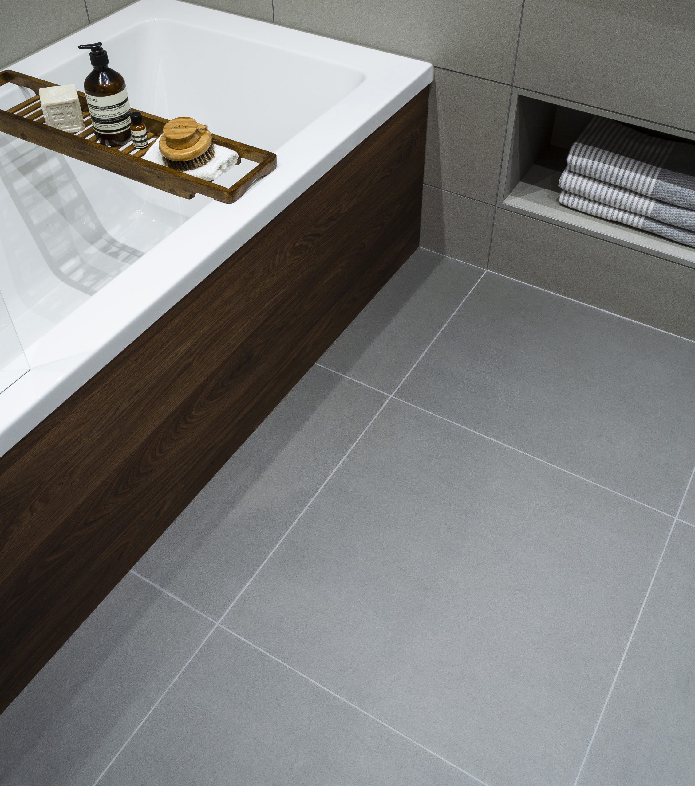 Vanilla, Grey and Ash is stocked in polished and matt in the formats 300×600, 600×600 and 900×900.