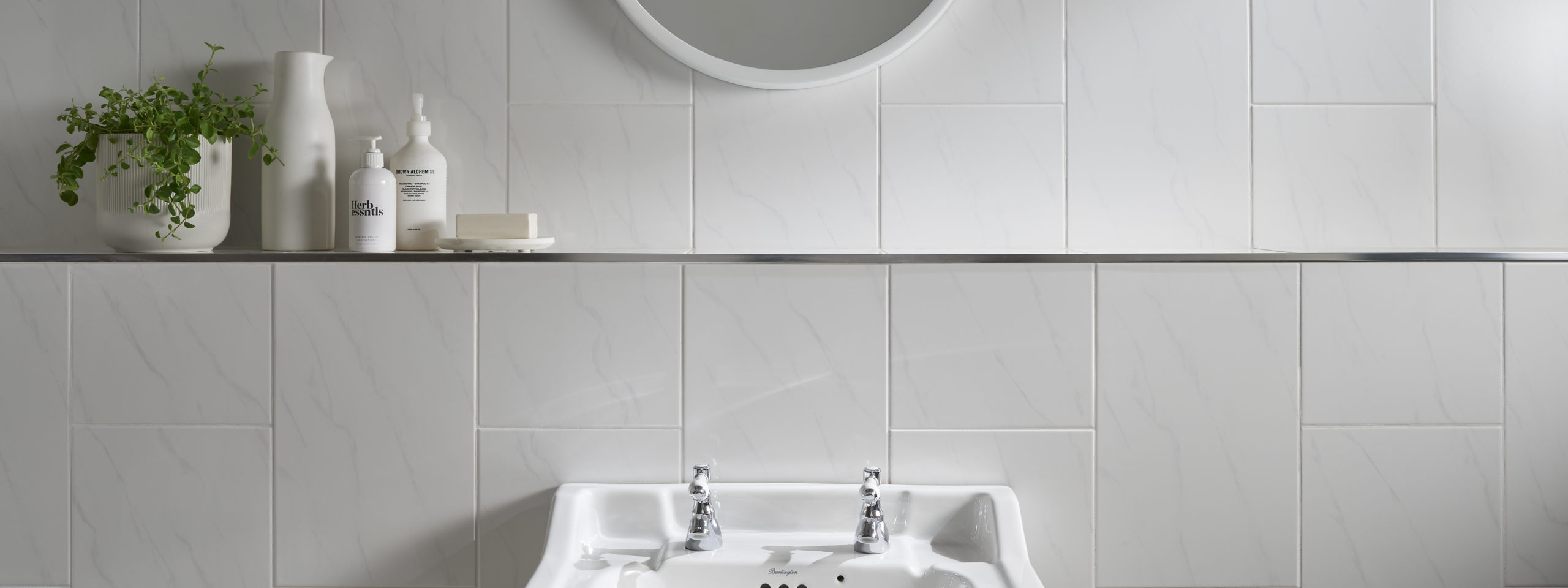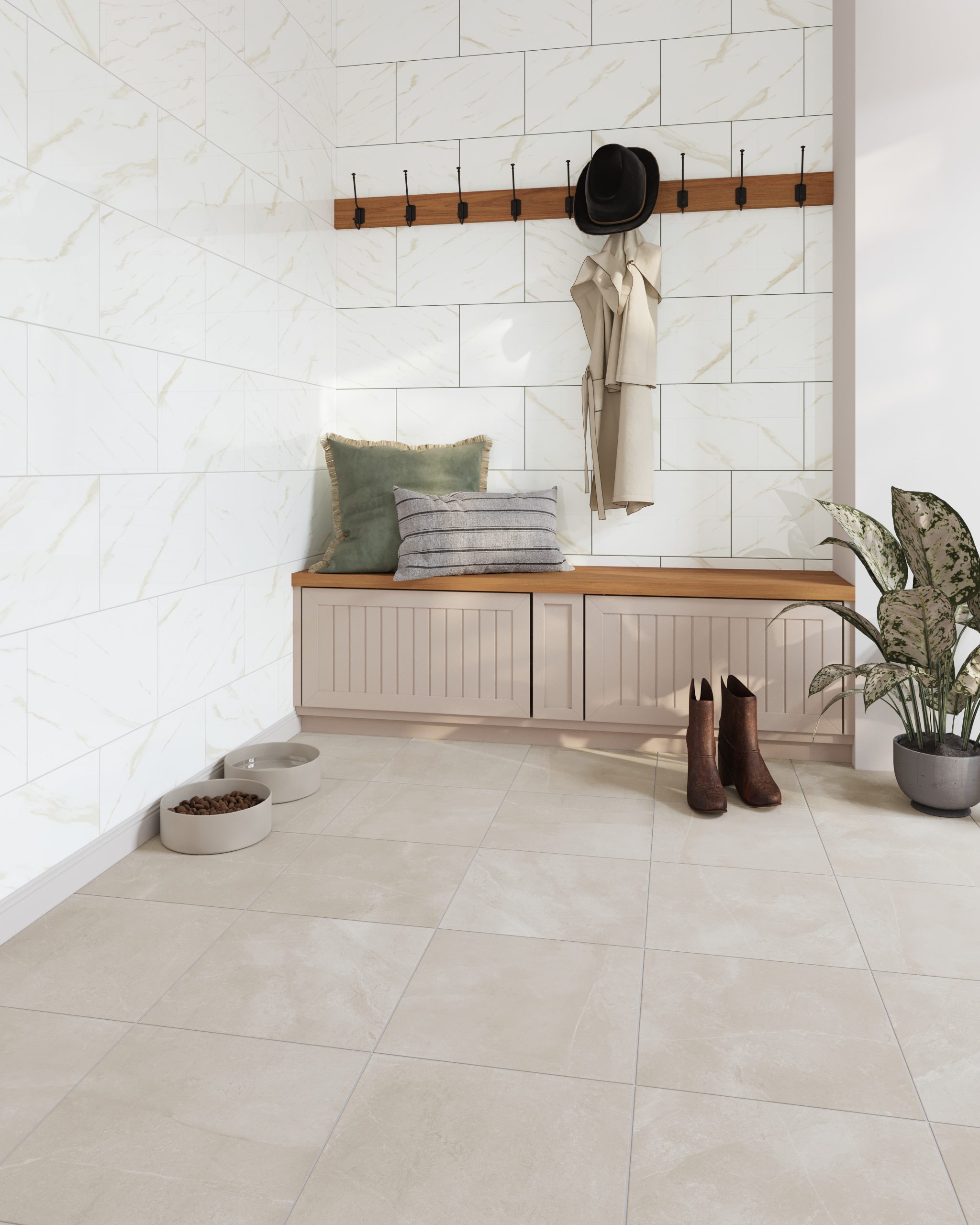 Delicate veins lend a sense of depth to this medium sized tile range. With calming colours and a gloss finish, Roma will reflect light around a room.