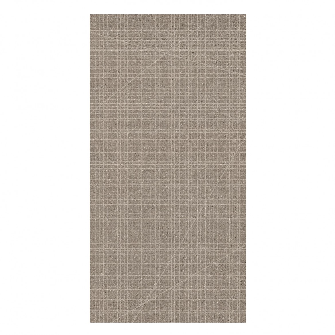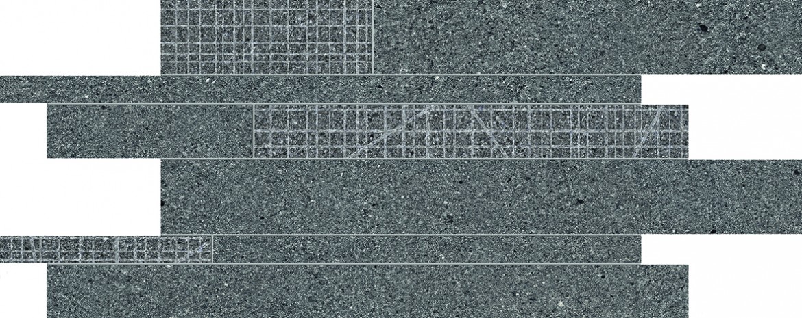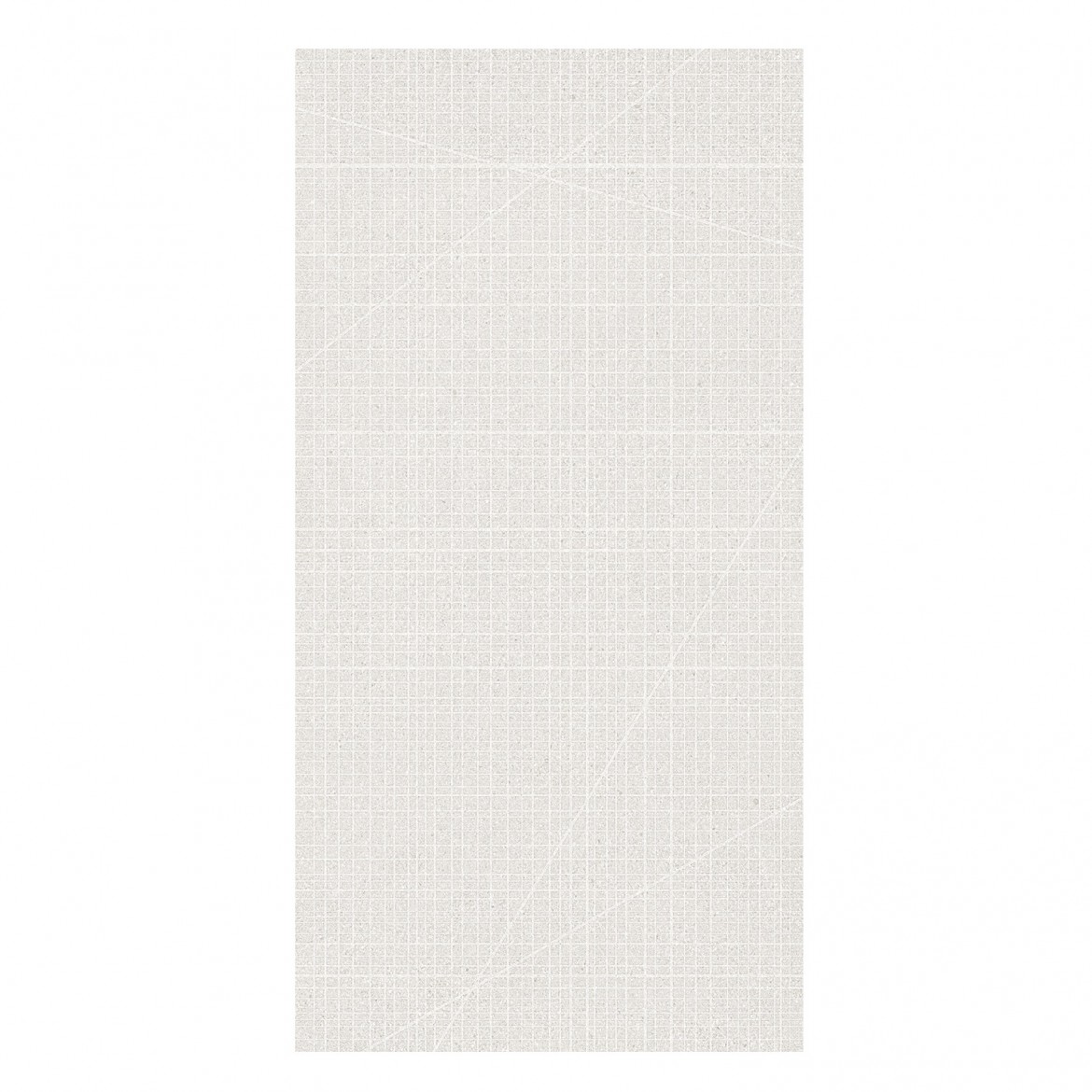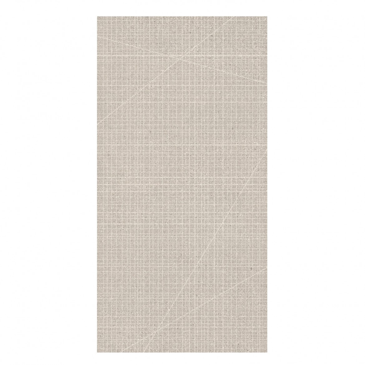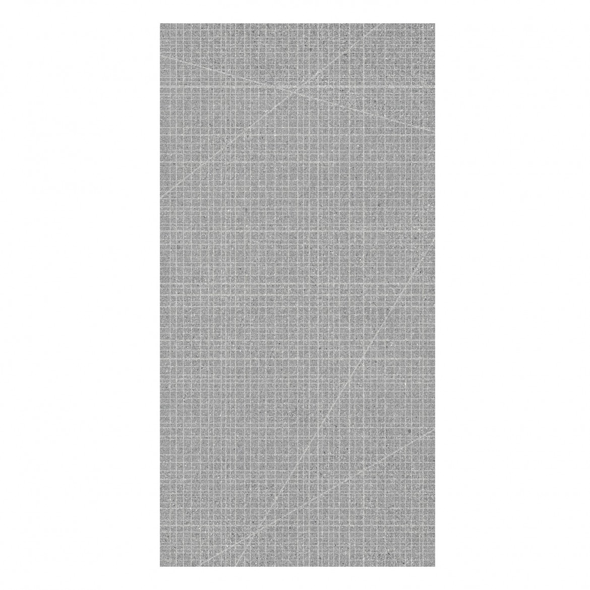 Also available is the Cage décor measuring 600x1200mm with a regular pattern of vertical and horizontal lines interrupted by diagonal slashes.
