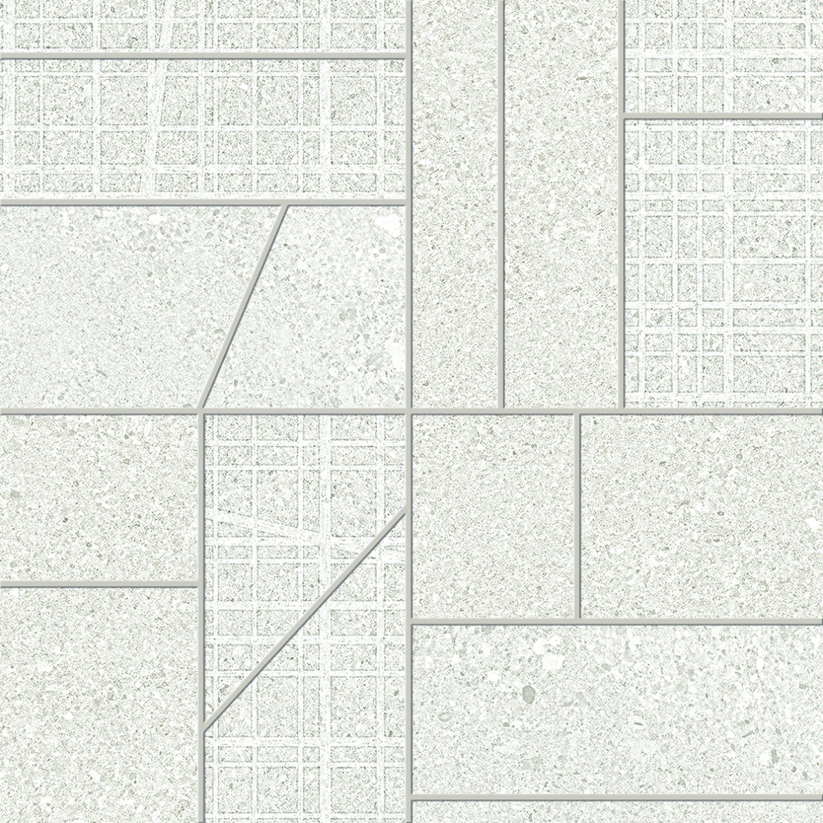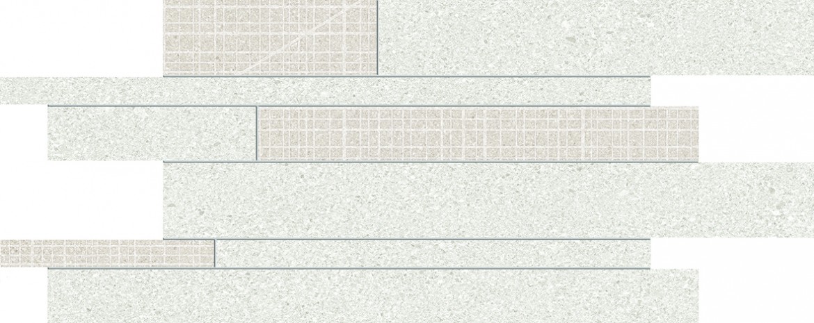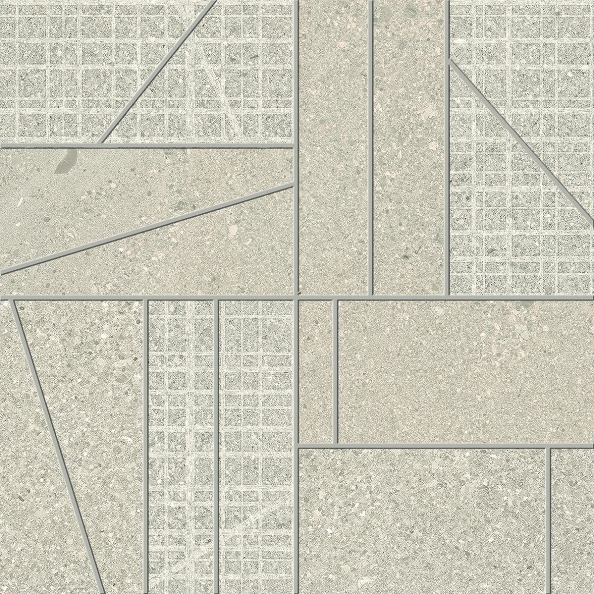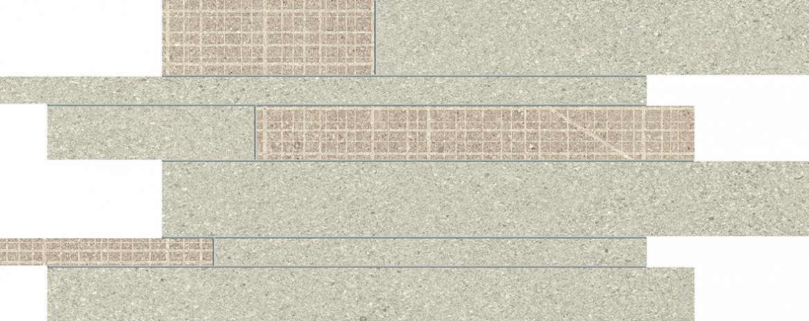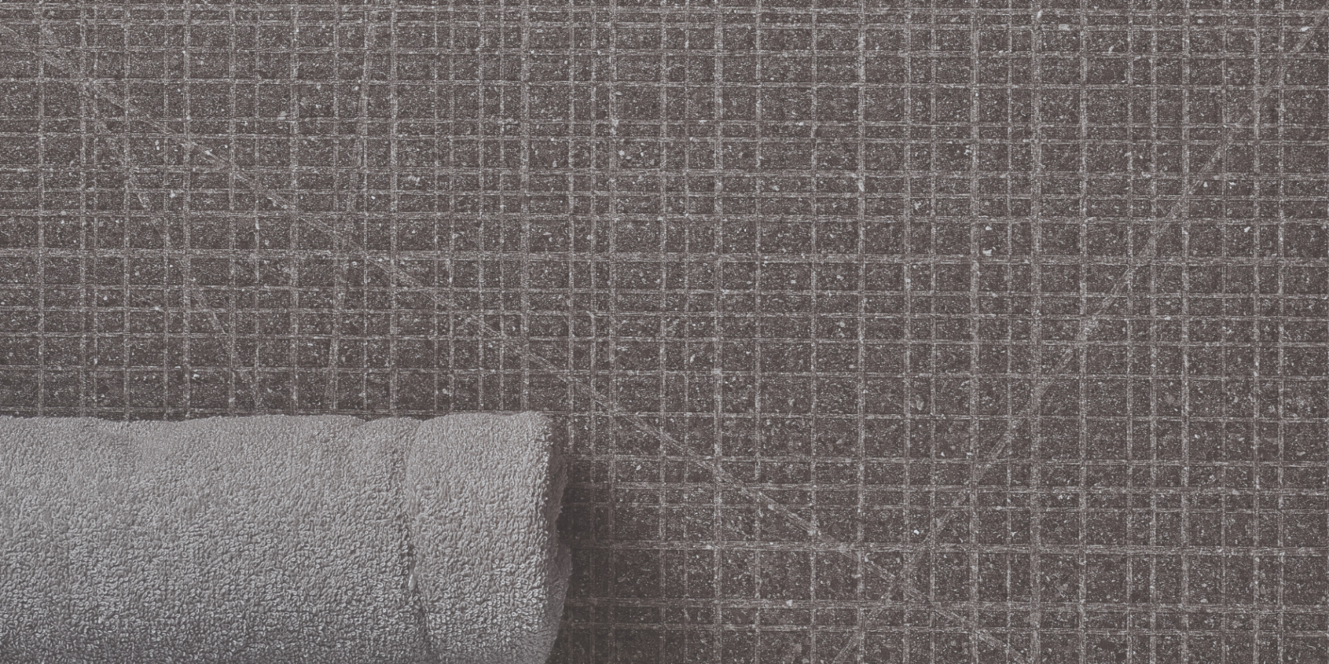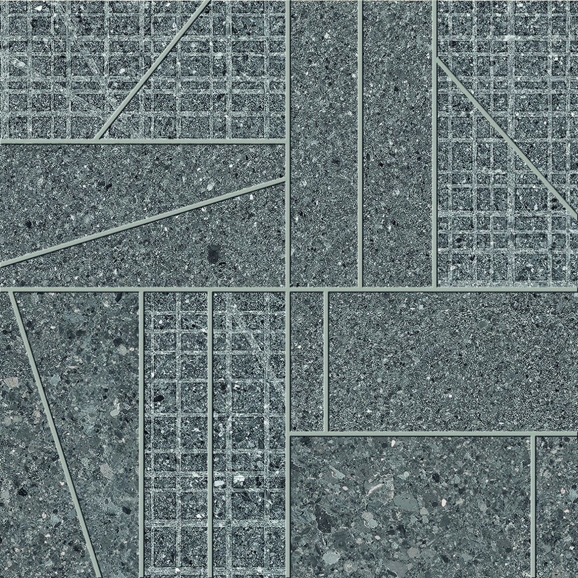 Also available is the Cage décor measuring 600x1200mm with a regular pattern of vertical and horizontal lines interrupted by diagonal slashes.