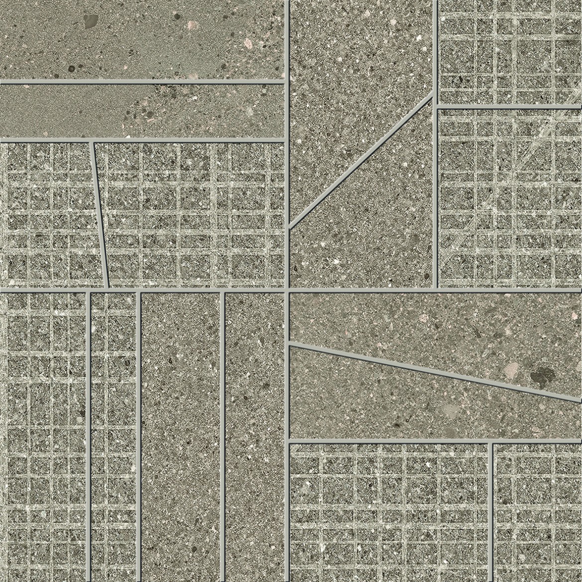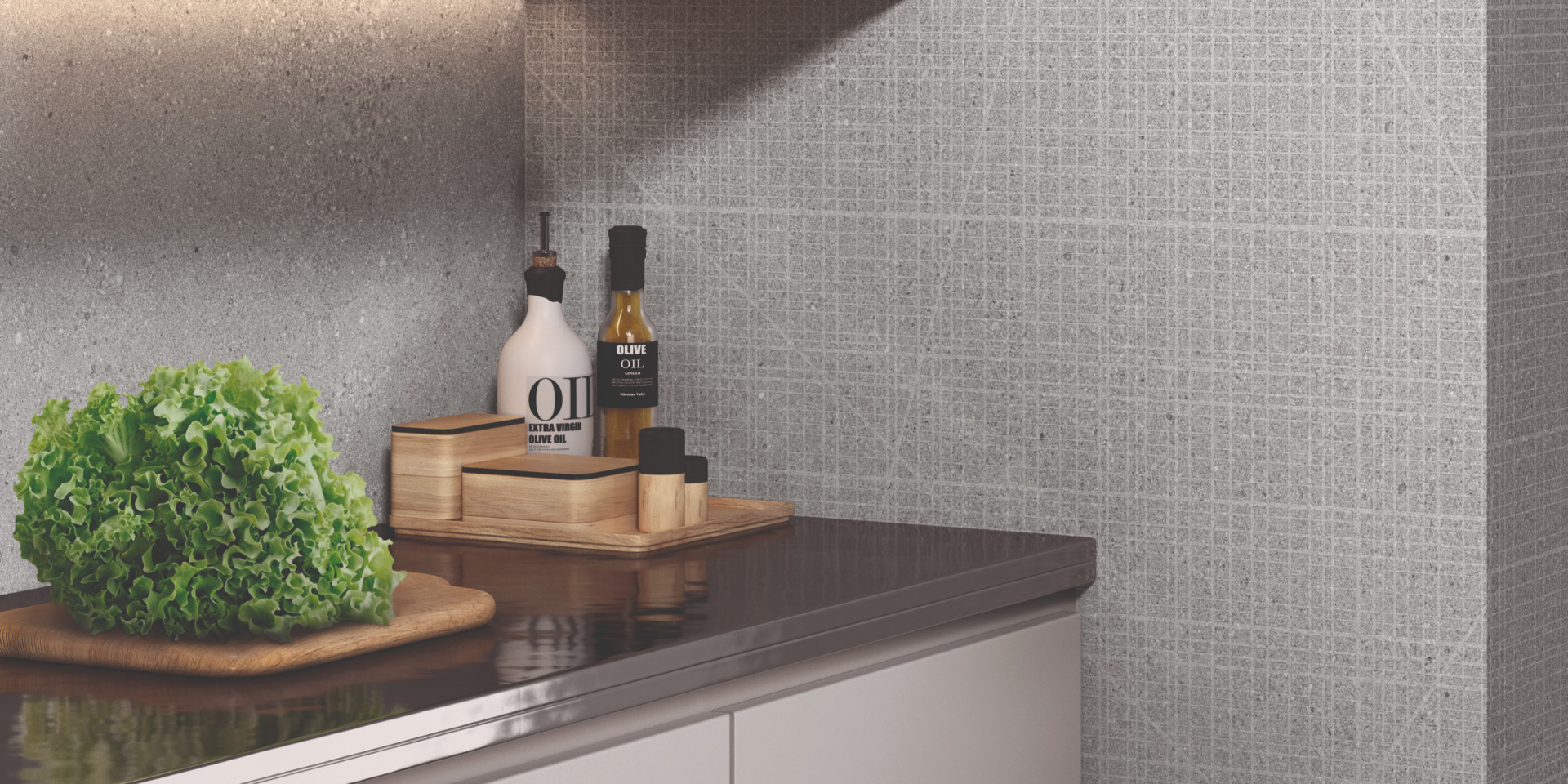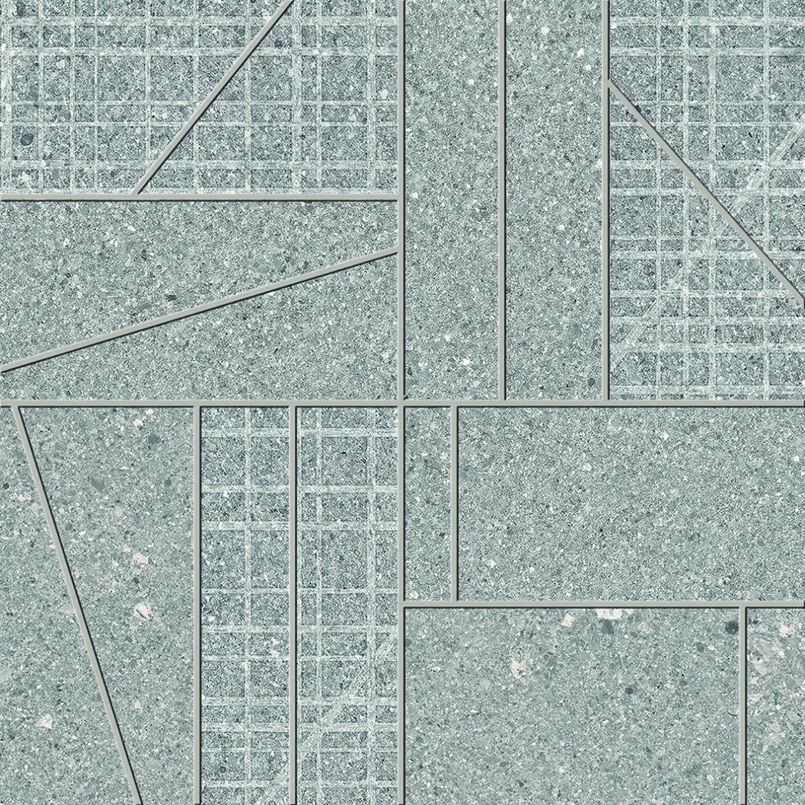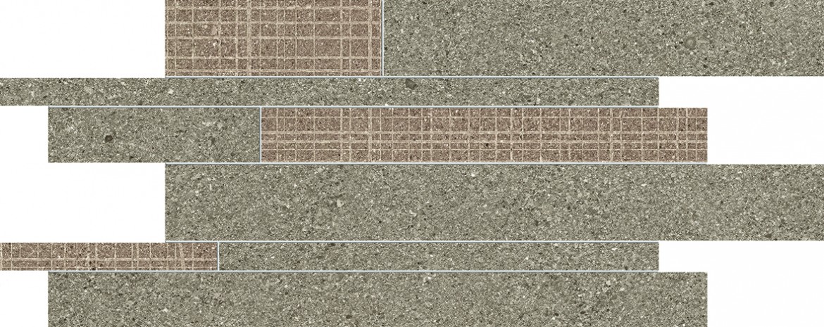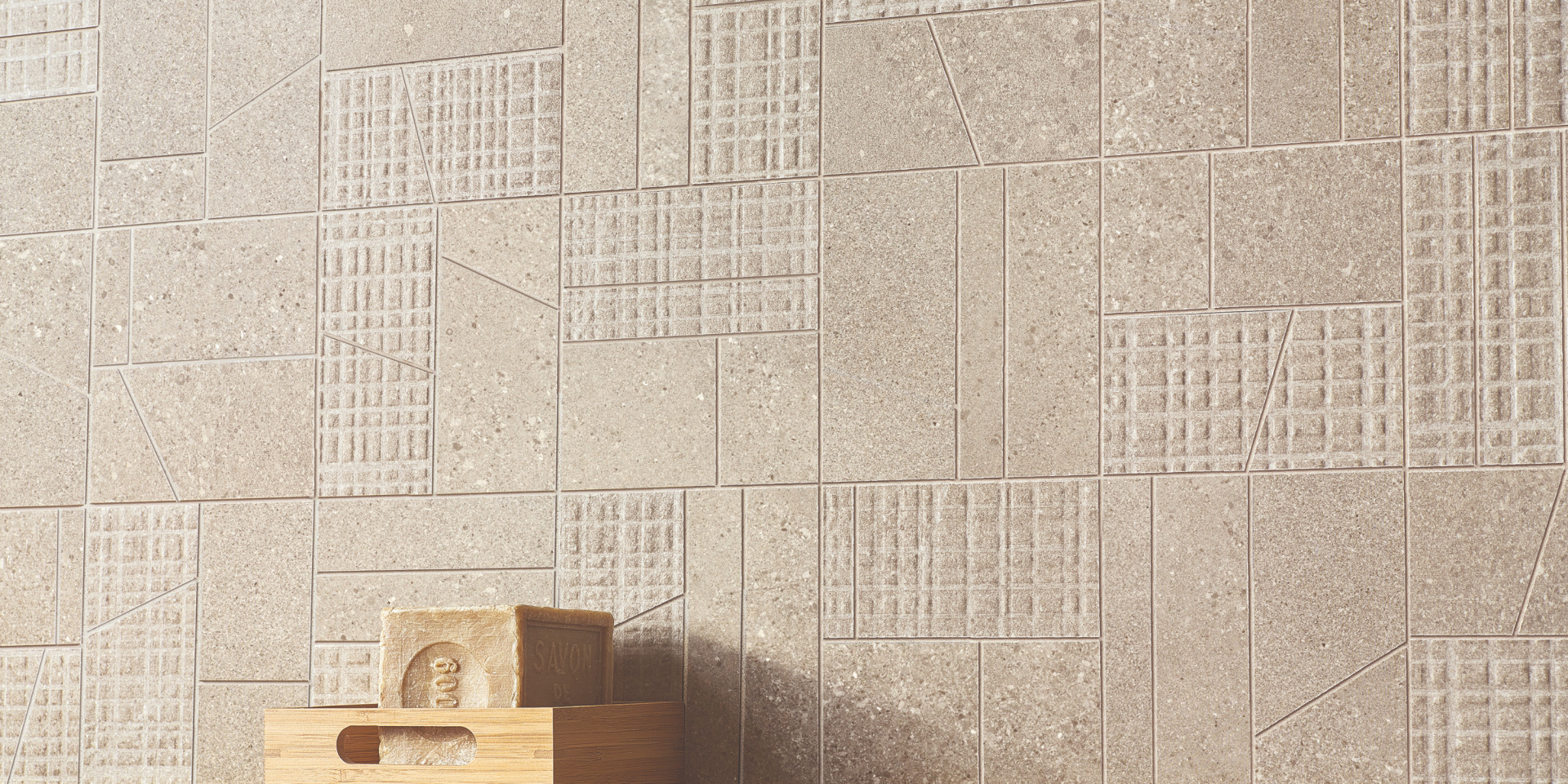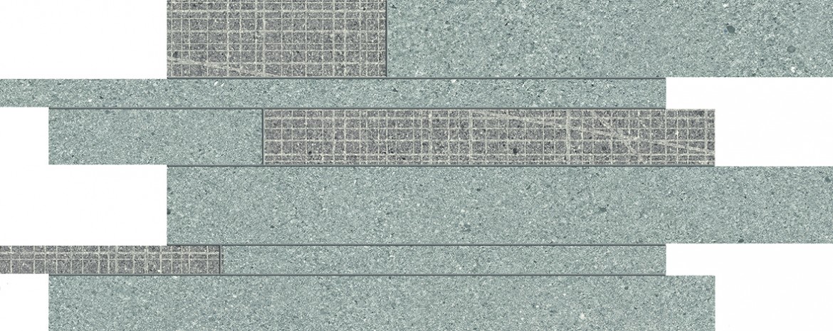 Also available is the Cage décor measuring 600x1200mm with a regular pattern of vertical and horizontal lines interrupted by diagonal slashes.