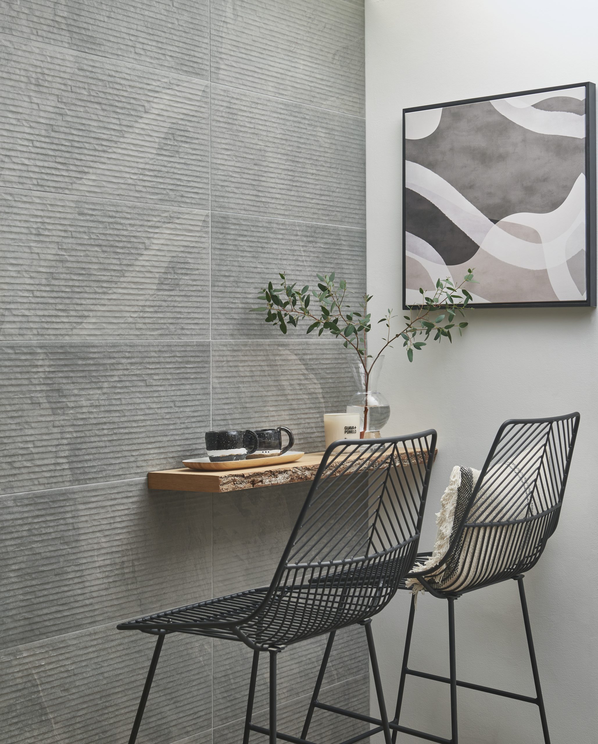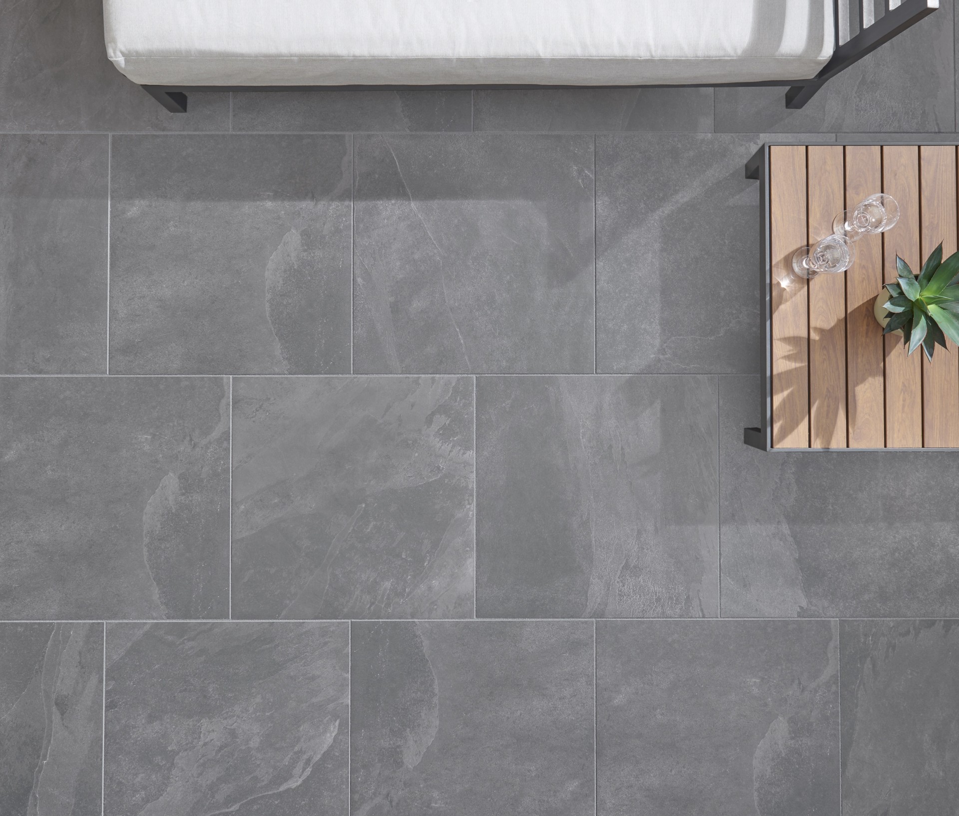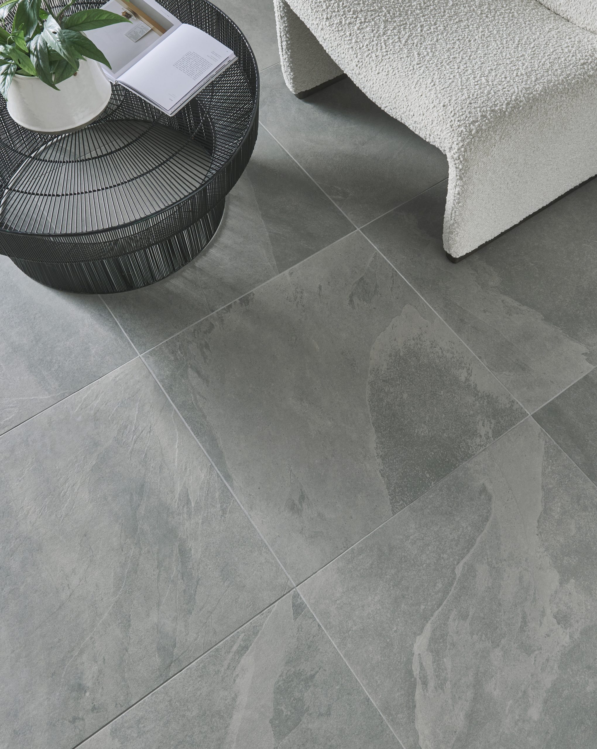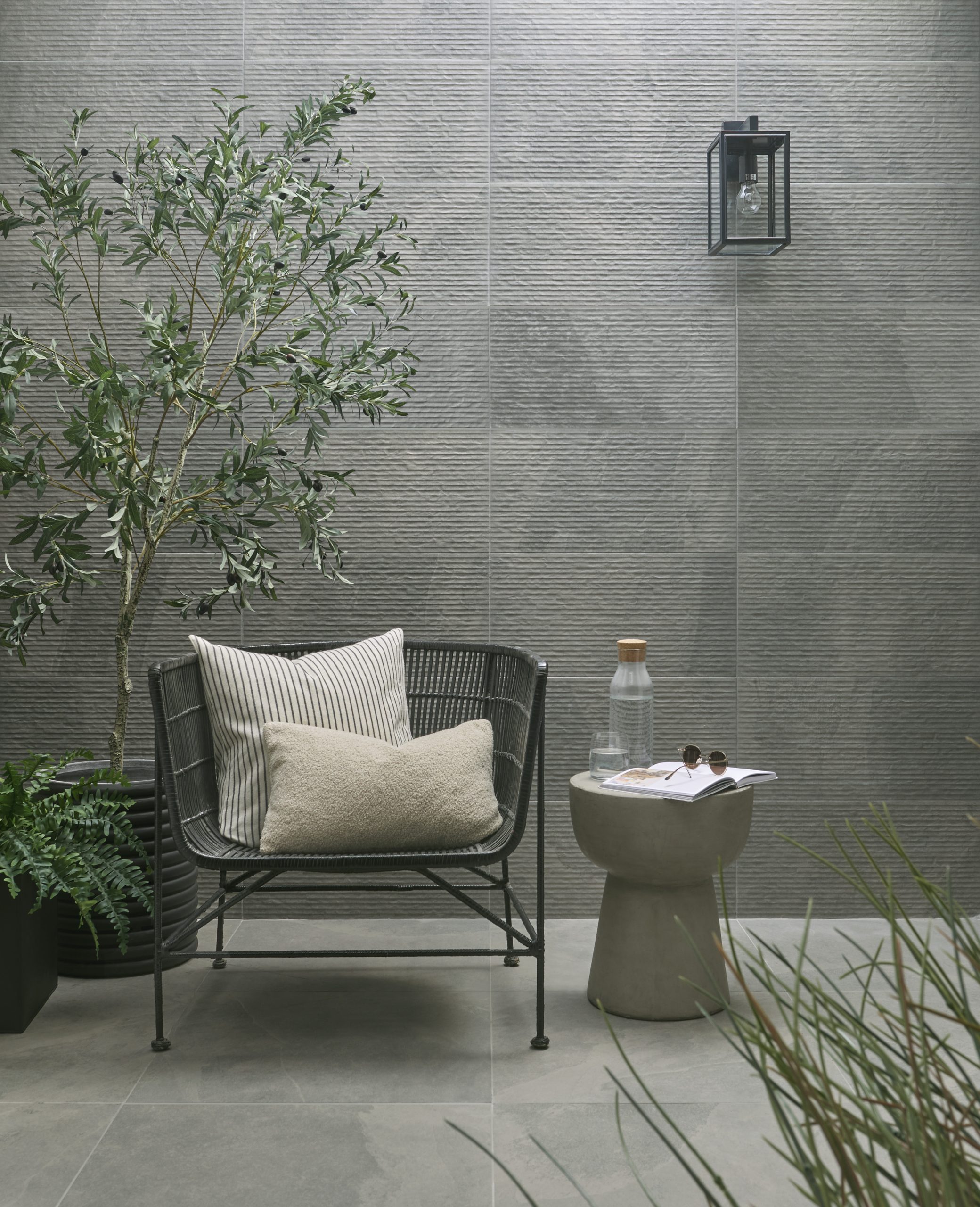 The Enis range mixes the classic texture of slate with a modern colour palette to revamp indoor and outdoor spaces. The rustic nature of the slate effect pairs perfectly with soft greenery. In the range is a 9mm indoor tile, 20mm outdoor tile and a NEW décor wall tile to create seamless indoor/outdoor living.
