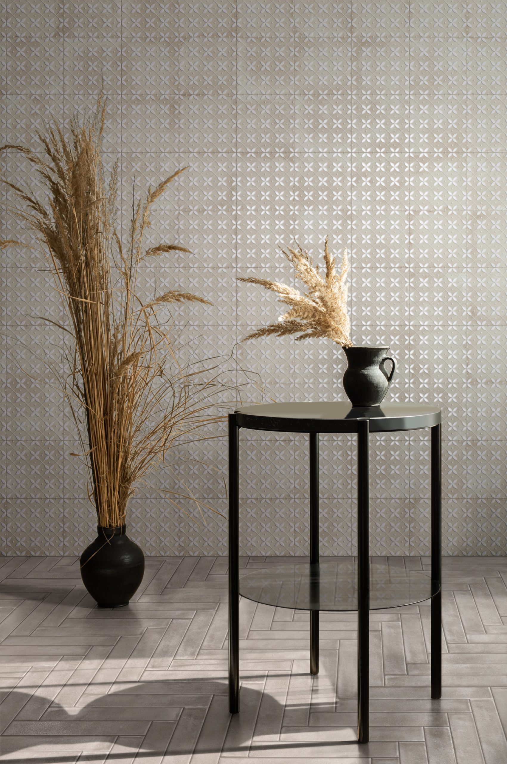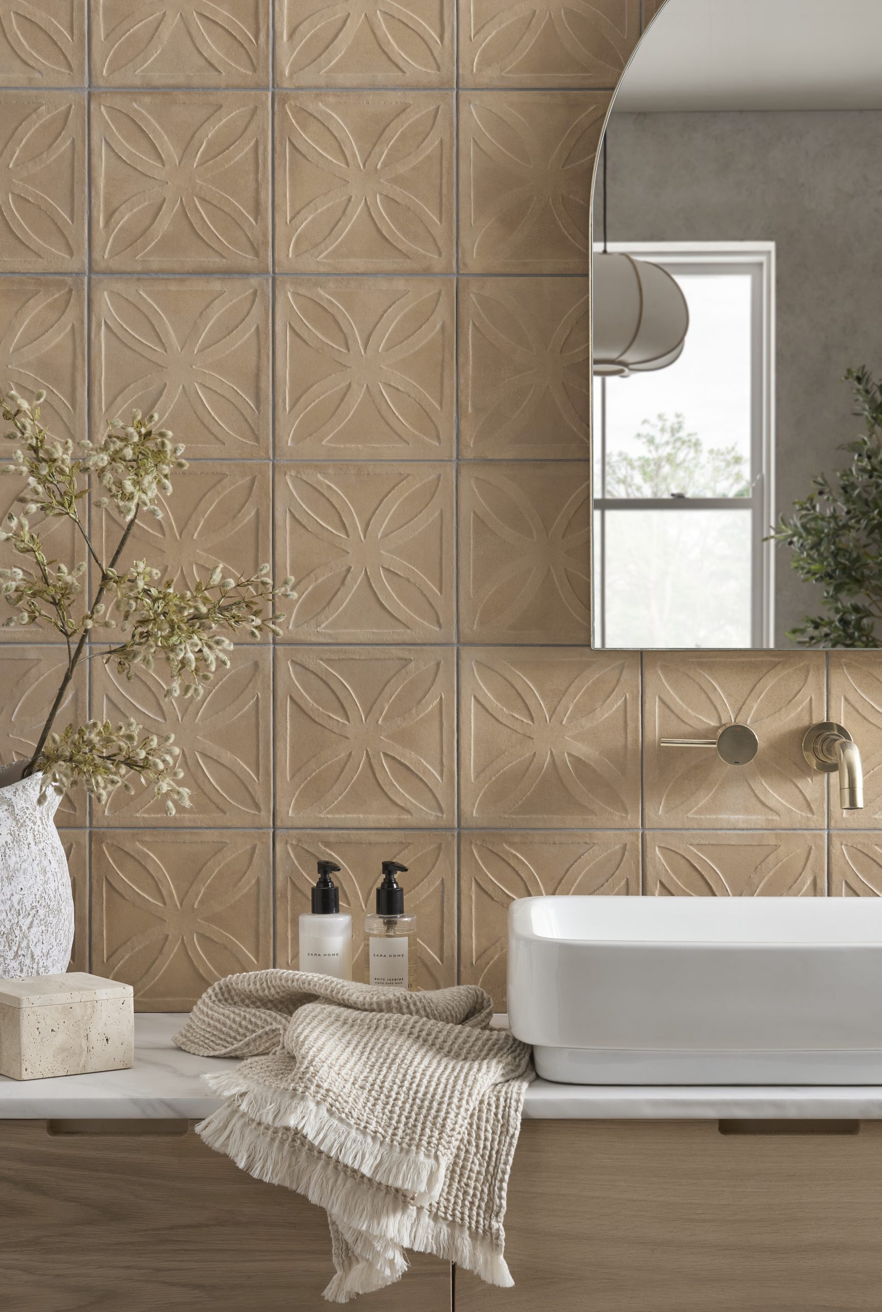 Tradition and contemporaneity are balanced in a colour palette of earthy tones – Cotto and Biscott – and more neutral tones – Avorio and Grey.