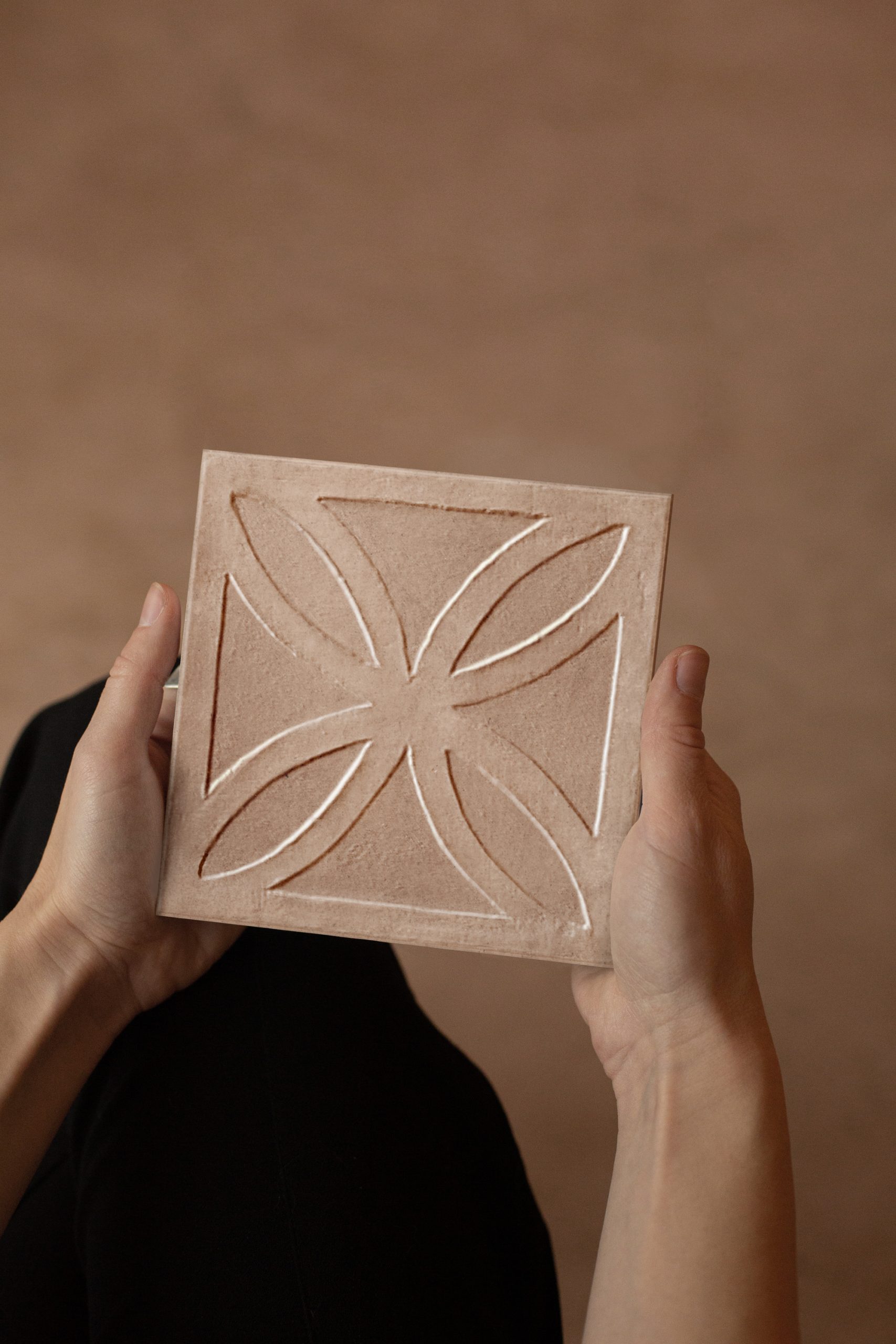 Tuscany is inspired by handmade terracotta, with marked edges and light clouds on the surface.