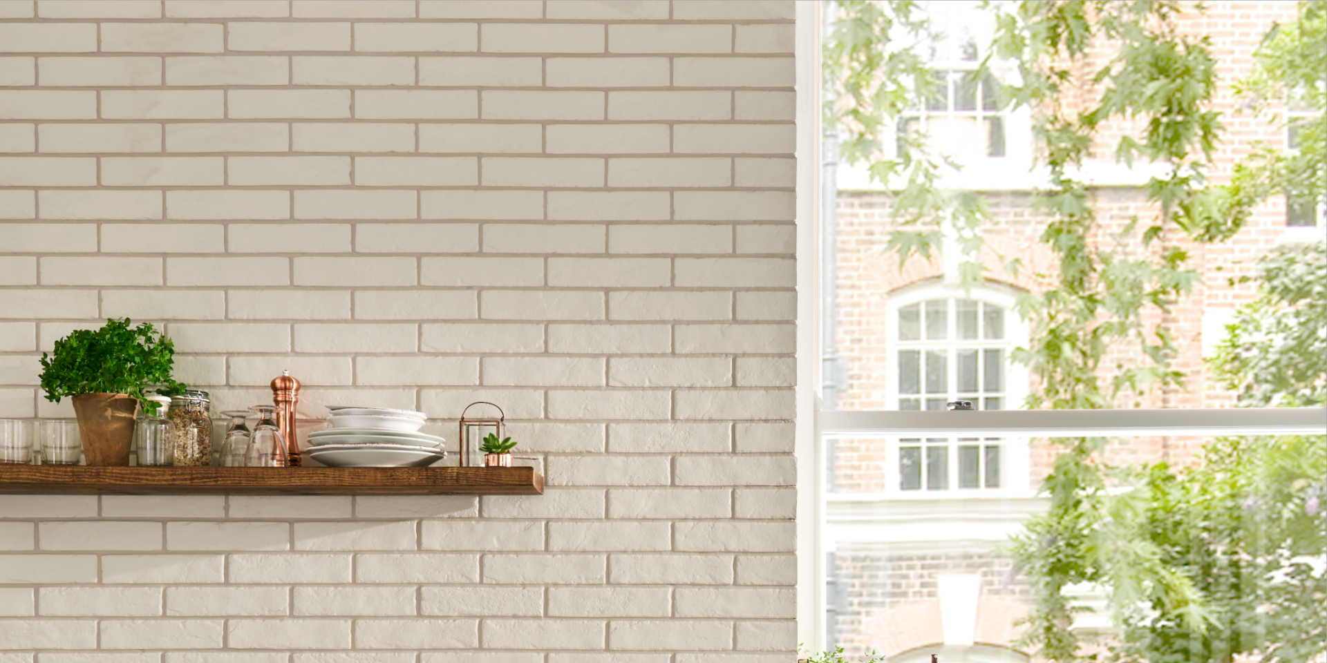 Our brick effect tiles are utilitarian cool. Mix it up with a choice of different shades for an eclectic take on refined industrial.