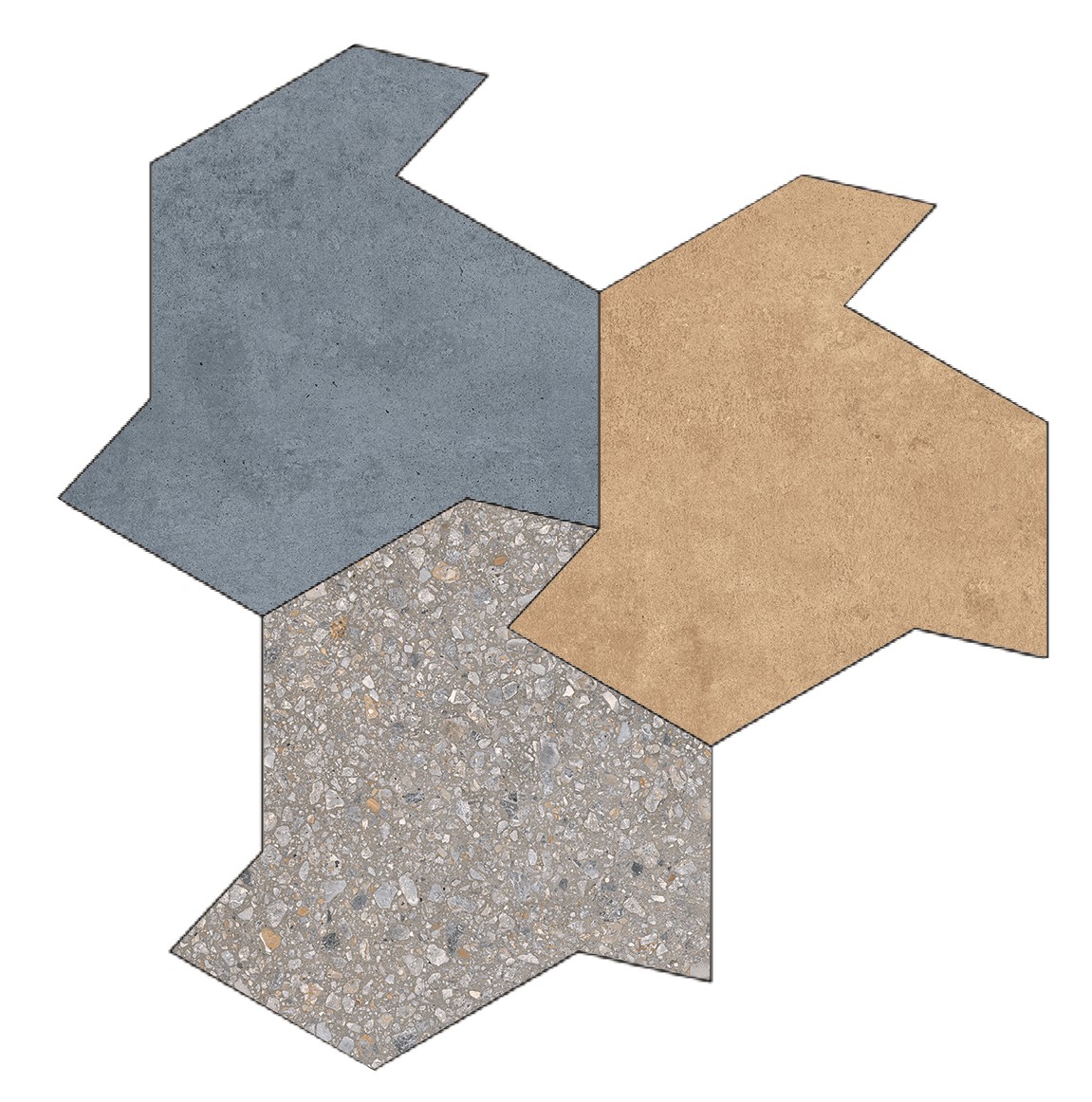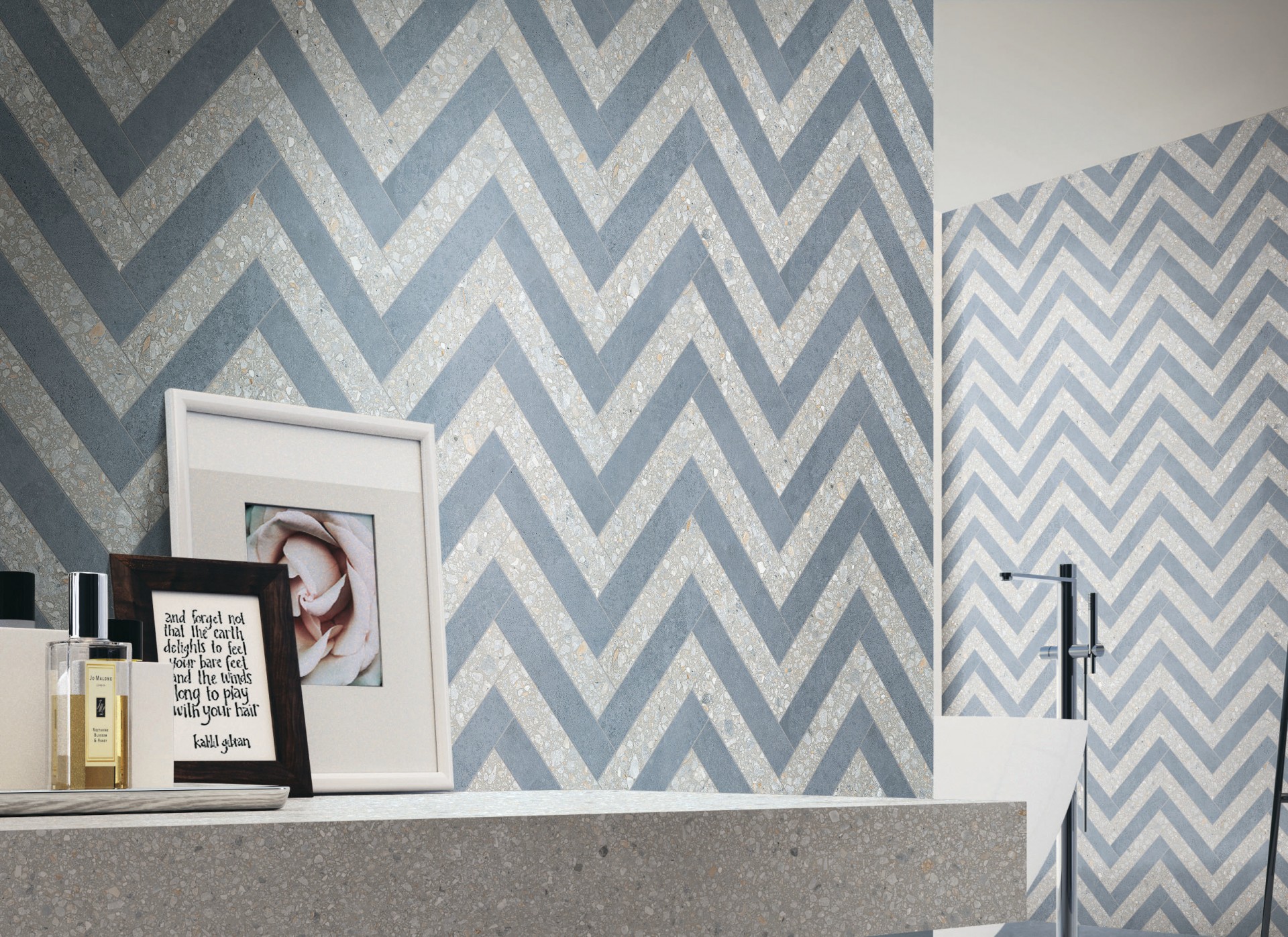 The union of two different materials has resulted in a contemporary, trendy project that mixes surfaces, colours and languages to offer original combinations. Urbancrete features an interplay of different contrasts through tactile patchwork suited to a balanced mix and match of styles and colours. There are two basic surfaces that can be used to create multiple combinations: a concrete effect with an urban and industrial aesthetic and an original marble agglomerate effect that blends tone-on-tone tactile elements with irregular shapes and varying sizes.