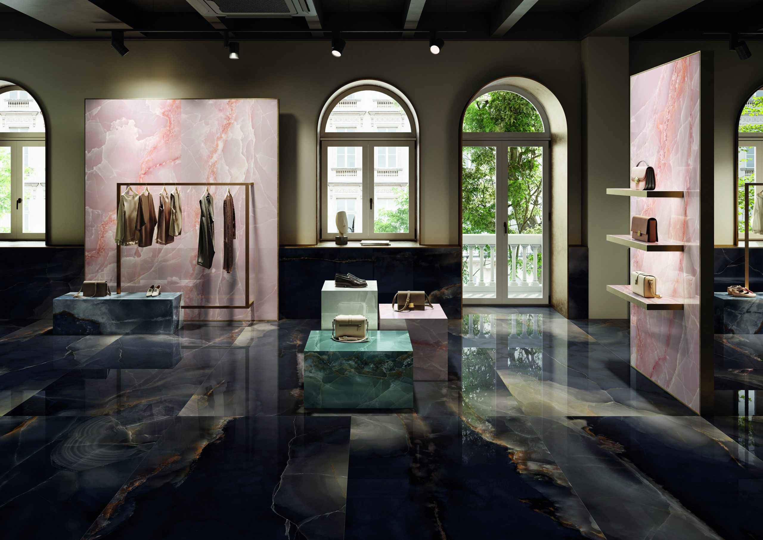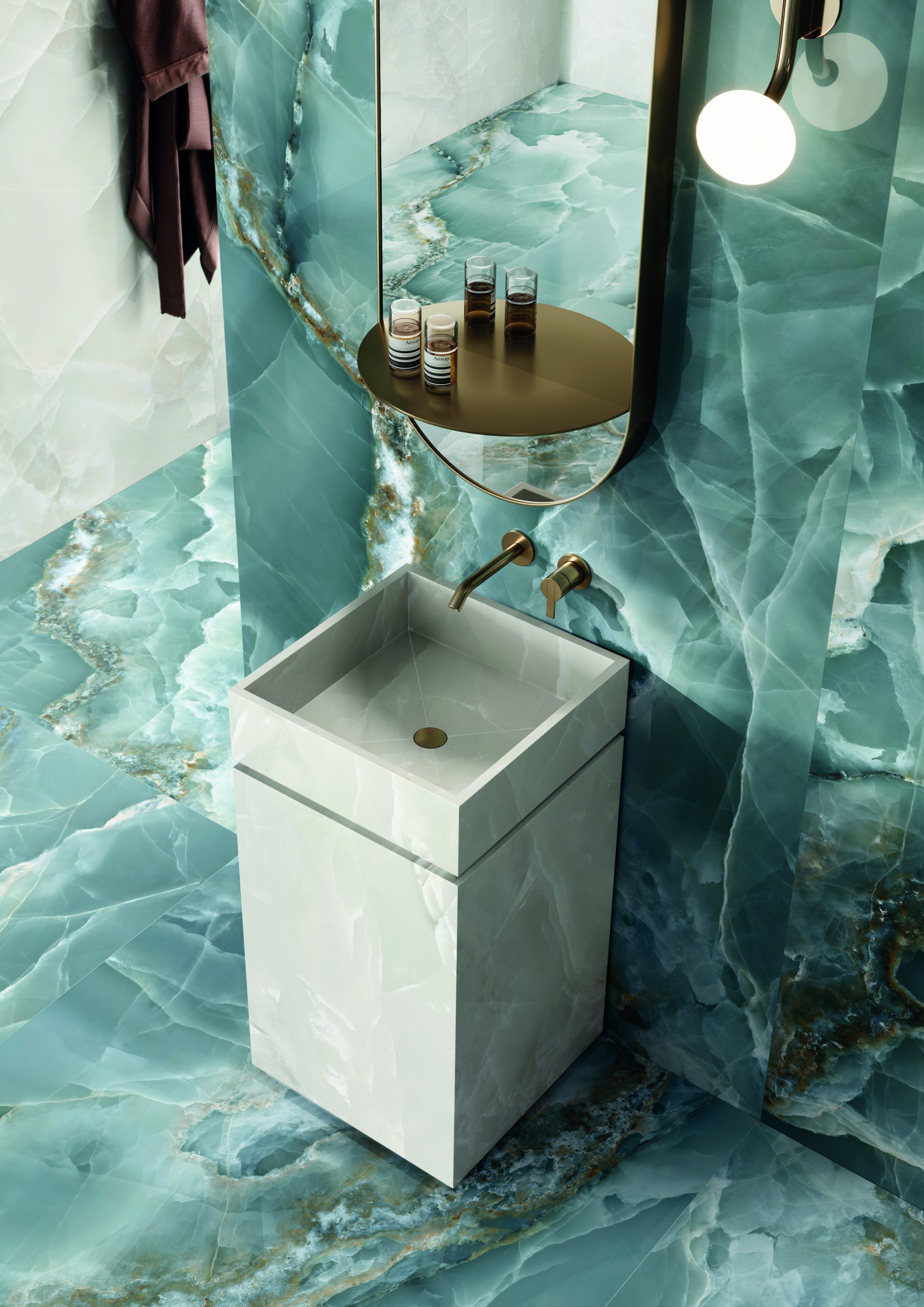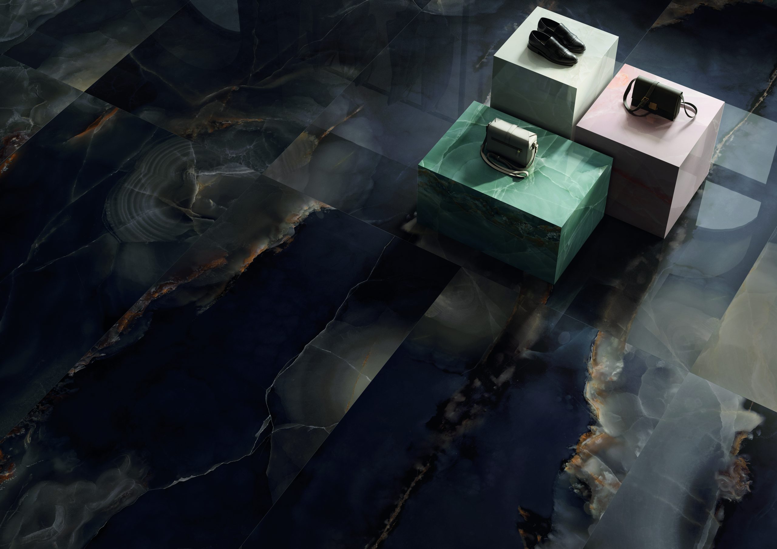 Venice celebrates the beauty of onyx; it’s intriguing translucent quality, the rich, contrasting transparent layers and the infinite shifts in tone.