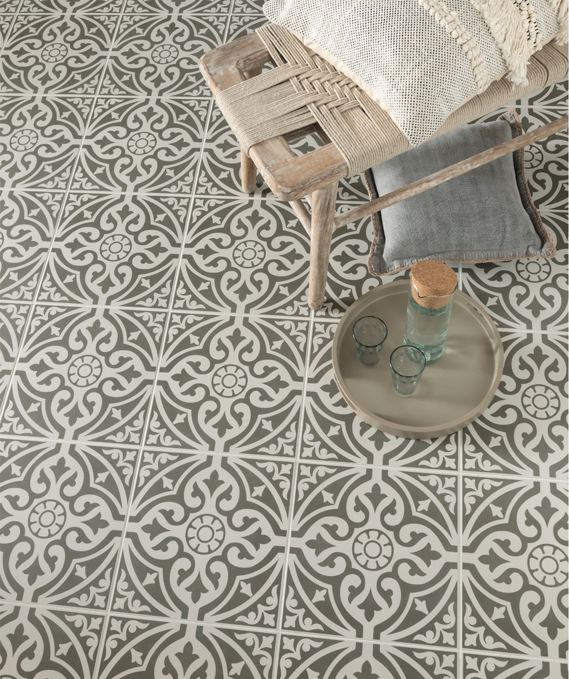 A design classic, this stunning floral inspired tile mixes classic Victoriana with a contemporary cool toned colour palette.