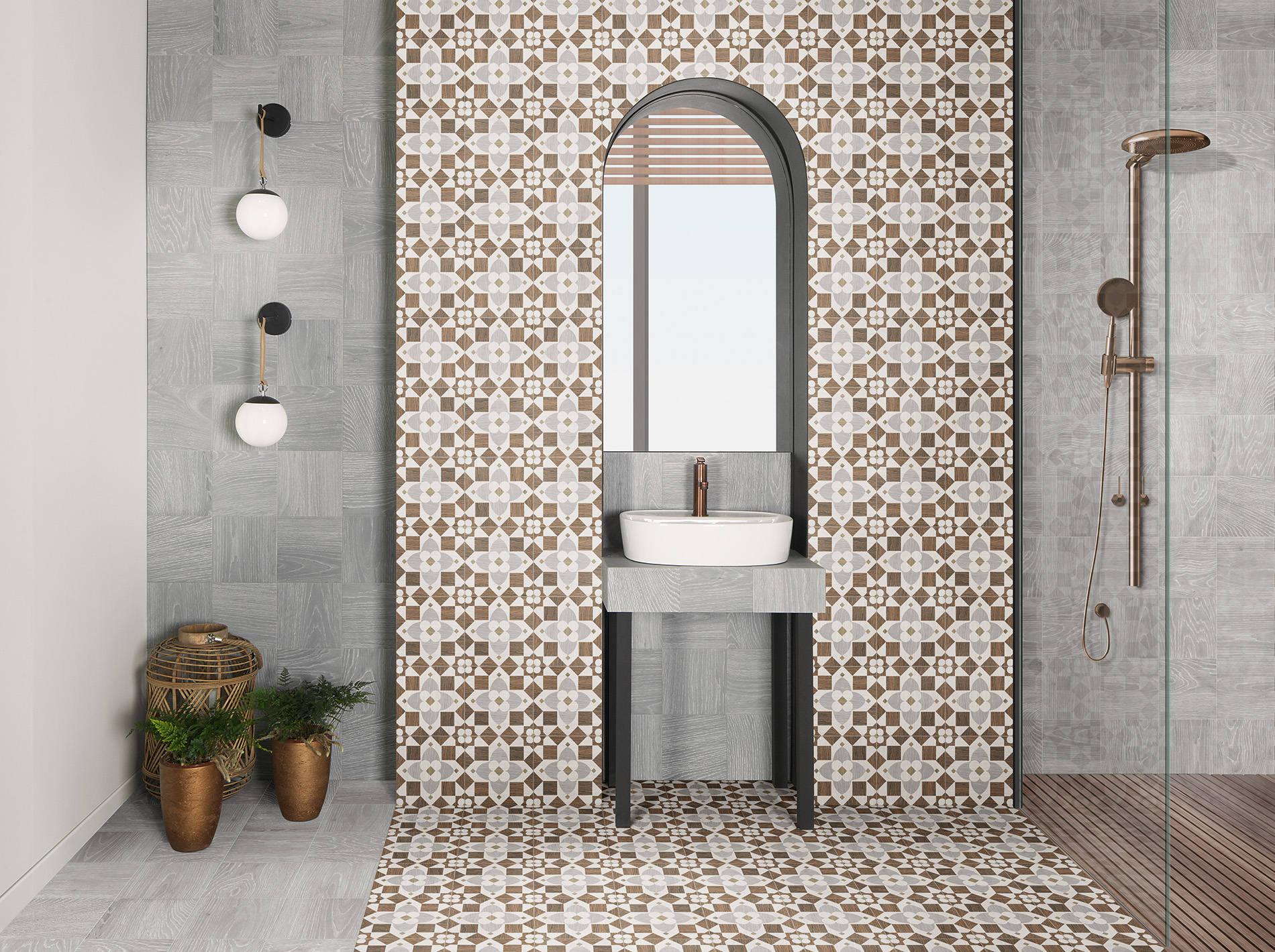 Woodcraft’s classic parquet look brings a smart finish to commercial interiors. In a range of warm and neutral natural tones, this porcelain floor and wall tile’s authentic wood block pattern is instantly familiar yet unusual, making a stand-out feature. Authenticity is heightened with a matt finish and variation. Rated 36+ PTV and suitable for outdoor use, Woodcraft comes in a versatile 200x200mm format.