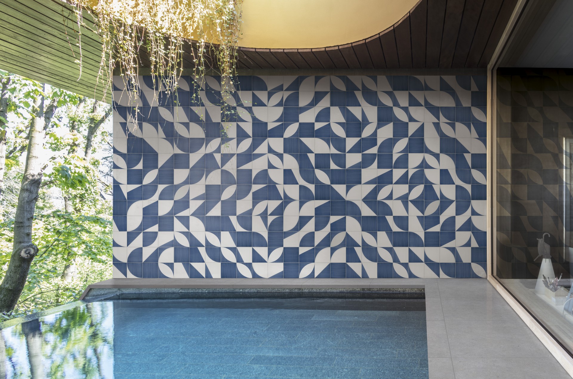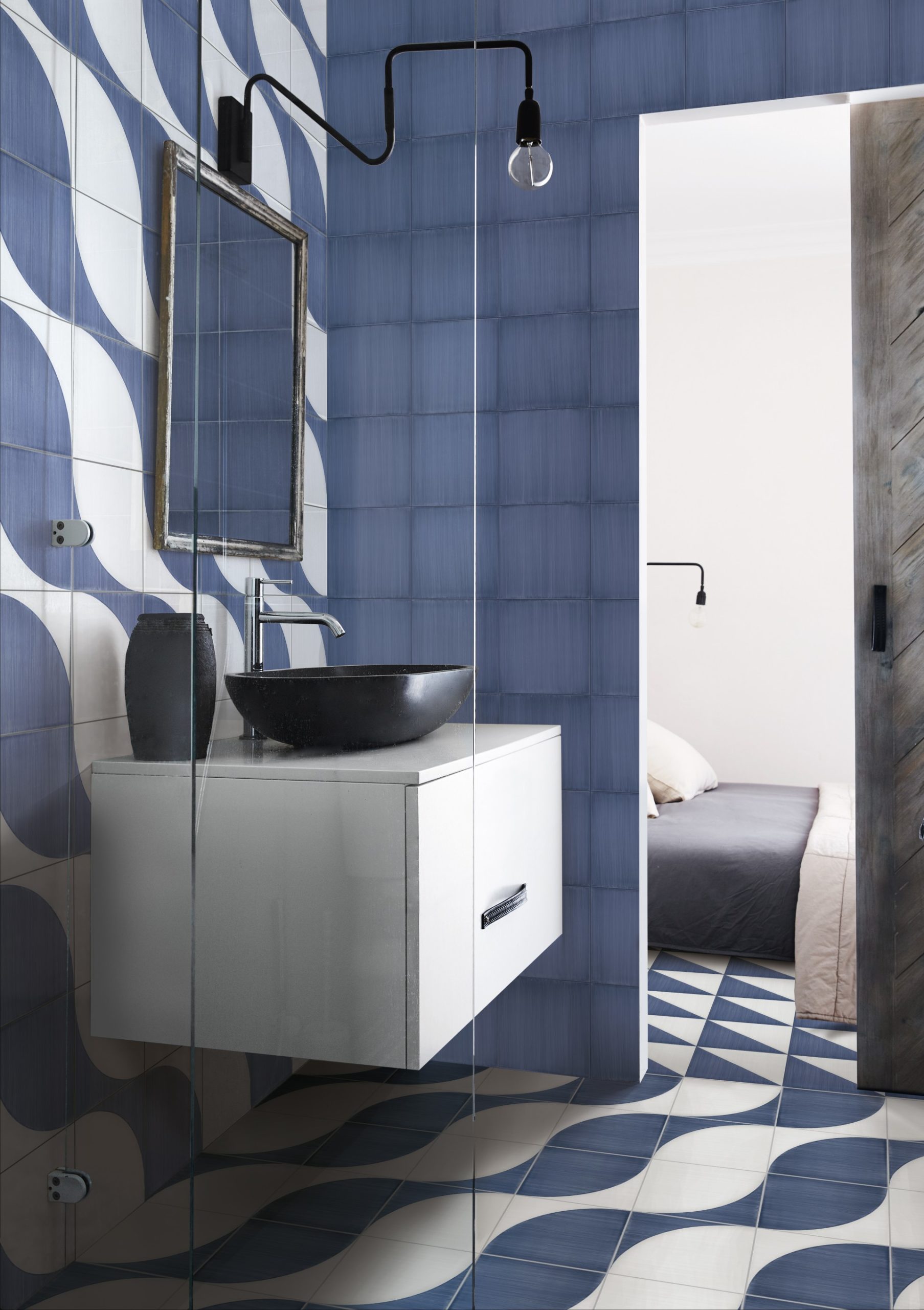YVE evokes a historic collection. A semi-matt surface in 3 colours – Bianco, Nero and Blu, and tone on tone brush-strokes rediscover the beauty of the majolica tiles typical of Mediterranean architecture.