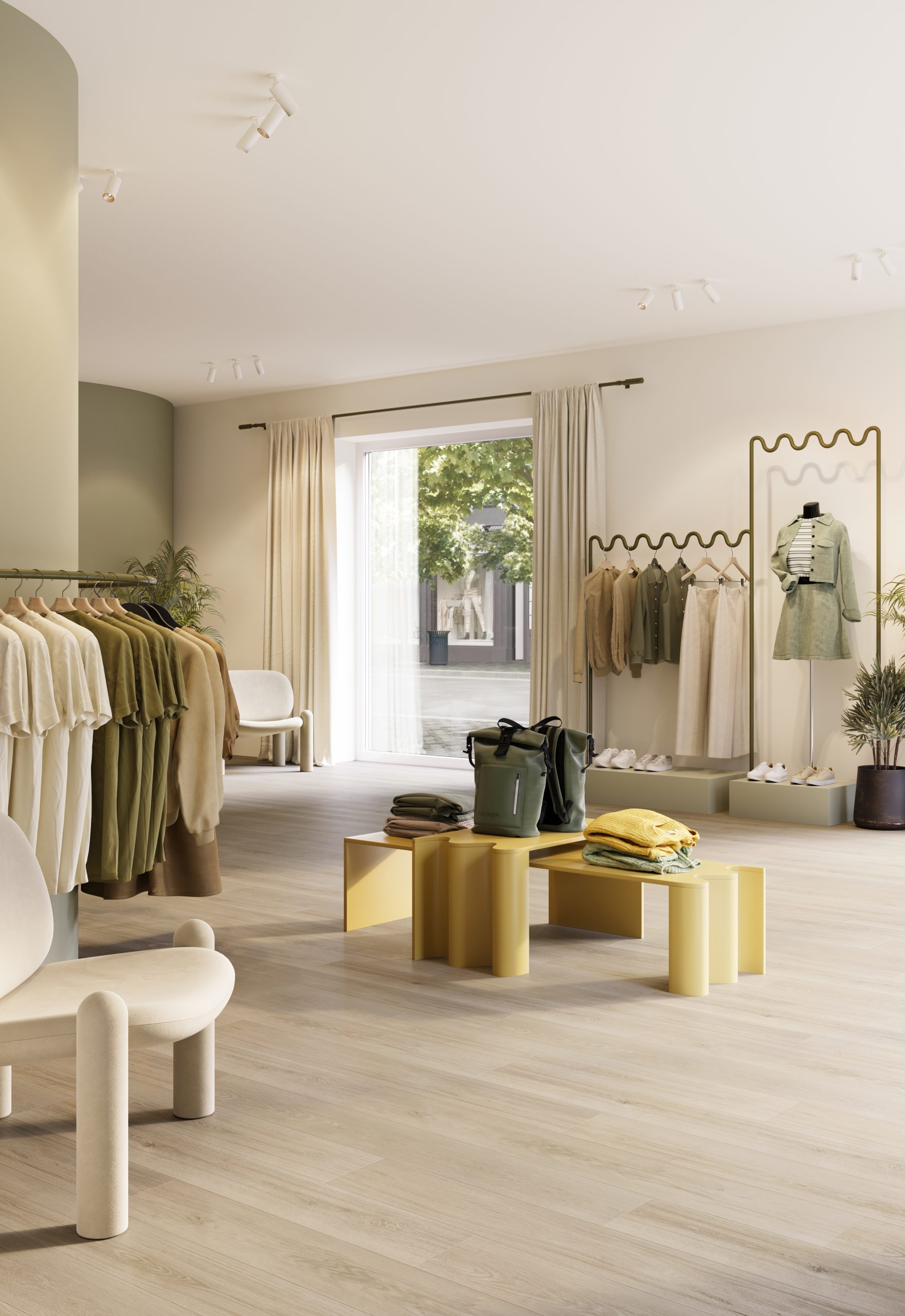 Zenn 55 has a 0.55mm wear layer for intensive commercial use and is available in both rigid click (5G) with integrated underlay, or glue-down. Glue-down is ideal if you want the floor to be extremely stable, whereas the rigid click is perfect for a speedy installation.