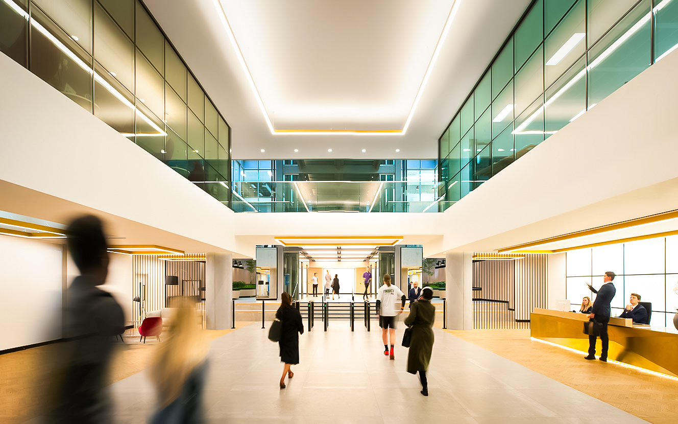 Riverscape is an exciting and dynamic workspace proudly occupying a prominent position on the north bank of the River Thames. This establishment recognises that today’s office workers want a space that is welcoming, spacious and modern. Responding to the client needs, Barr Gazetas refurbished the reception, atrium and external entrance of the large 1980’s office building to improve peoples first impression.
