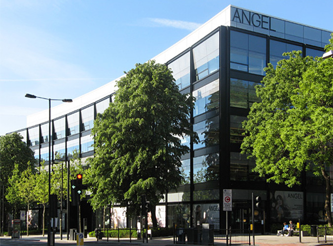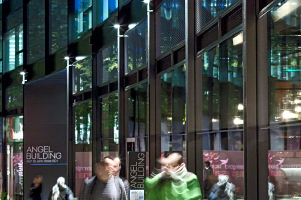 The angel building with an office area of 76,200 m² located in the prestigious district of Islington. With beautifully illuminated paths to the building and elegant cafeteria called The Angel Kitchen where everything is made with fresh produce.
