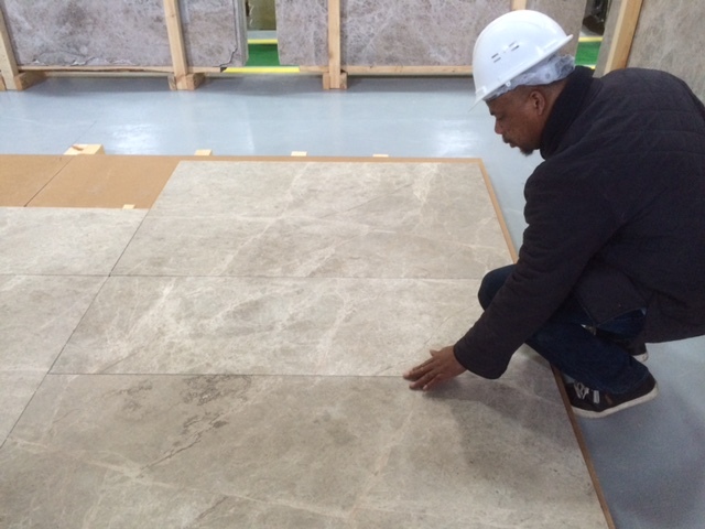 Strata Tiles worked closely with the architect to source a natural stone product that could be cut to numerous large format sizes including 100x150cm and 50x150cm. Strata Tiles took the architect and the main contractor to the factory where the natural stone could be specially selected as per the visual specifications and slip resistance requirements desired.