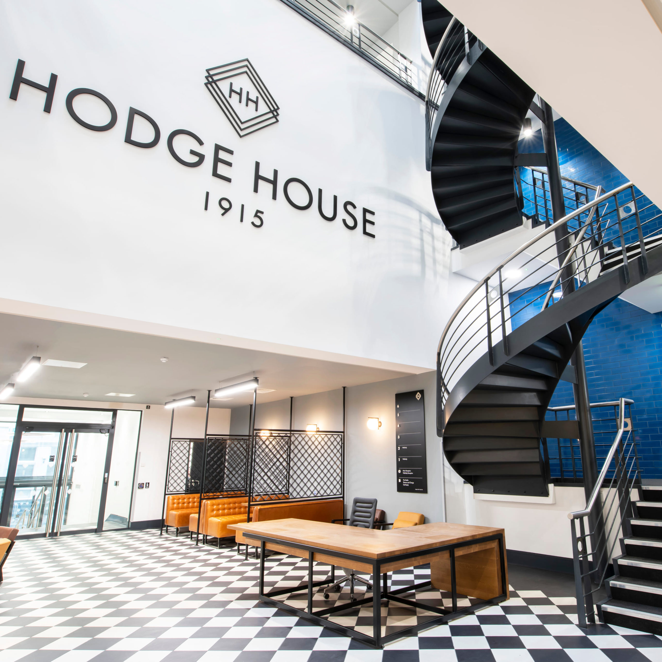 Hodge House is an iconic Grade II listed, eight-storey building in Cardiff that has been restored and transformed into a modern workspace. Originally constructed in 1915, the building has been stripped back to reveal original features such as cast-iron decorative columns and exposed brick and plasterwork. Authentic period features, including the vaulted ballroom and ornate heritage stair balustrading, have been meticulously restored to reveal the character of the building.