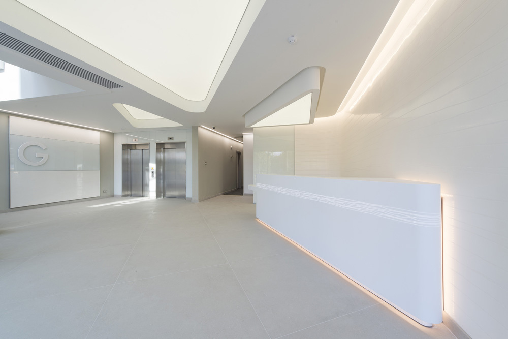 Working together with Scott Osborn Contractors, the natural tiles (PABA06) were installed in the reception area, with a further batch of 60x60cm tiles from the same collection installed in the WC.