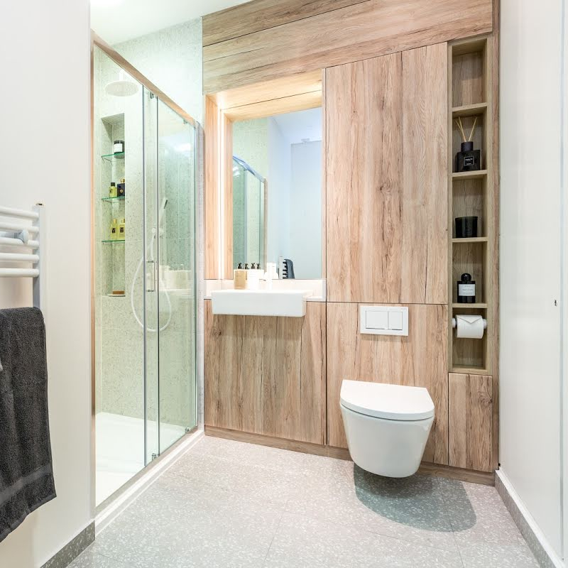 The team at Mount Anvil had an initial concept in mind for the tiles as they wanted to introduce a touch of Italian influence with a terrazzo effect option. We worked closely with one of our manufacturers, with the Mount Anvil team visiting the factory to develop a bespoke design that met their expectations in terms of design but also had high slip resistance so could be used in the bathrooms and dining/living areas. Two colourways were produced, a more subtle white terrazzo for most of the specification and a grey option to give the en-suites a different look. The result is a terrazzo tile that delivers on both its style and technical characteristics.