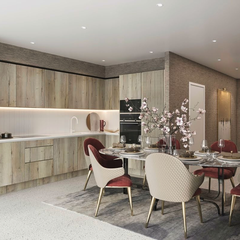 The Silk District is a residential development by Mount Anvil in Whitechapel, London E1. The scheme comprises three buildings – the Jacquard, the Georgette and the Bouchon – and offers Studio, 1, 2 and 3-bedroom apartments, each designed to be light-filled and calm. The development is a flow of tall towers, lower-lying buildings and landscaped gardens to create a sense of community.