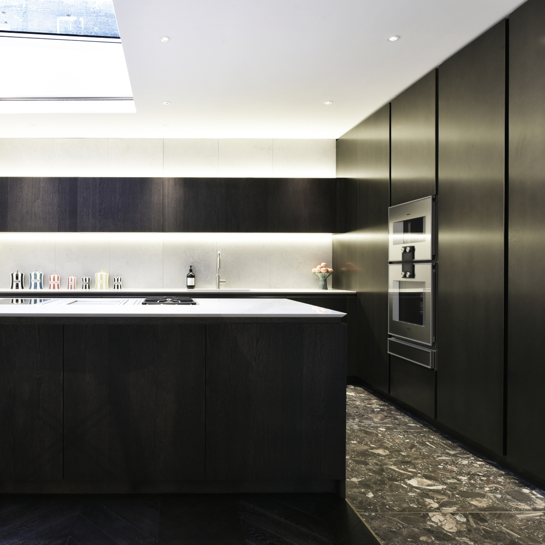 The team at our Chelsea Design Studio helped a family with their townhouse refurb, the brief being a classic style with something a little bit different. The magnificent kitchen features our Leon d’Oro collection, tiles that were inspired by the original flooring in the Italian restaurant that shares the same name. Our luxury Foundry trims have been used to create a decorative edge between the Leon d’Oro and adjoining wooden floor.
