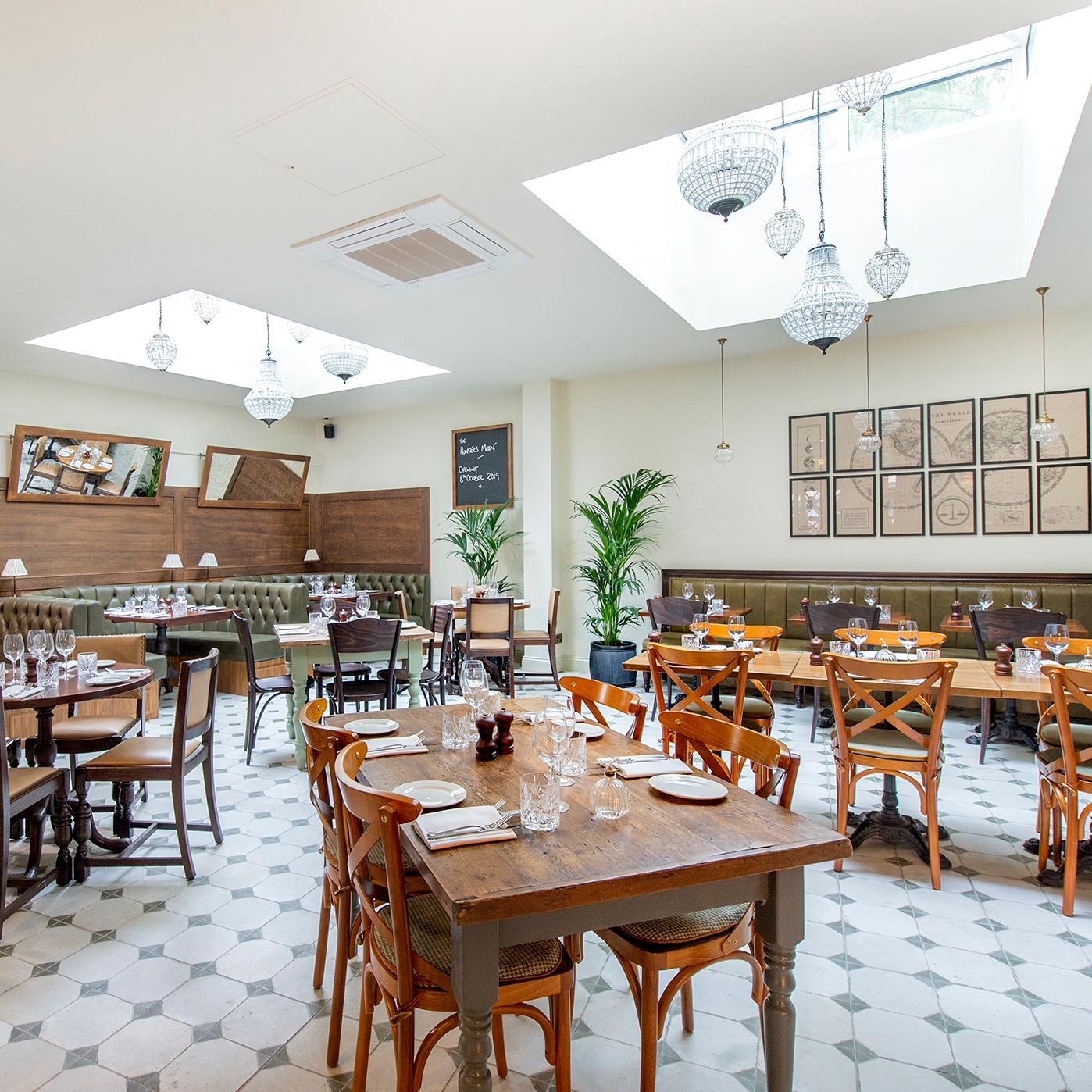 The tiles used in this project were specifically sourced to complement the classical and cosy theme of this traditional pub/dining room, with features of a dragonfly and small format tiles adding to the homely farmhouse feel.